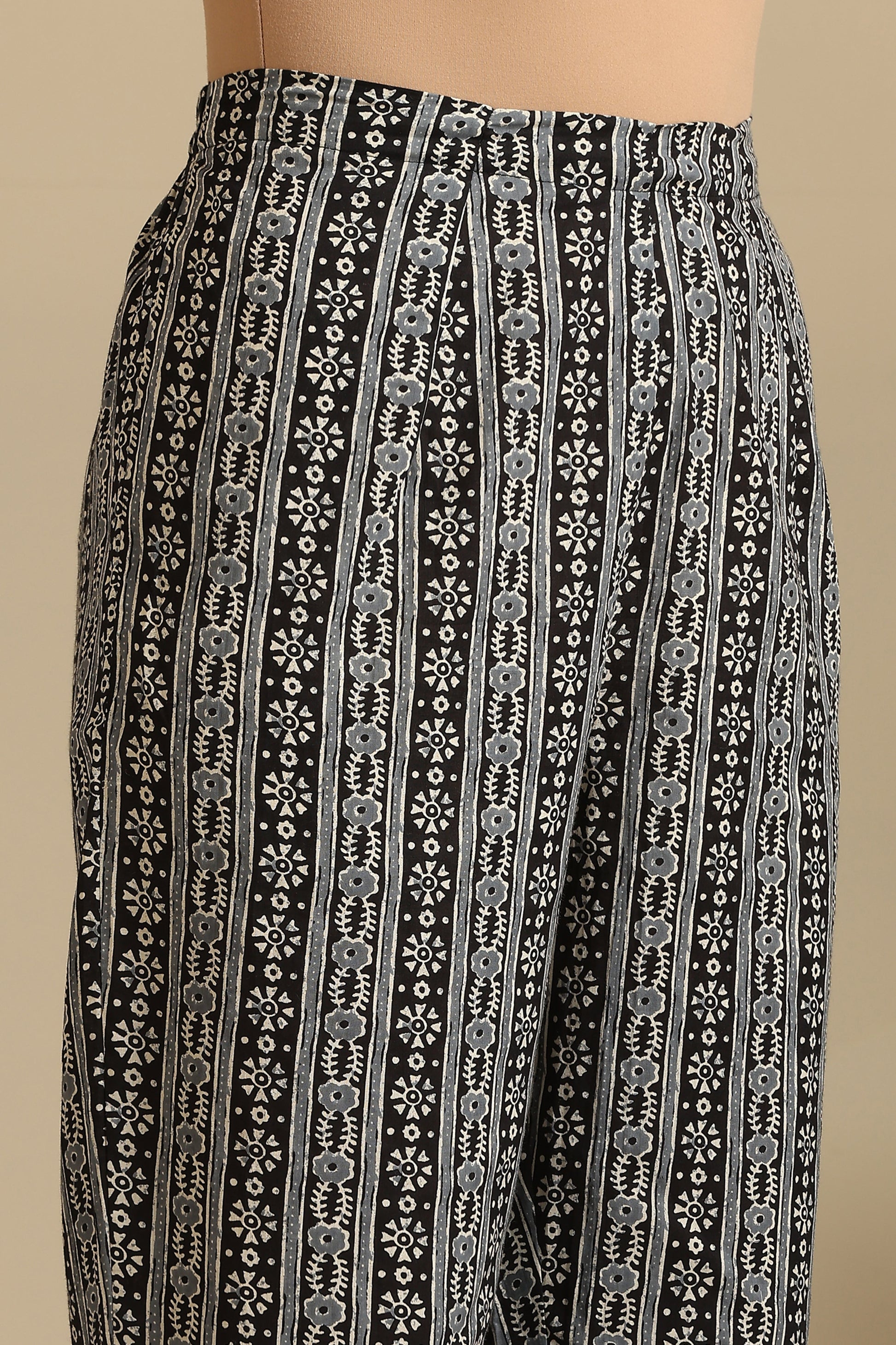 Handcrafted in the softest cotton fabric, our Black Onyx Kurta Set comes in a classic black color with a charming floral pattern. The kurta has a straight silhouette for a formal fit and additionally, arty floral wooden buttons on the neck add charm to the outfit. Pockets add to the comfort. The look is completed with straight pants.