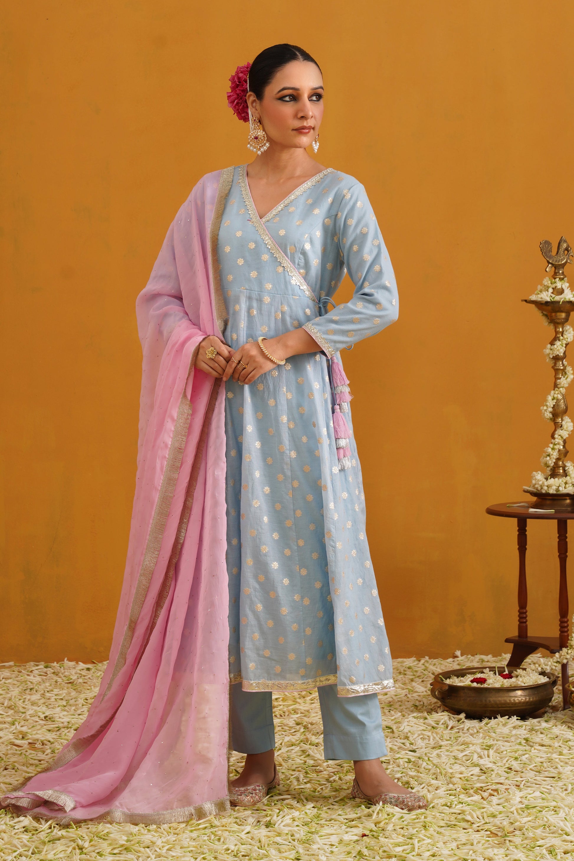 Murraya Blue Bethany Banarasi Anarkali Set of 3