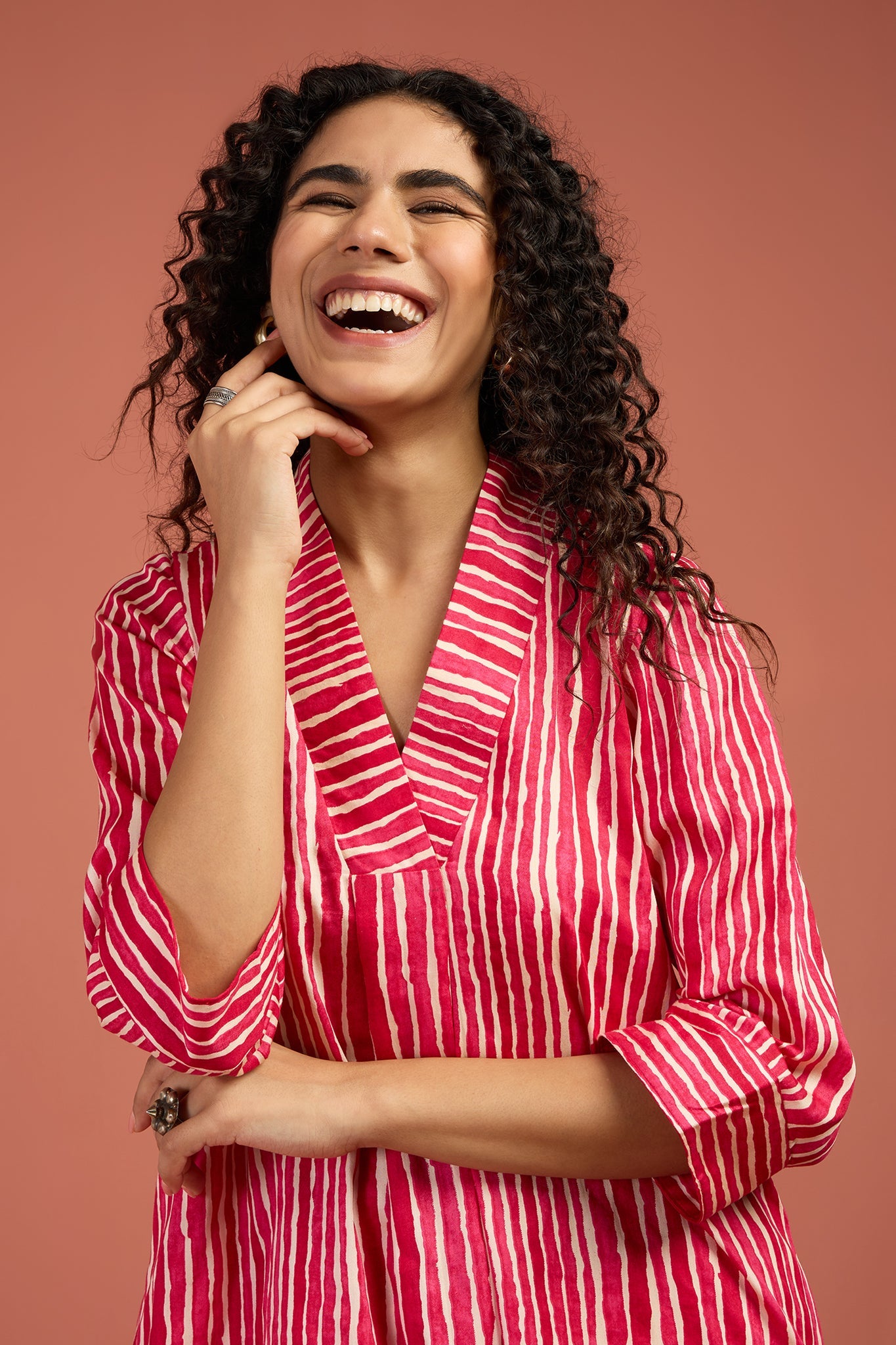 Maati Craft Co-ord Set Petal Pink & Snow Drift V-neck Kurta