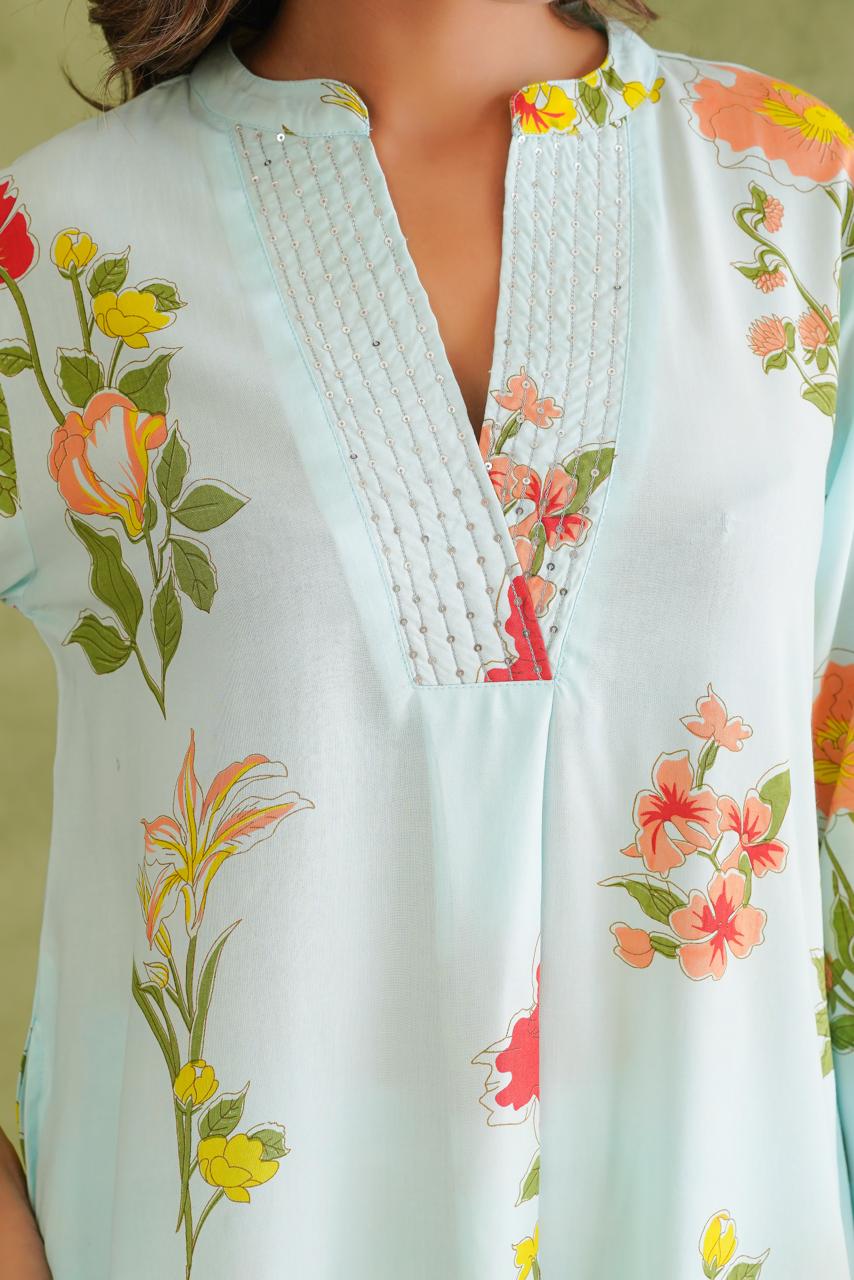 CO-ORD Set - Fabric - Modal Silk - Zari and Sequins Work - Double Pockets in Kurta