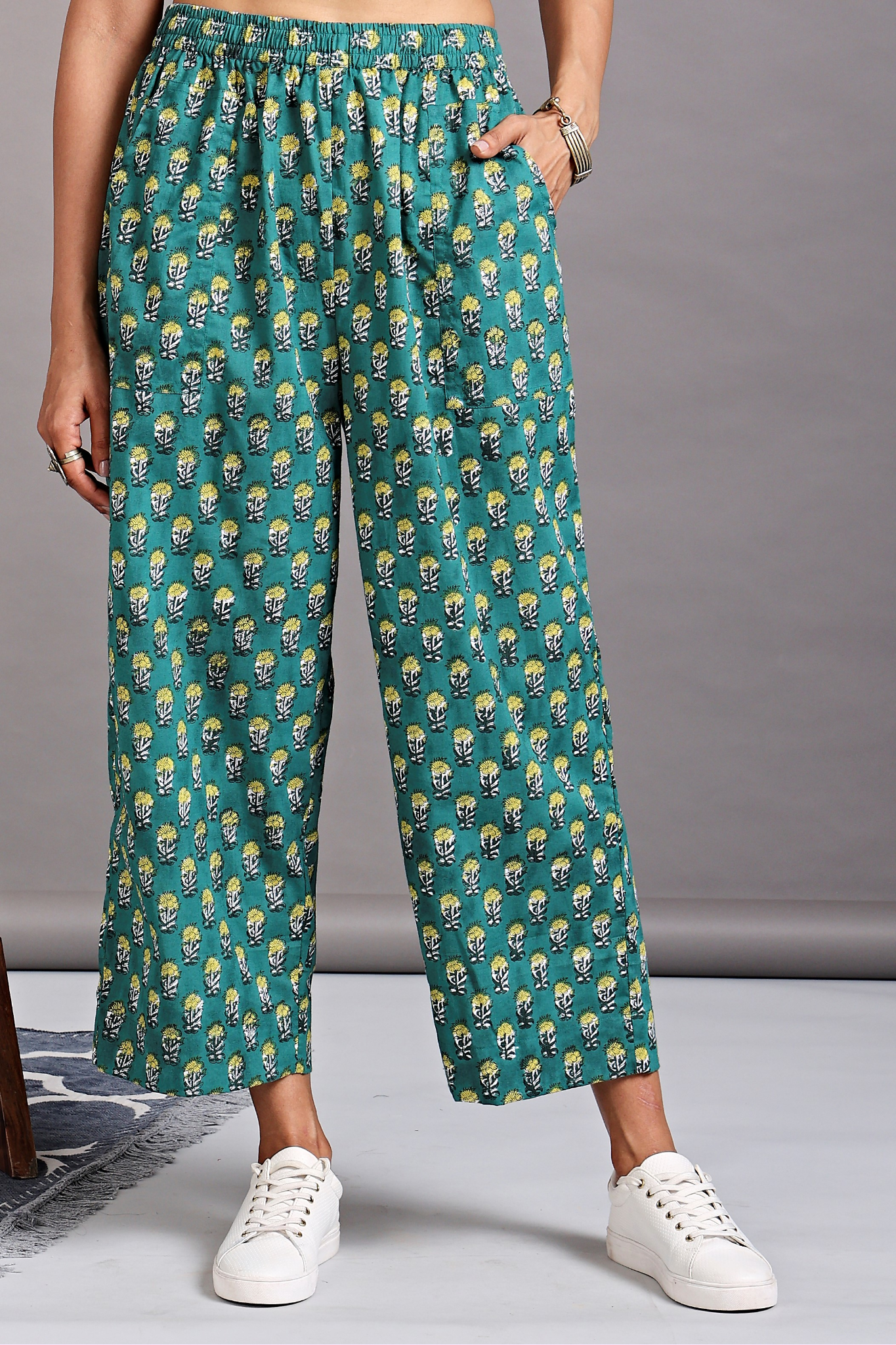 elasticated tie-up plain cotton green yellow pants with pockets, perfect coordinate for all clothing!