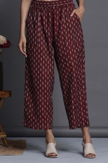 Maati Craft comfort fit cotton printed pants - maroon ikat