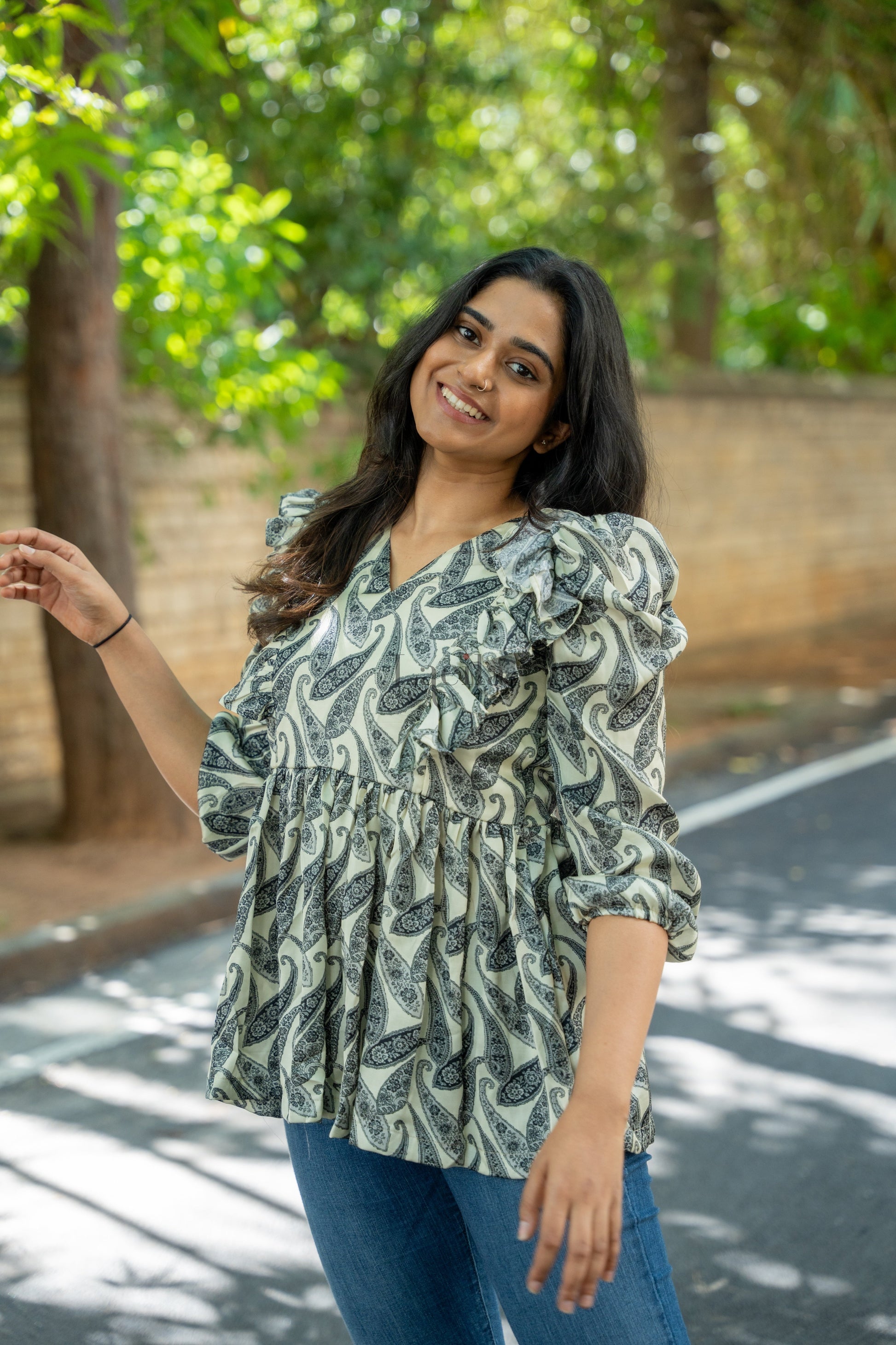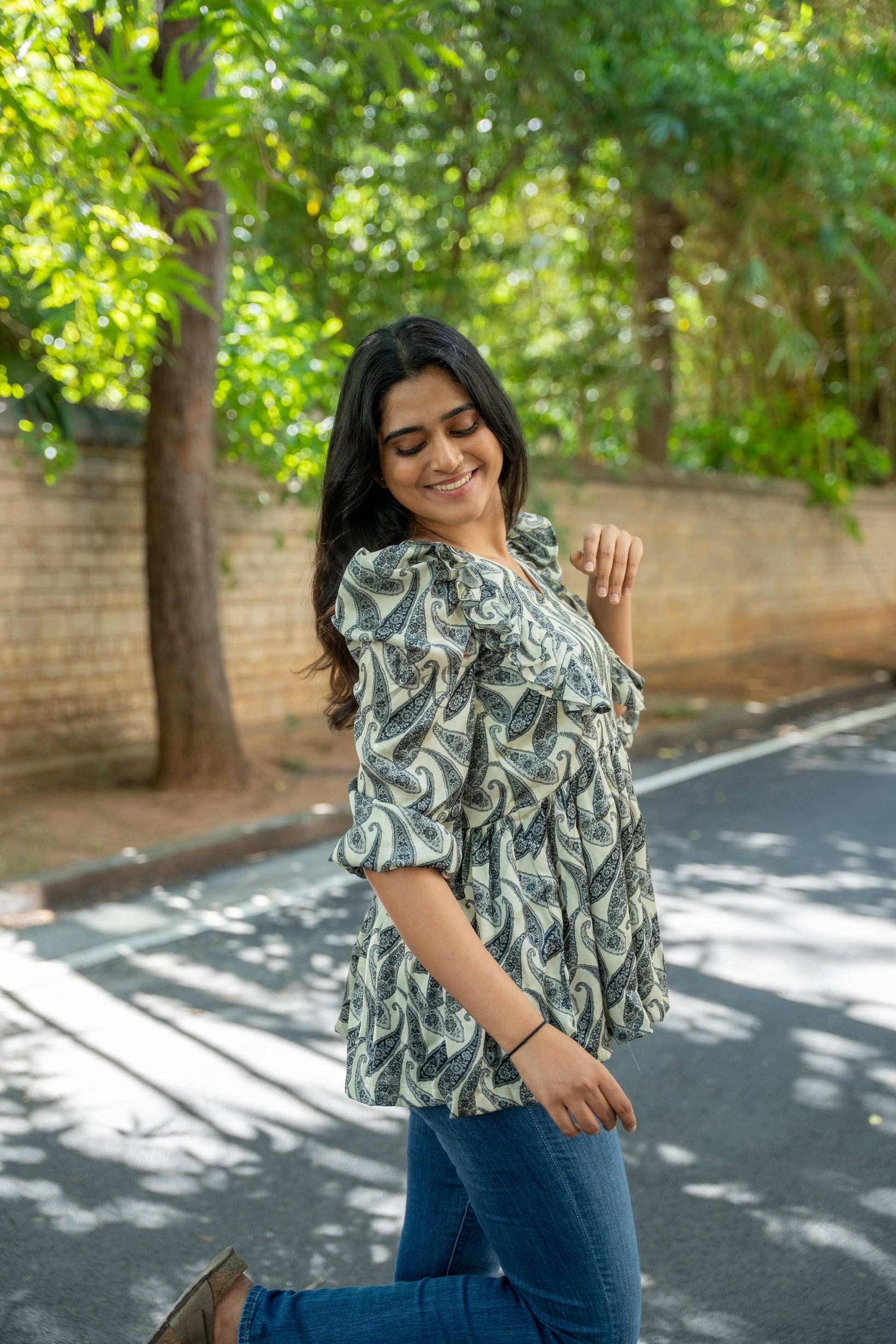 Elevate your style with our Crepe Satin Ruffle Peplum Top. This elegant top features a soft and luxurious crepe satin fabric with delicate ruffle details and a flattering peplum silhouette. Perfect for any occasion, it effortlessly combines sophistication and femininity. Embrace the timeless charm of this must-have piece.