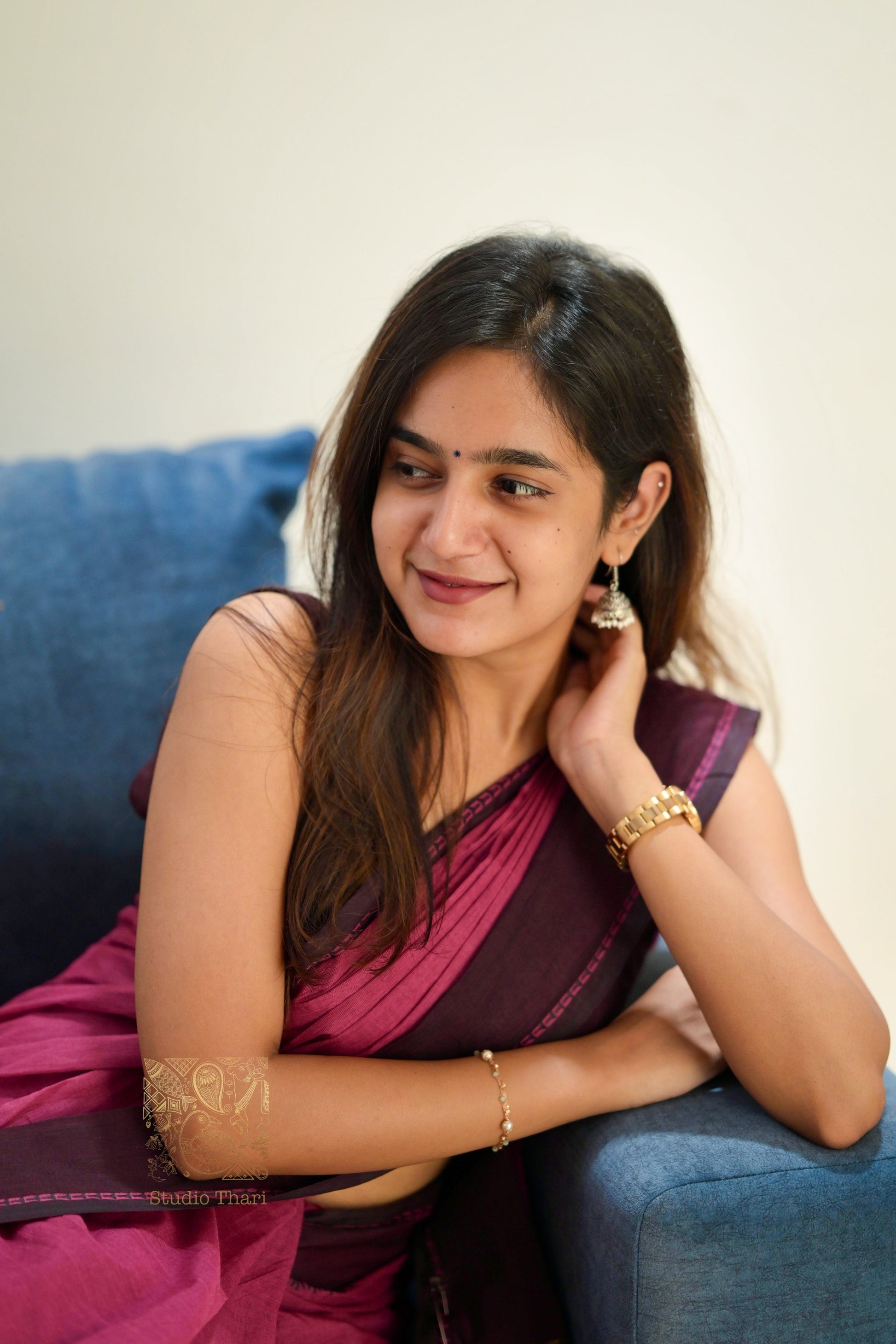 Dark Pink & Brown Parvati� Bold and Beautiful Chettinad Cotton Saree