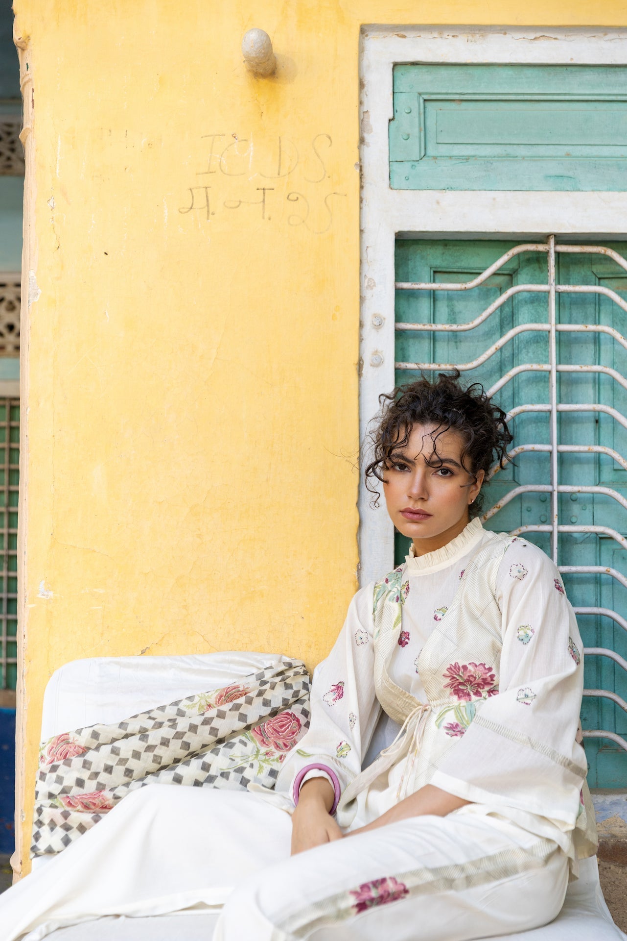 The Elma top in Chanderi brings a soft round neck and airy bell sleeves for graceful volume. Clean Ivory and subtle print make it a natural choice for festive layers. Style with the matching pants or denim. Sleeves