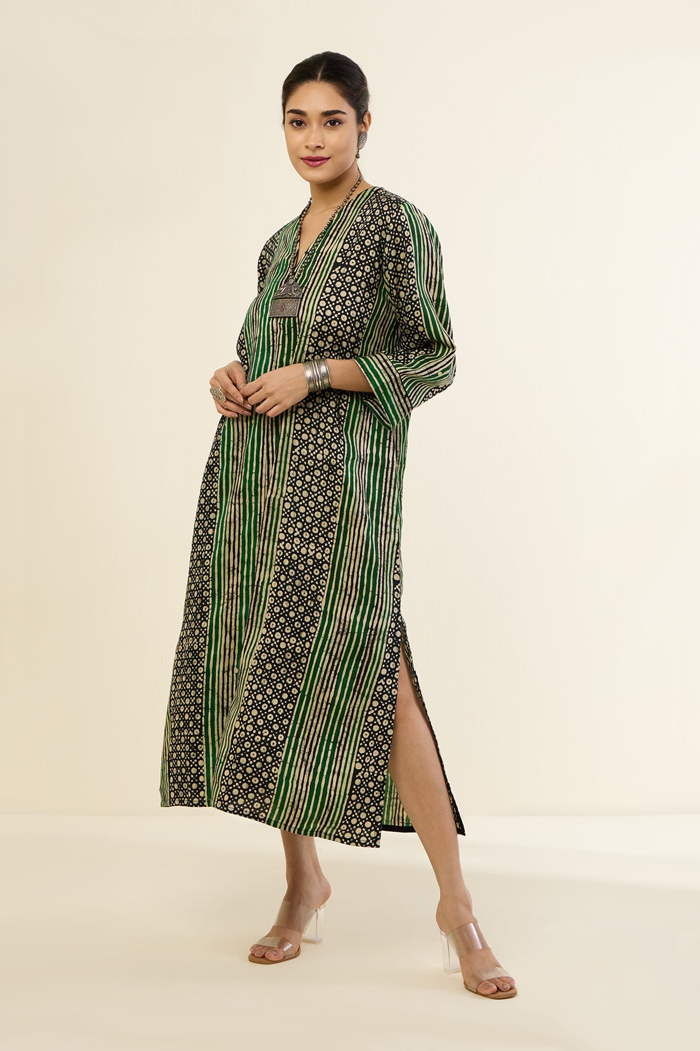 Maati Emerald Noir Geometric Pattern Front Zipper A-Line Kurta