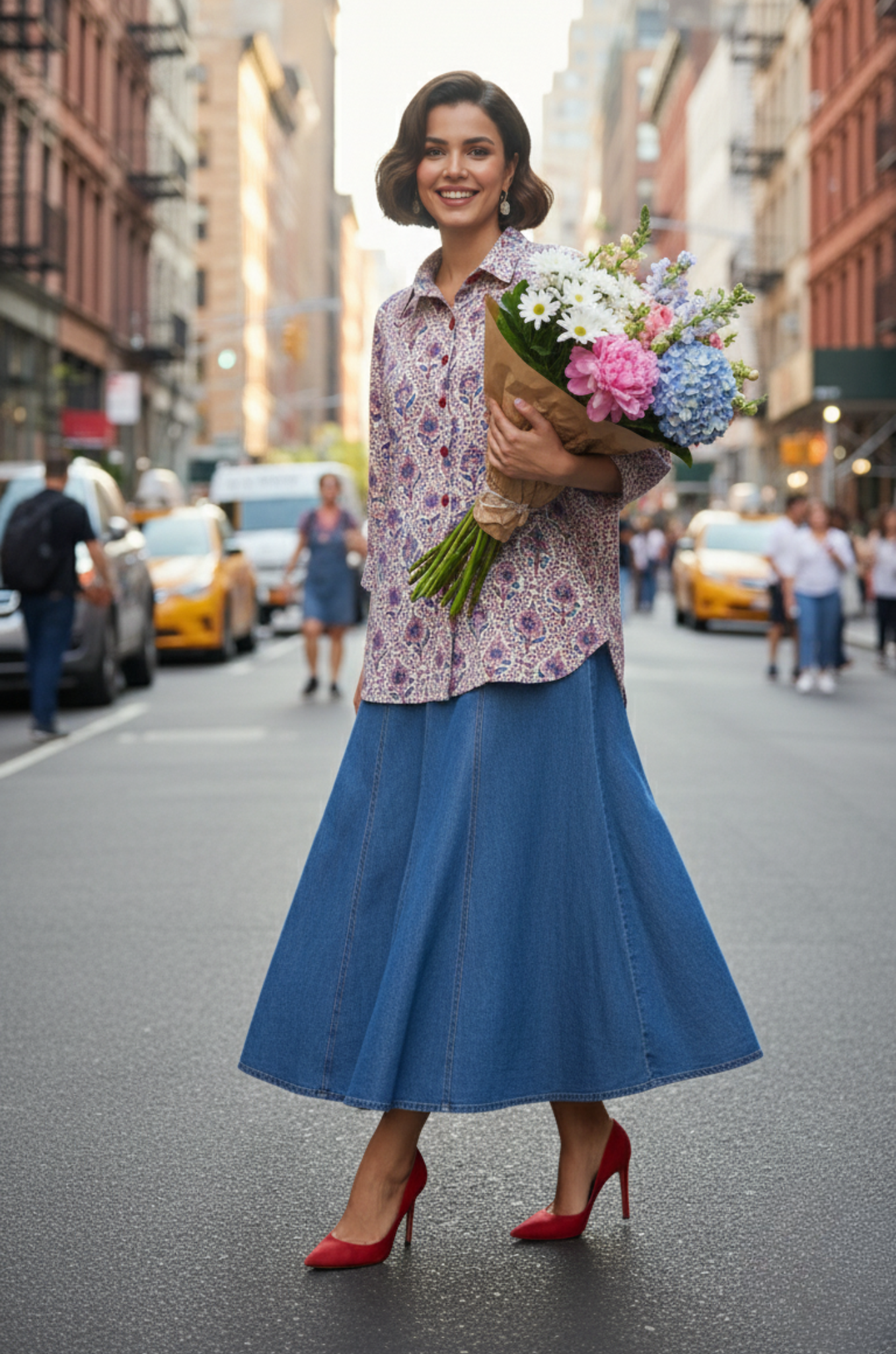 Maati Floral Symphony Handblock Printed Everyday Cotton Shirt