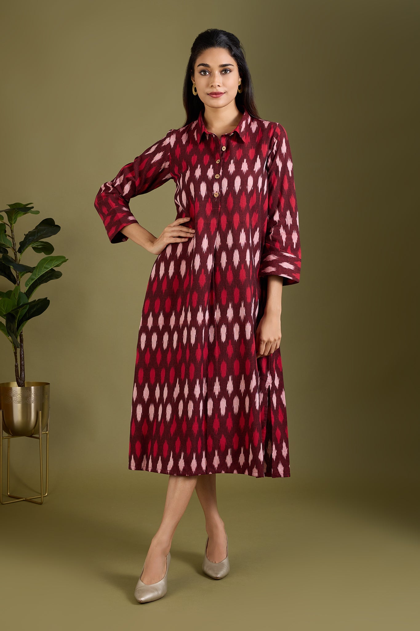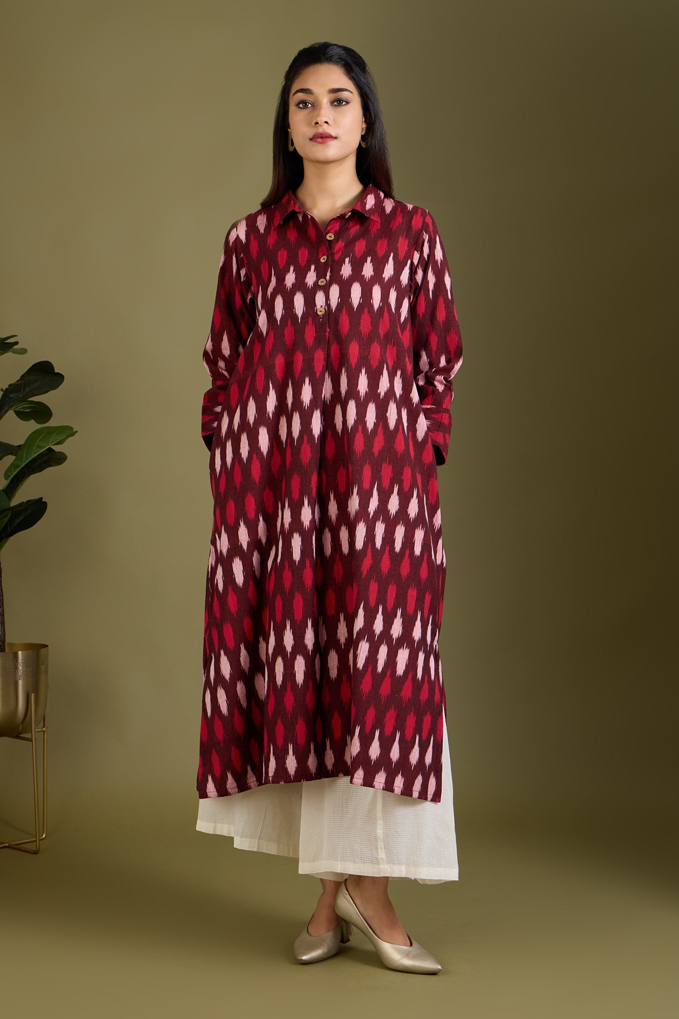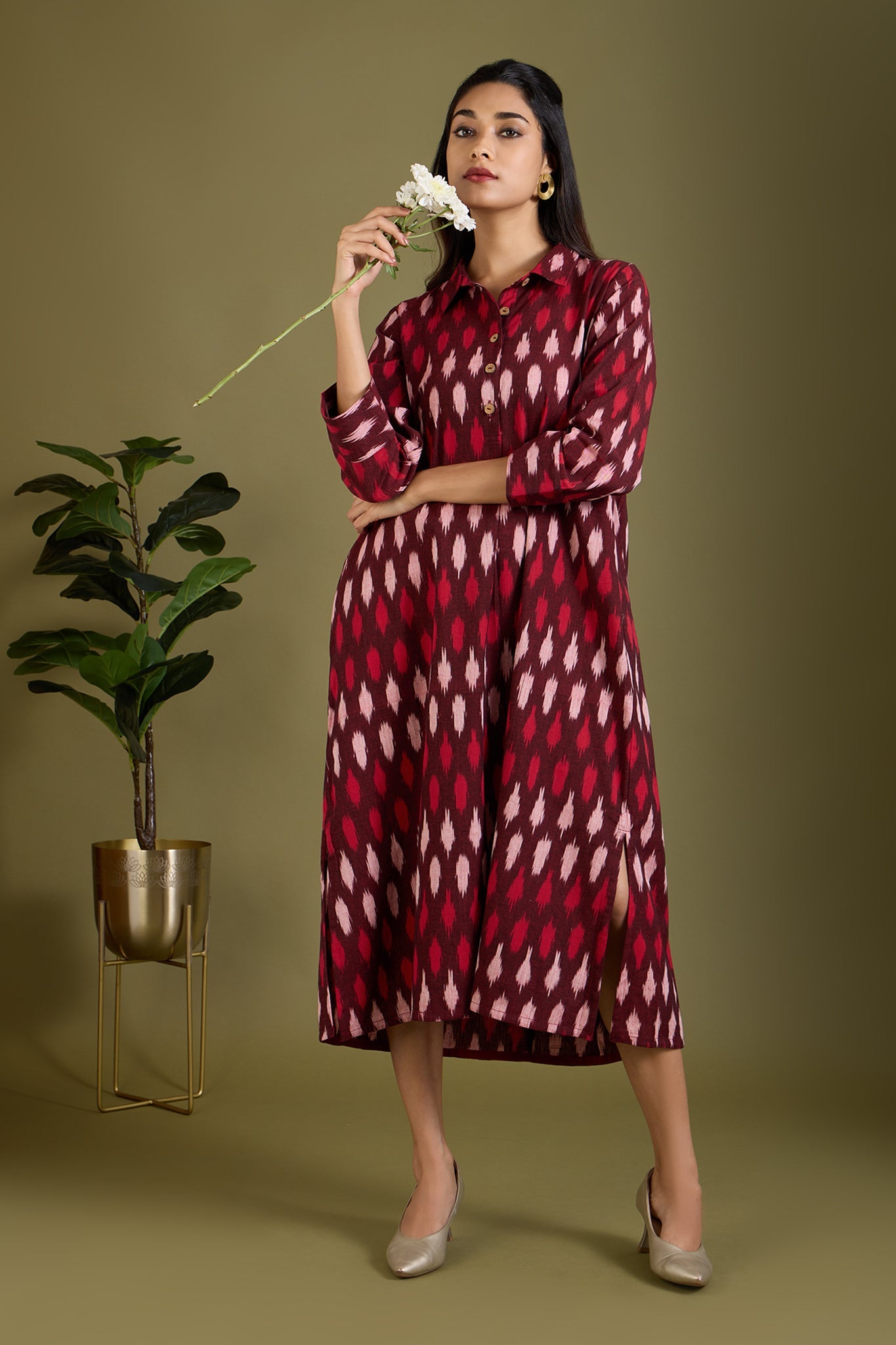 Maati Craft Garnet Mist Long Shirt Dress With Slit