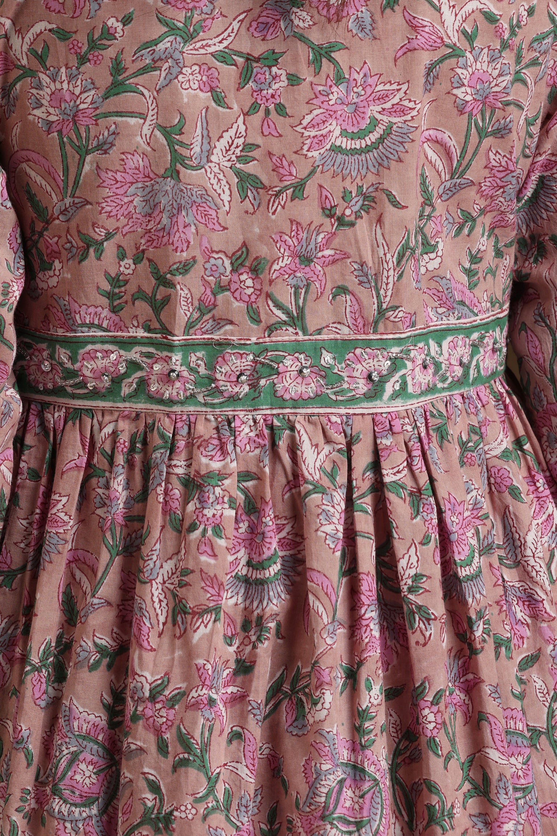 The Lilac Bloom Gathered Kurta Set showcases a mesmerizing hand-block printed floral pattern and the kurta comes with a fitted bodice for a flattering feminine fit. Delicate pearl and bead embroidery across the neckline, waist, and cuffs, makes it an eye-catching outfit! Lace detailing along the hem and dupatta further accentuates the look and the contrasting wide palazzo motif pants round up the look perfectly.