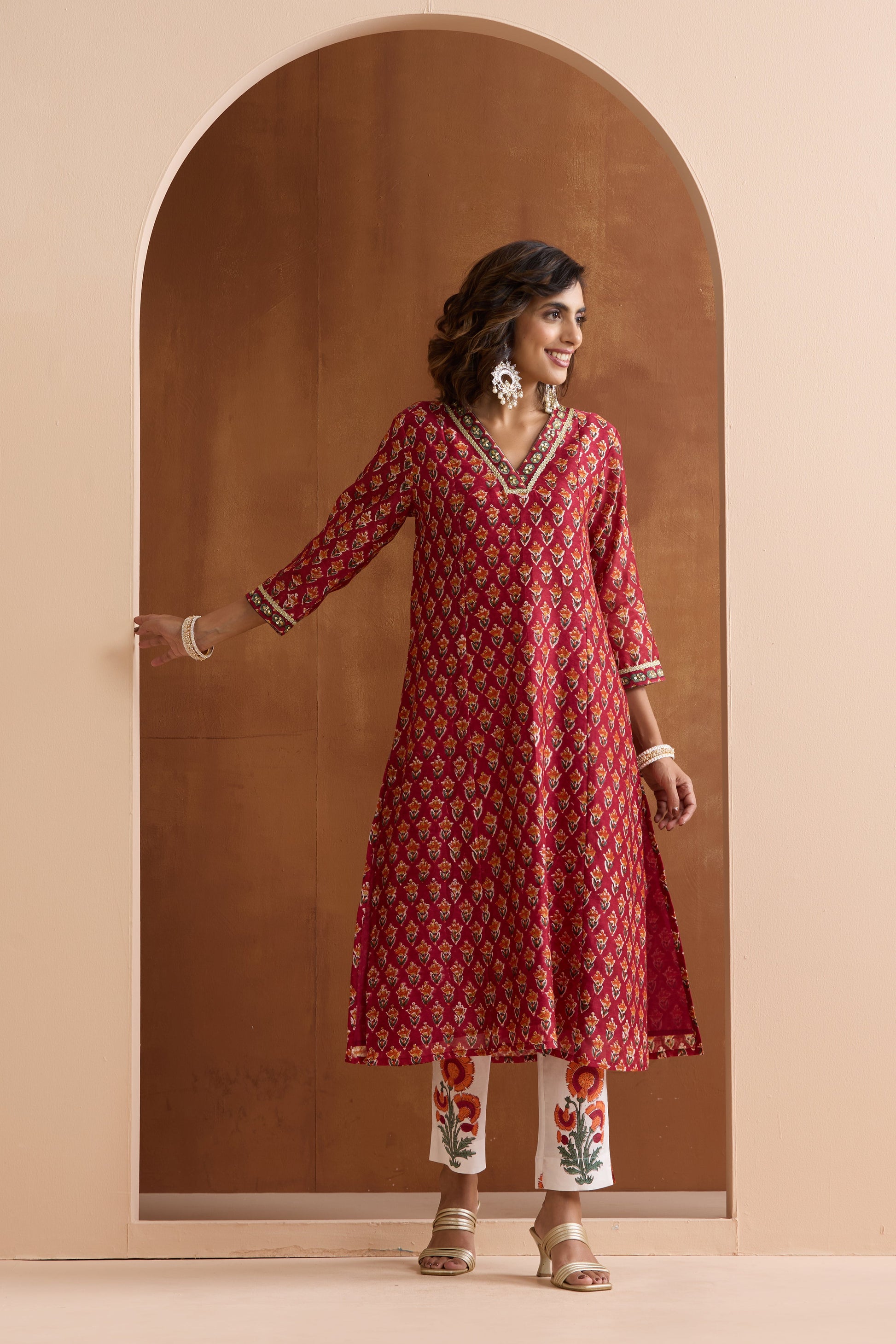Murraya Maroon Ivy Embroidered Chanderi Kurta Set of 3