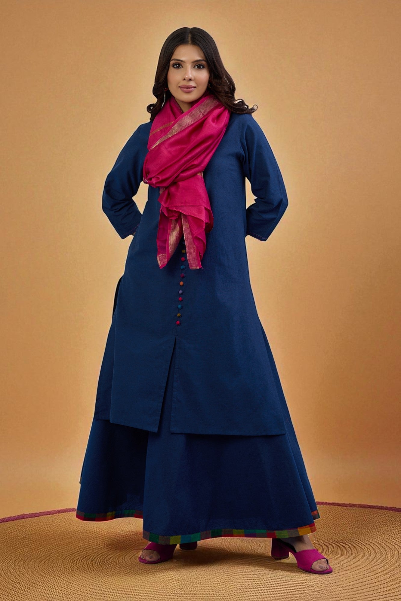 Maati Craft Gulabi Set of 2: Co-ord Set Midnight Blue Cotton Button Down Kurta with Flared Skirt