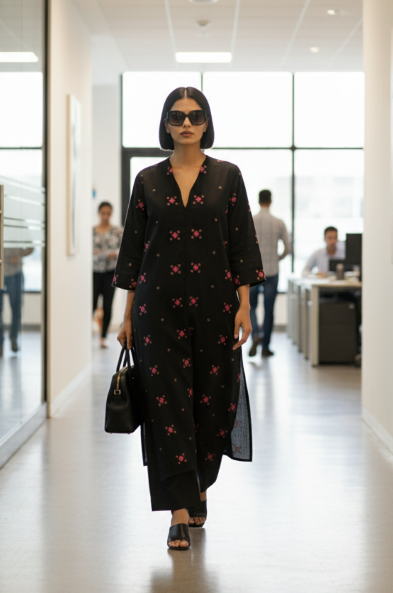 Maati Midnight Spark Cotton Front Zipper A-Line Kurta