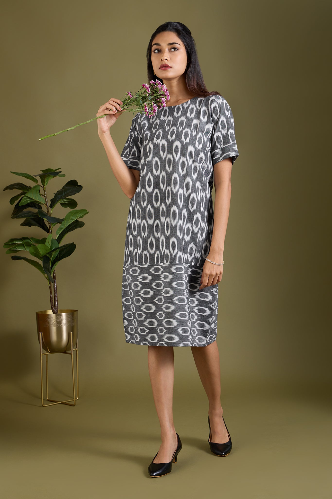 Maati Craft Misty Marble Shift Dress with Sleeves