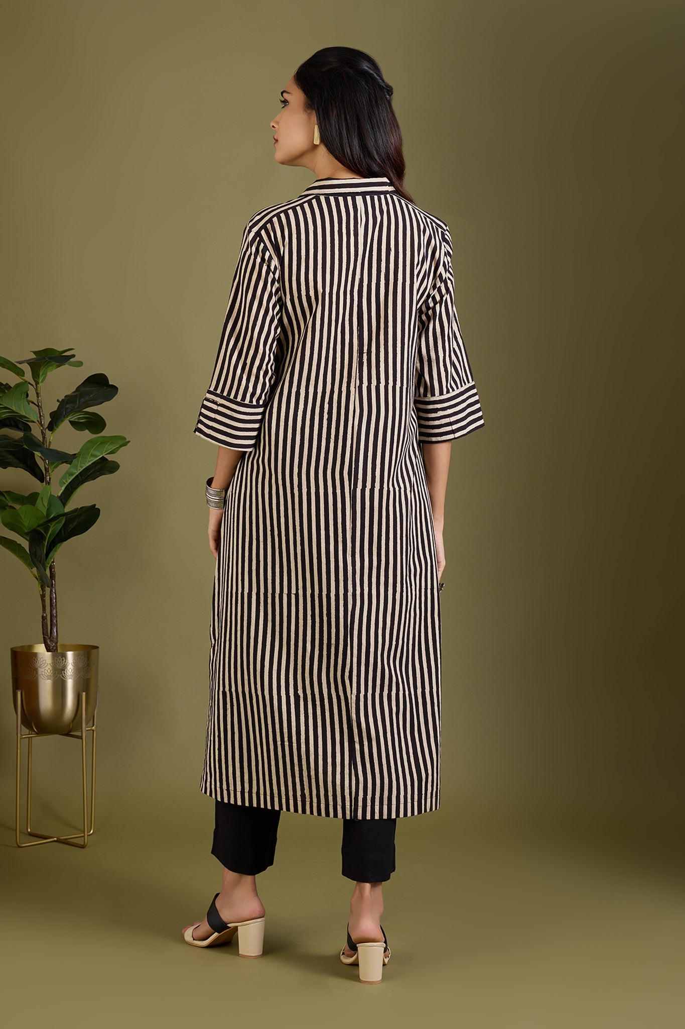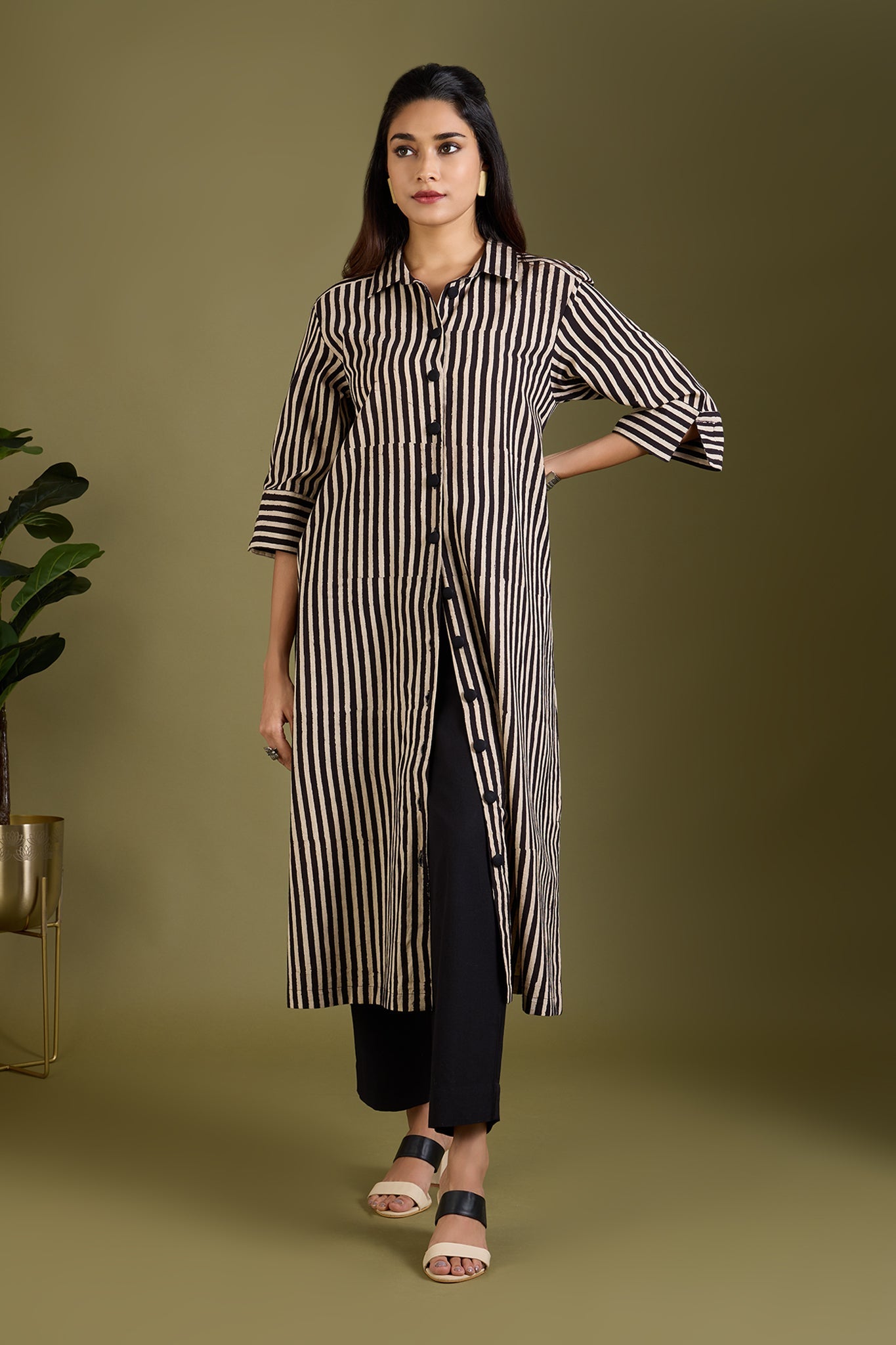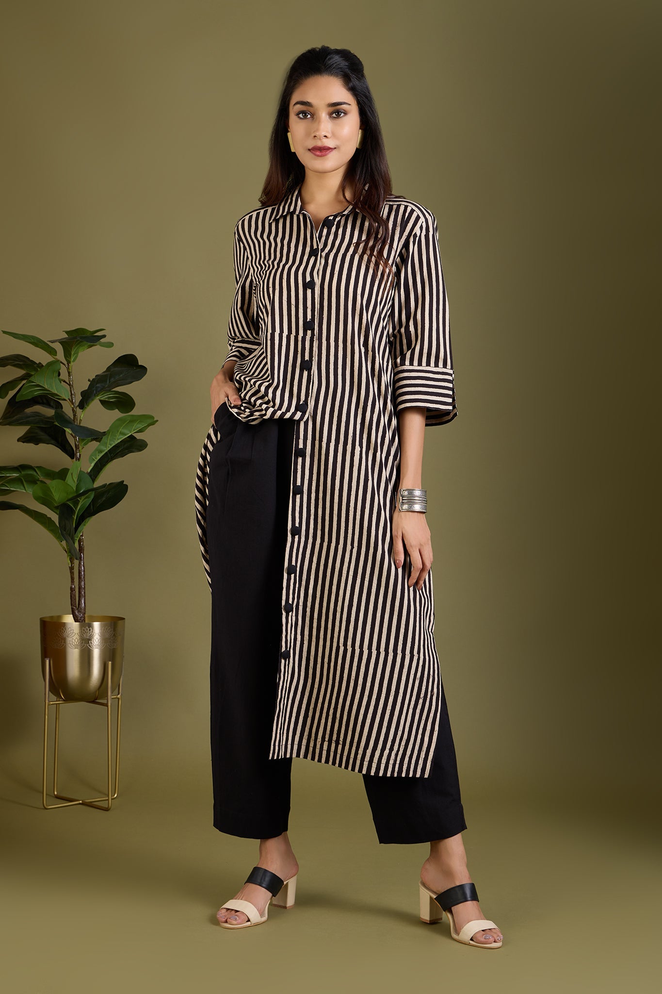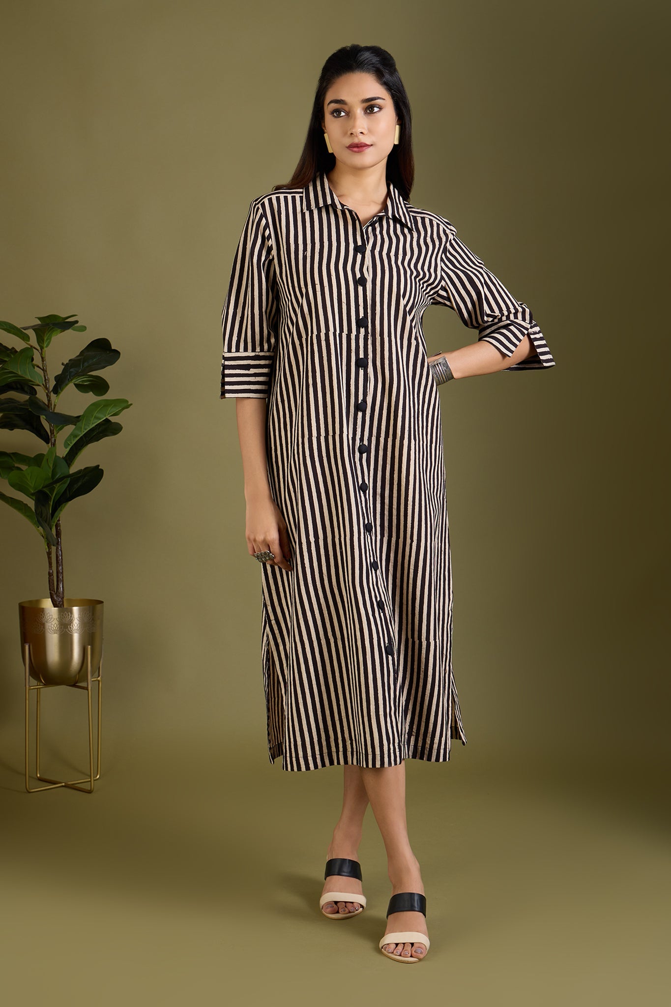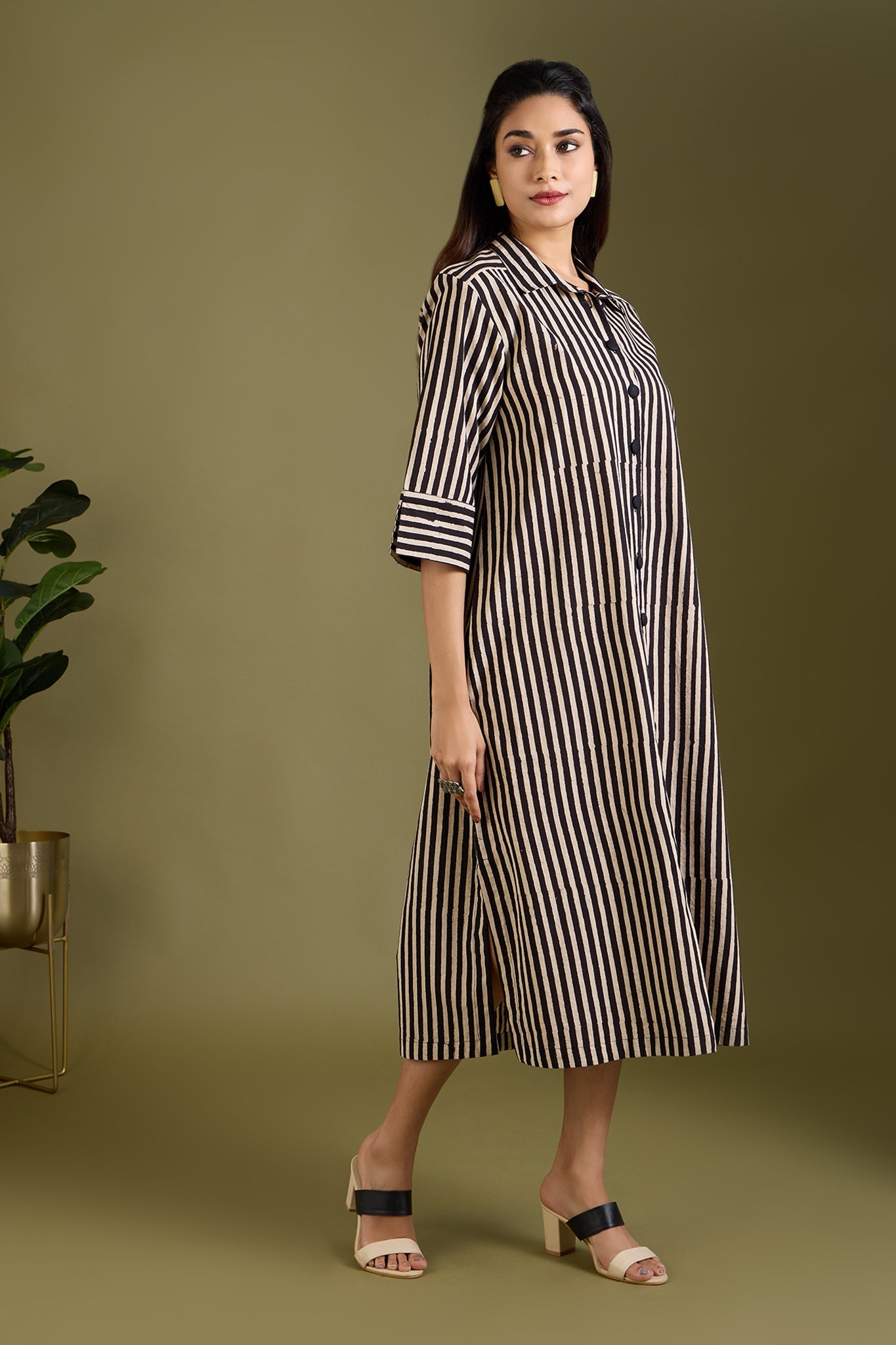 Maati Craft Earthy Noir Streak Long Shirt Dress
