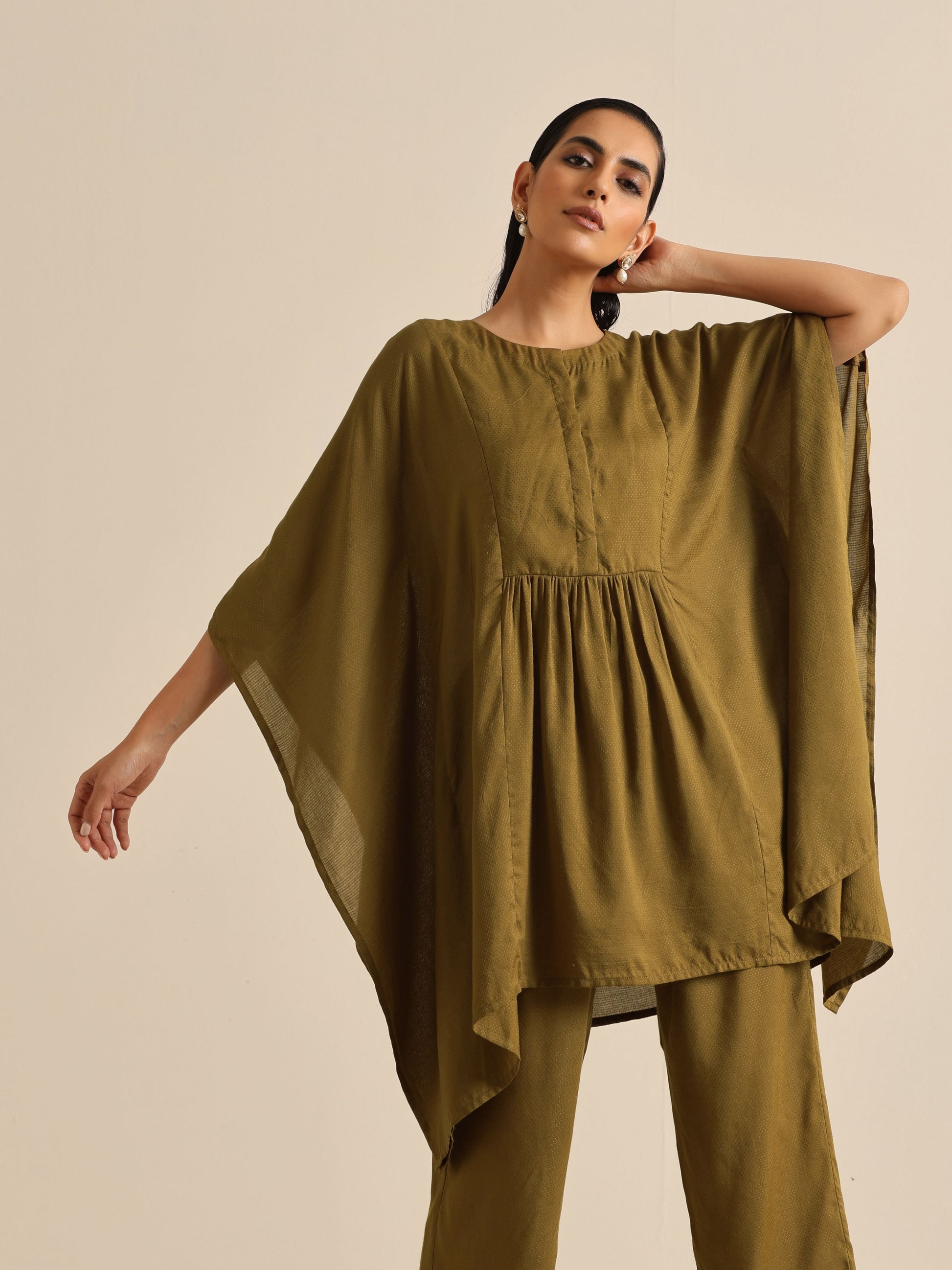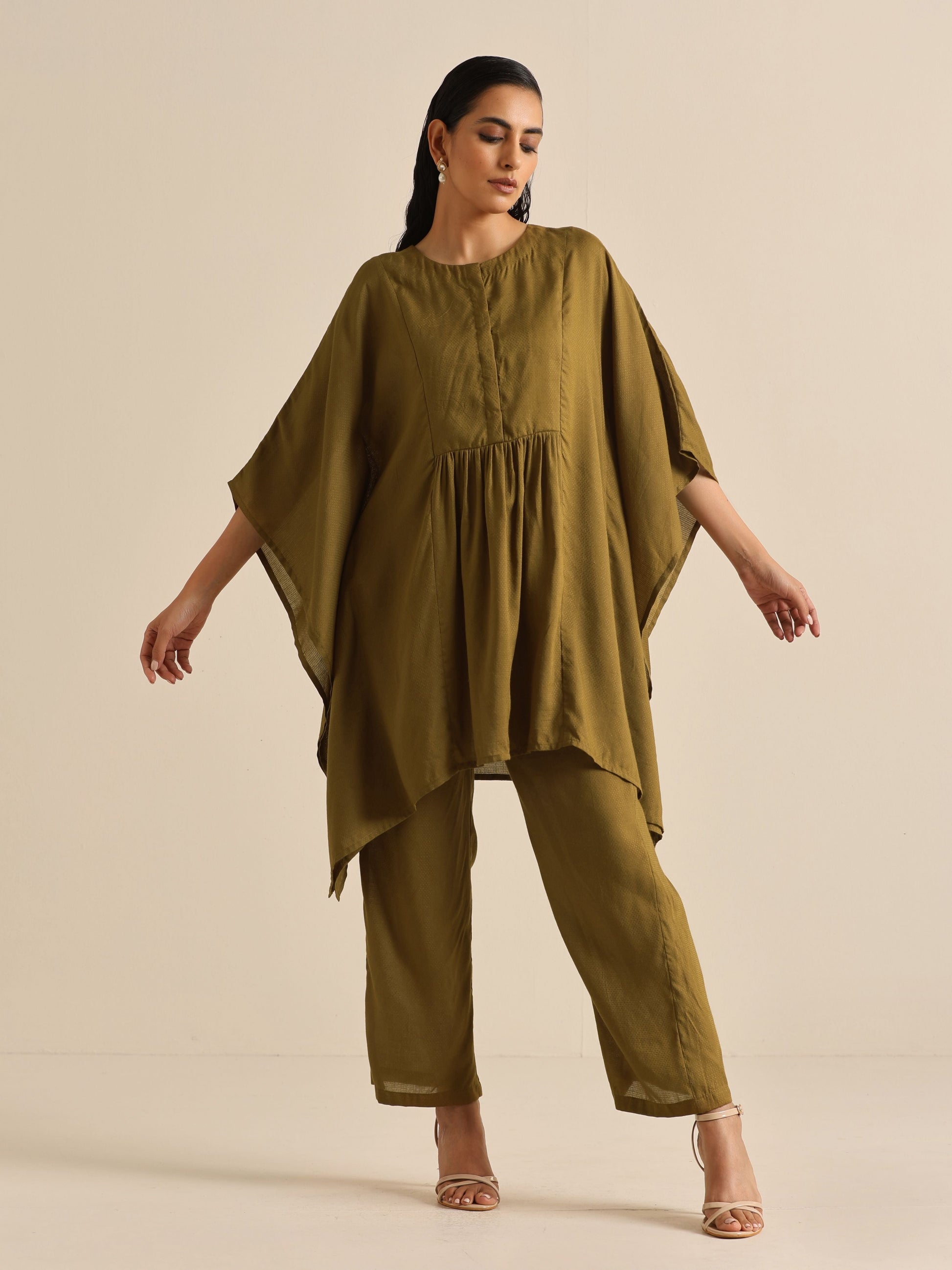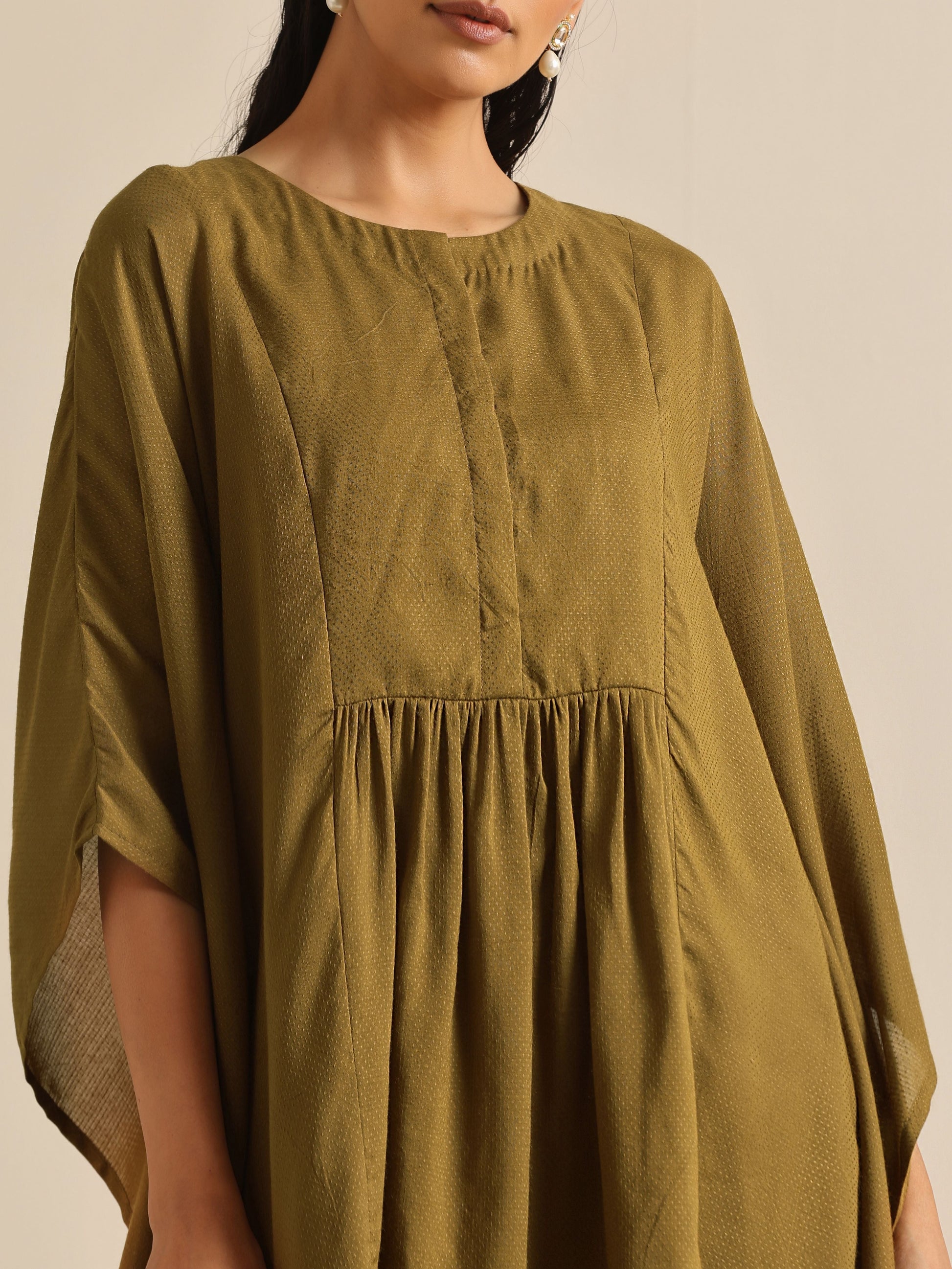 Olive Green Texture Doddy Kaftan Gathered Co-Ord Set