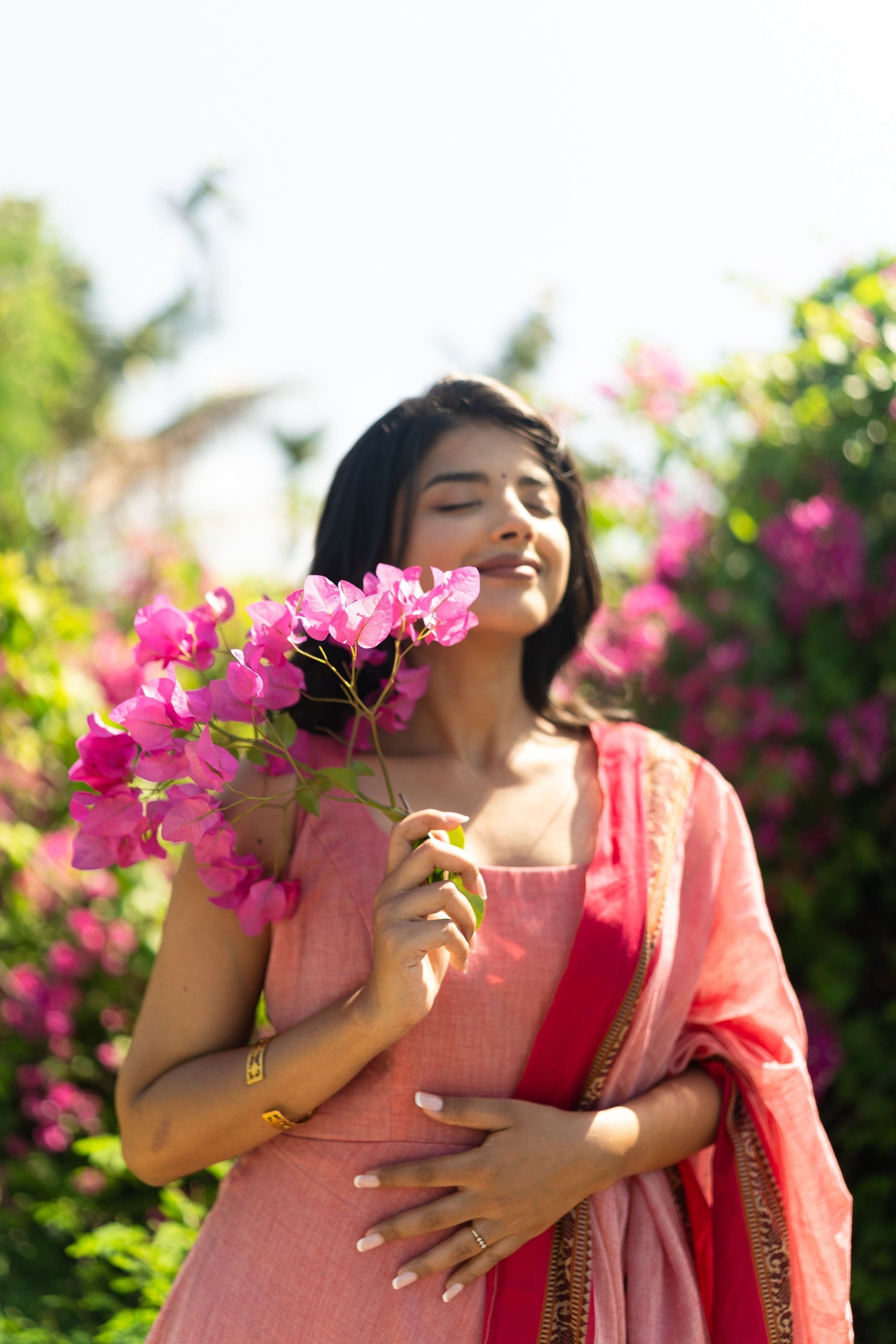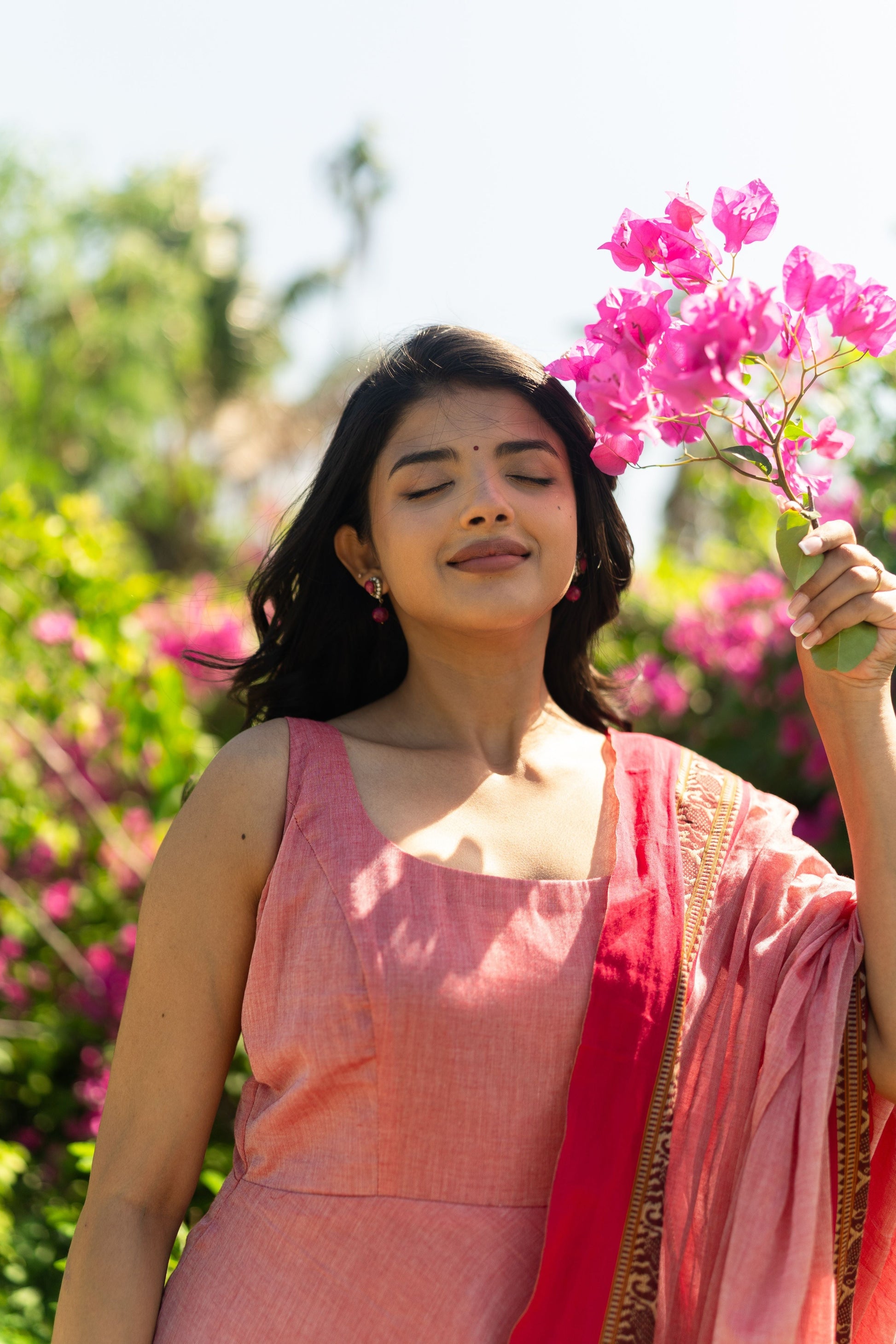 Studio Peach Pink Malar Narayanpet Anarkali Top & Dupatta