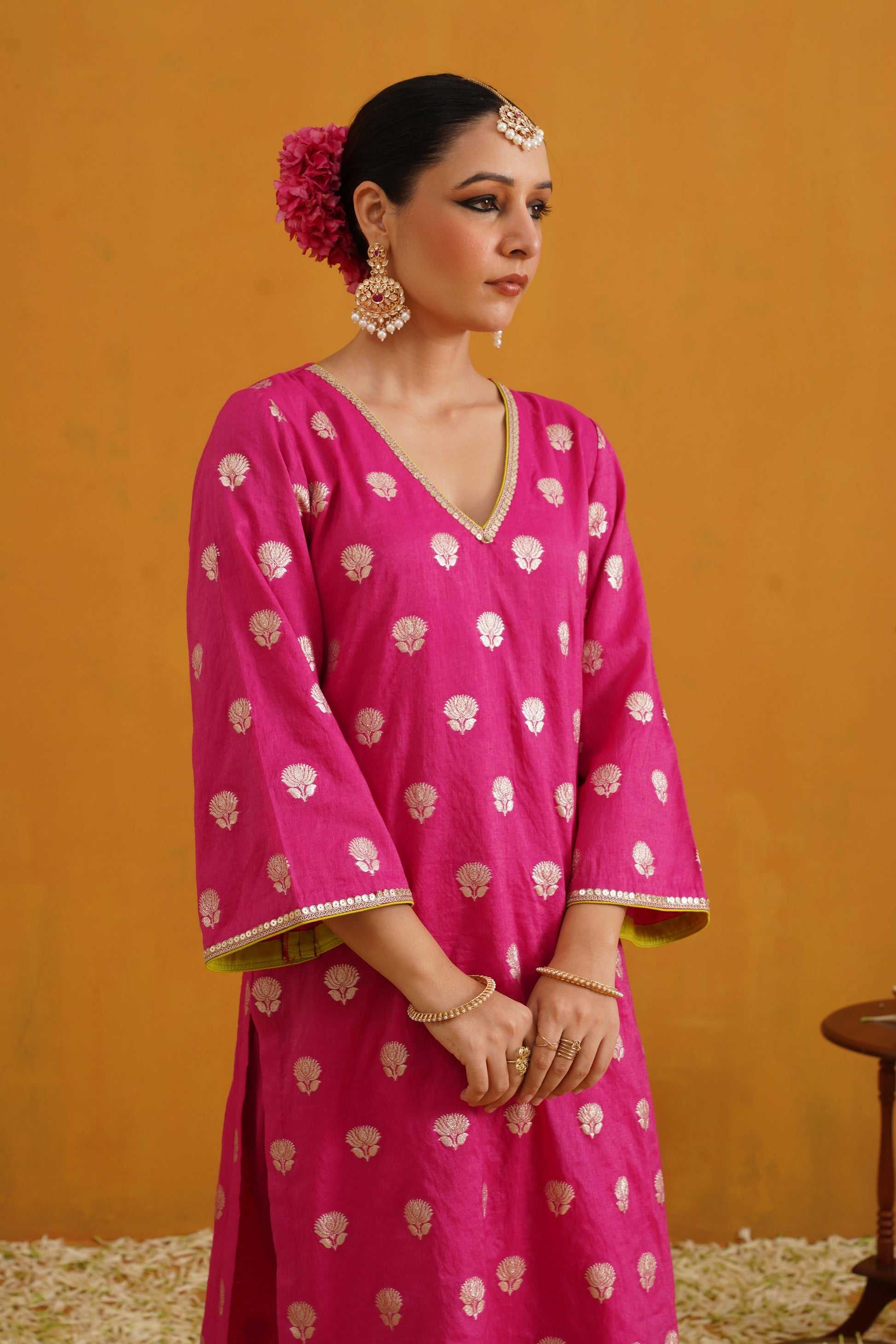 Murraya Pink Lotus Banarasi Kurta Set of 3 with Farsi pants