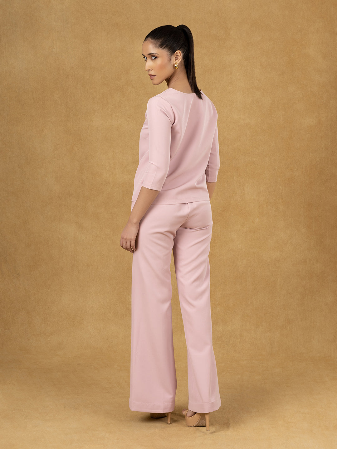 PowerSutra Pink Solid Boxy Top with Pullover Wide Leg Trousers