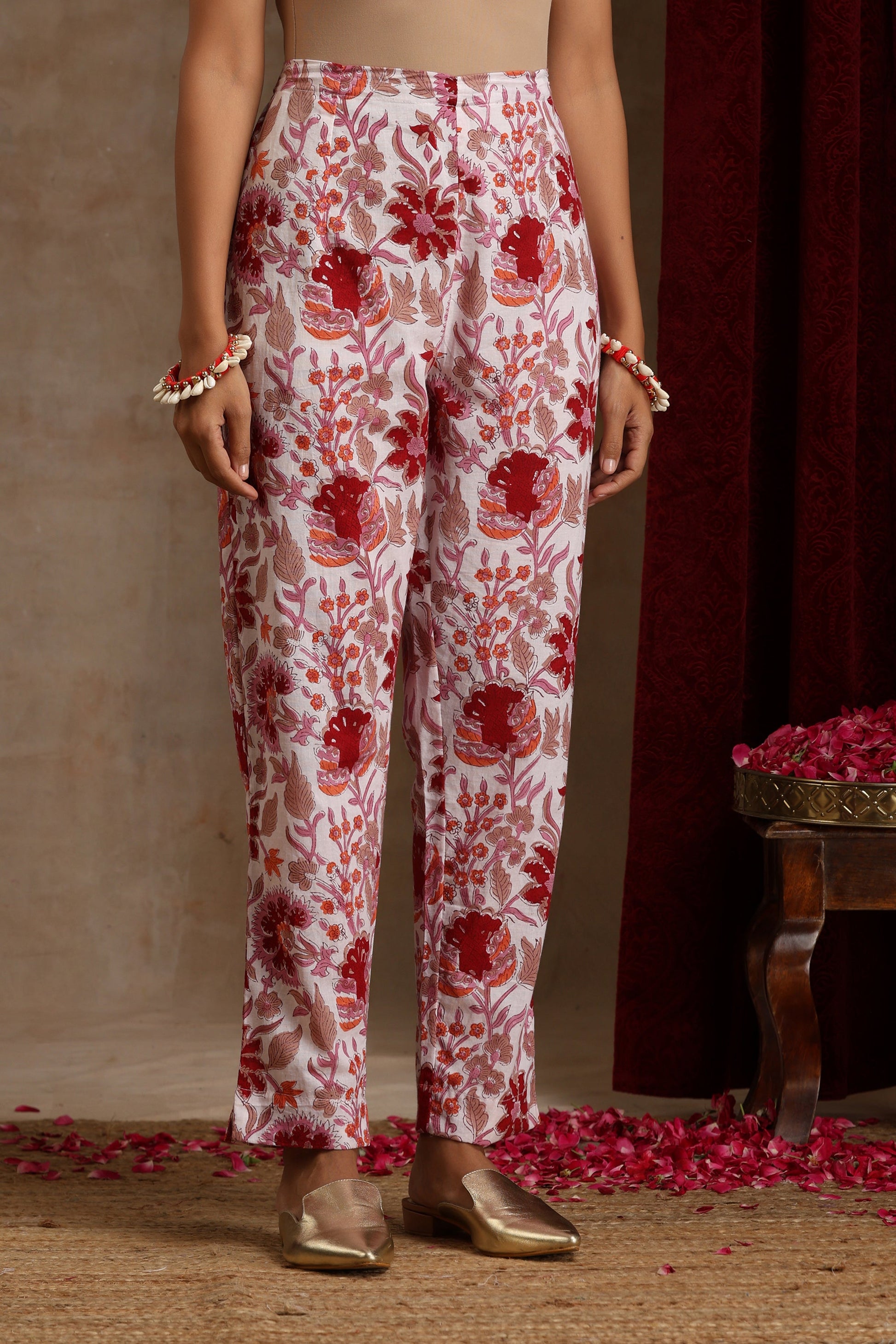 Our Red Scarlet Floral Anarkali Set is graced with a pleasing hand-block printed floral pattern against a striking red colour, making it an ideal outfit for the upcoming festive season. Adorned with charming gold gota detailing on the bodice and scallop lace on the hem and dupatta, this set is a sure shot head turner! The look is completed with matching straight pants.