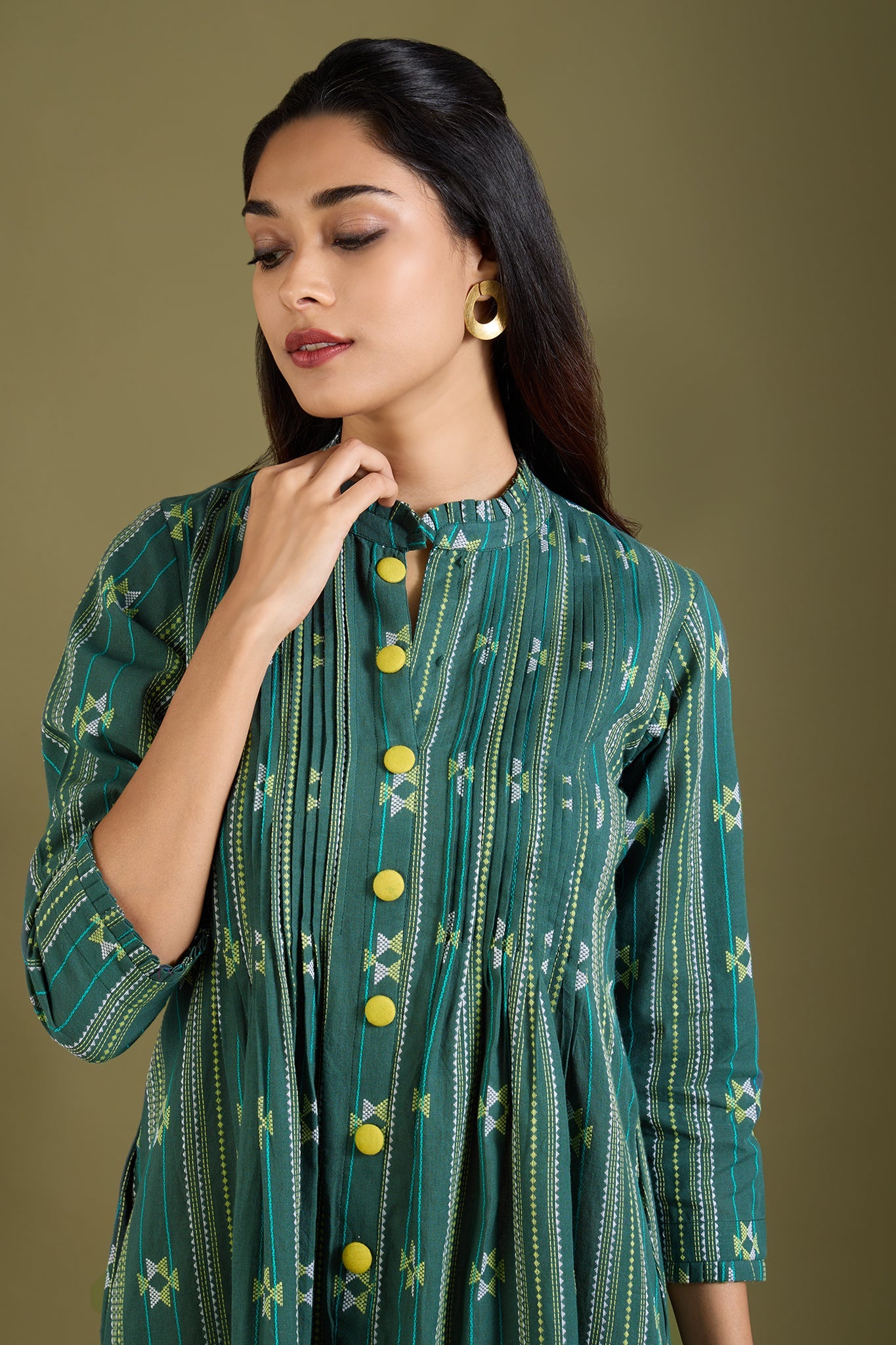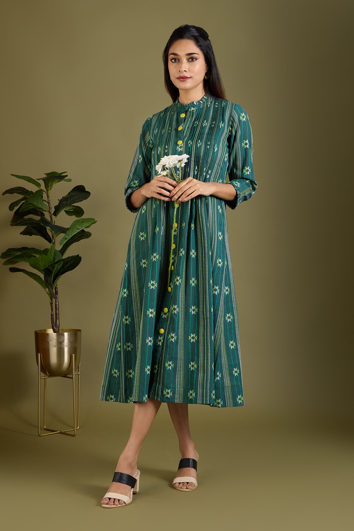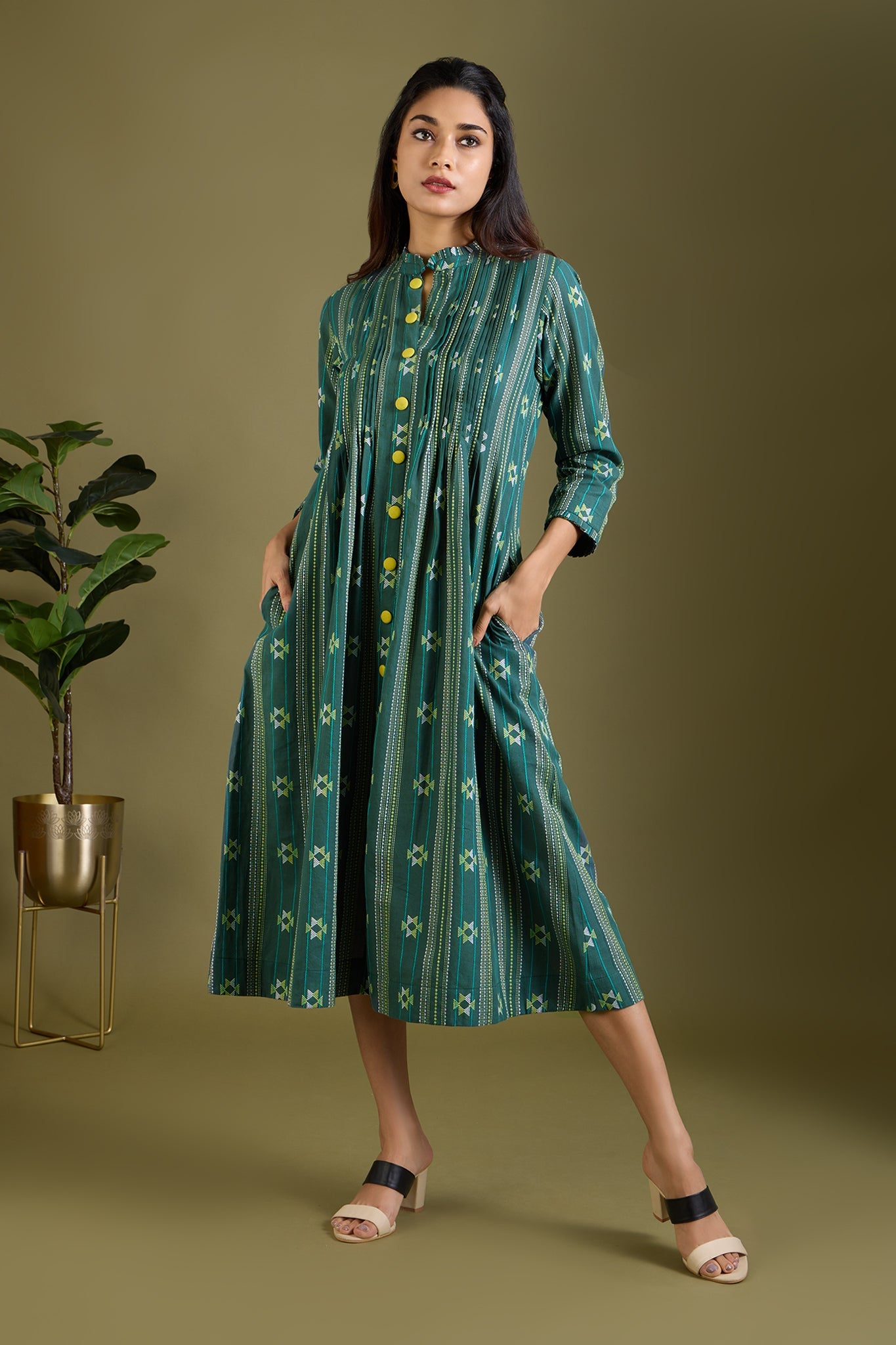 Maati Craft Sage Threads Pleated Neck Pintuck Dress
