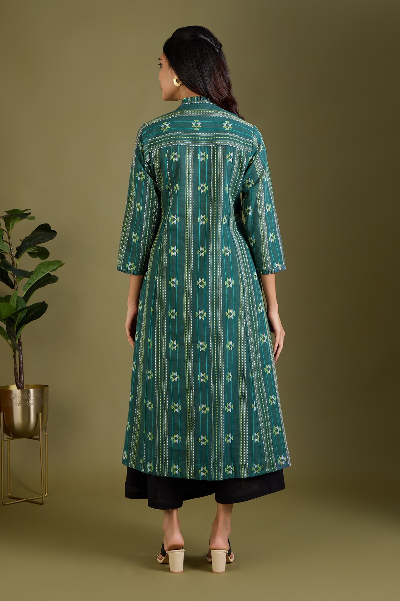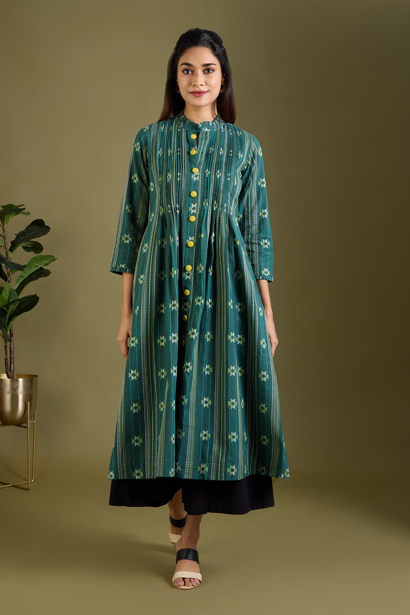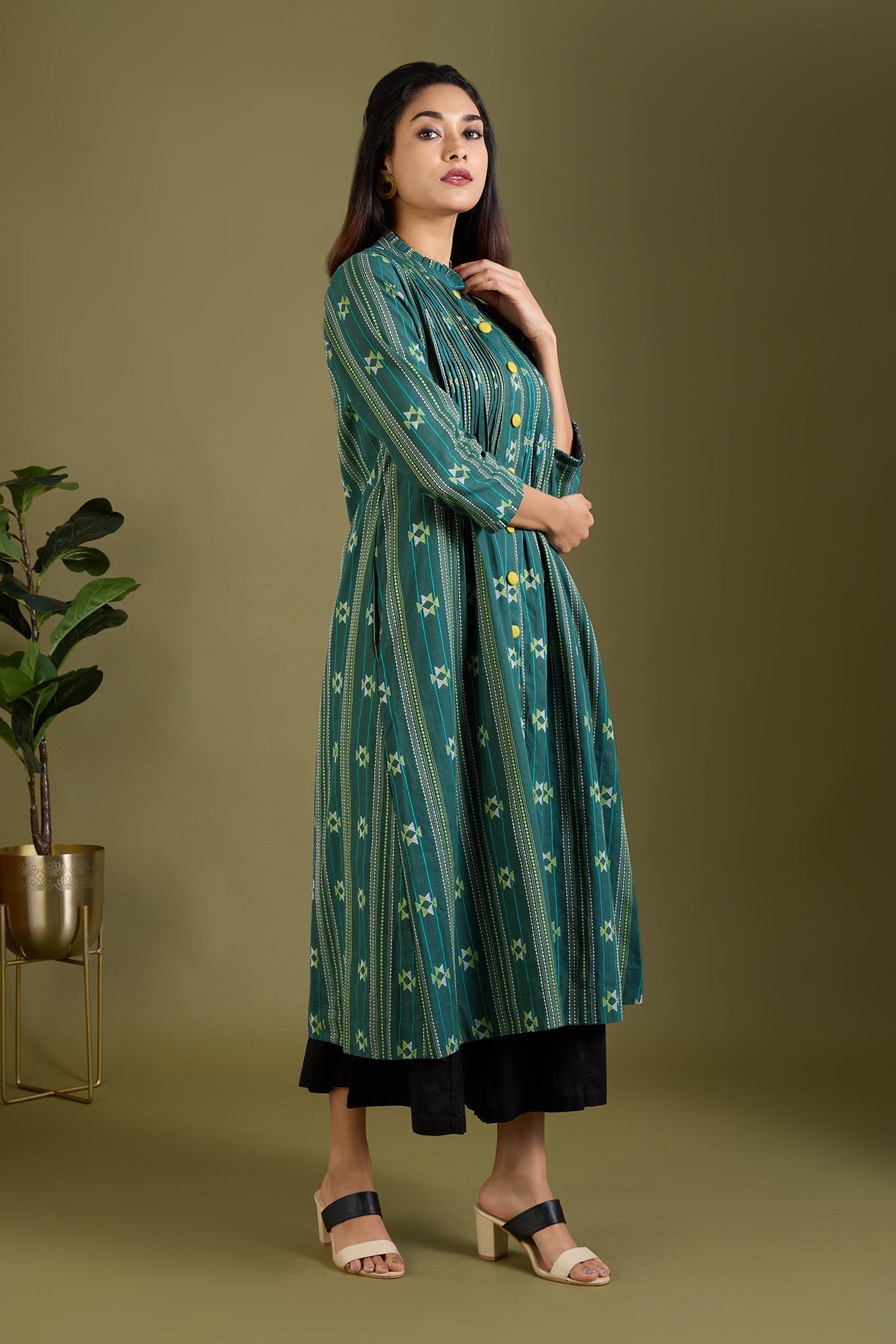 Maati Craft Sage Threads Pleated Neck Pintuck Dress