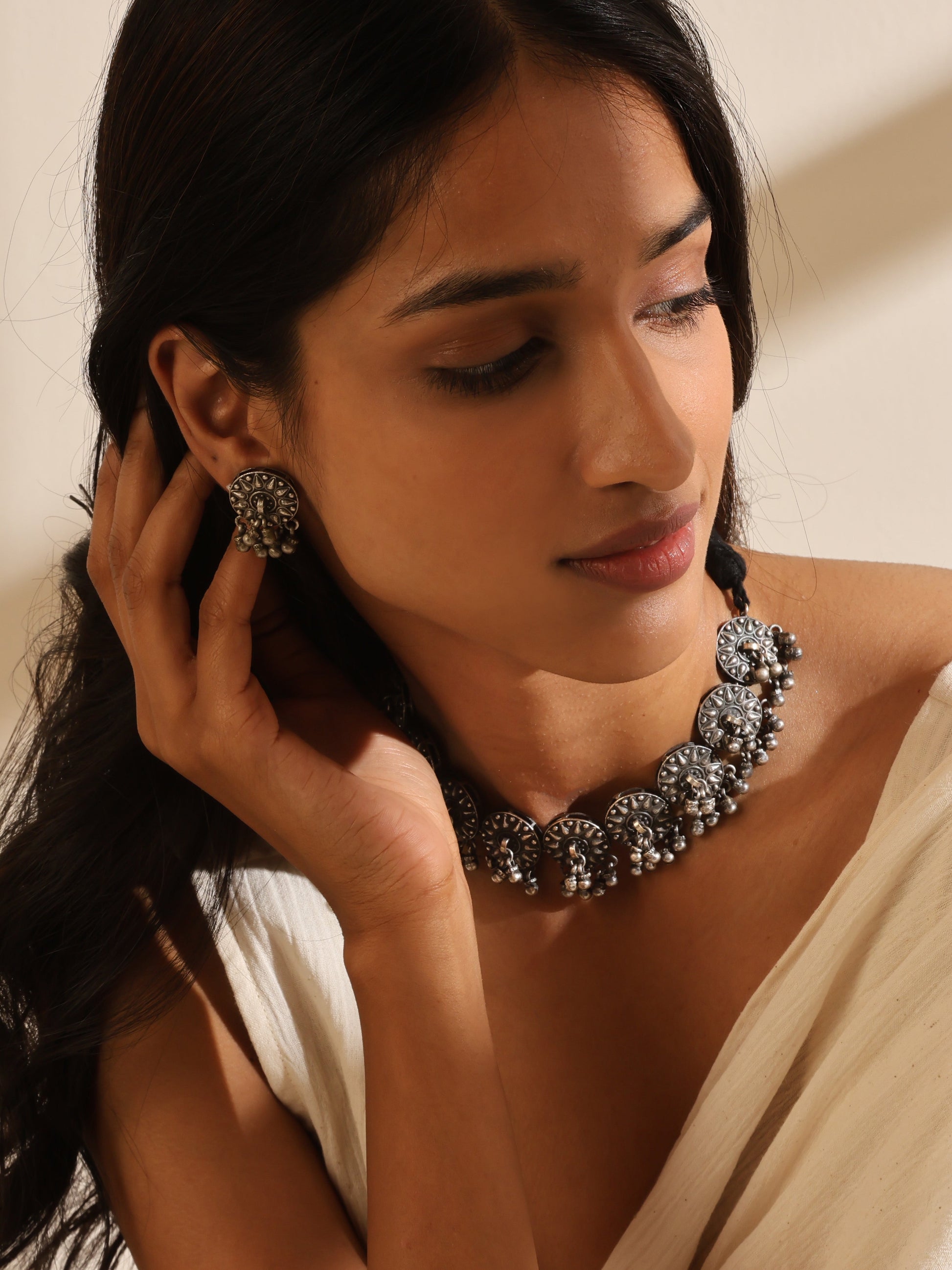 Silver-Plated Choker Necklace Set
