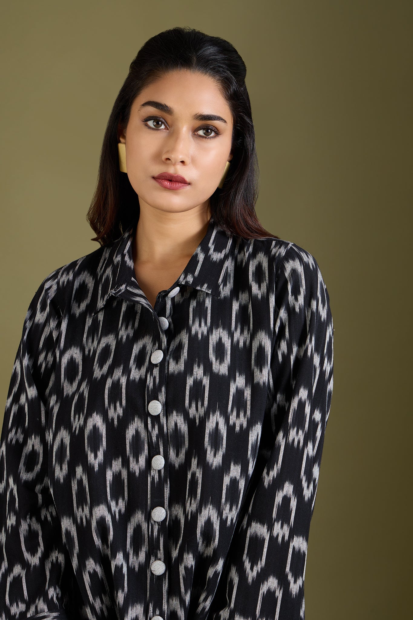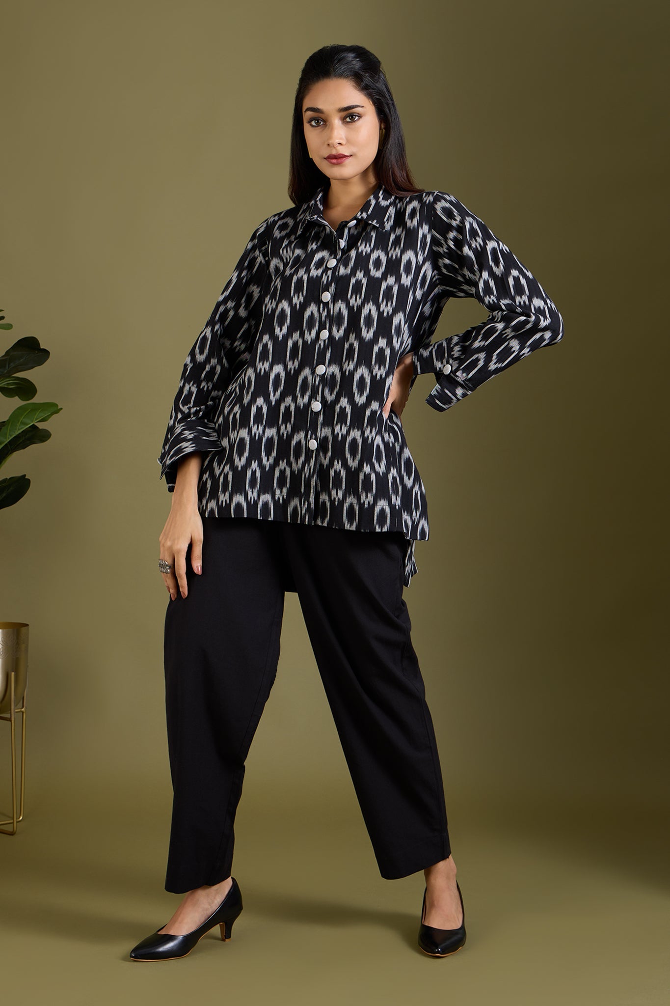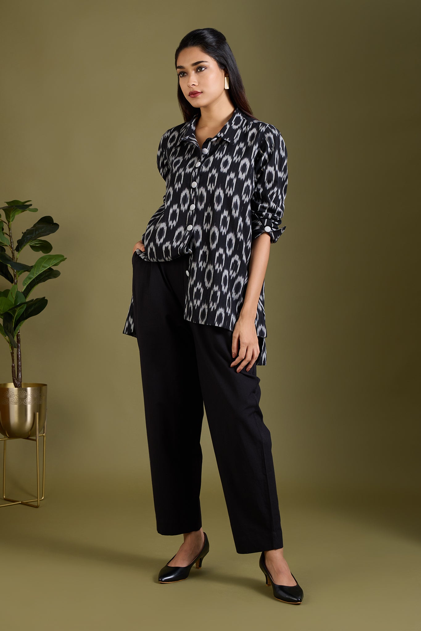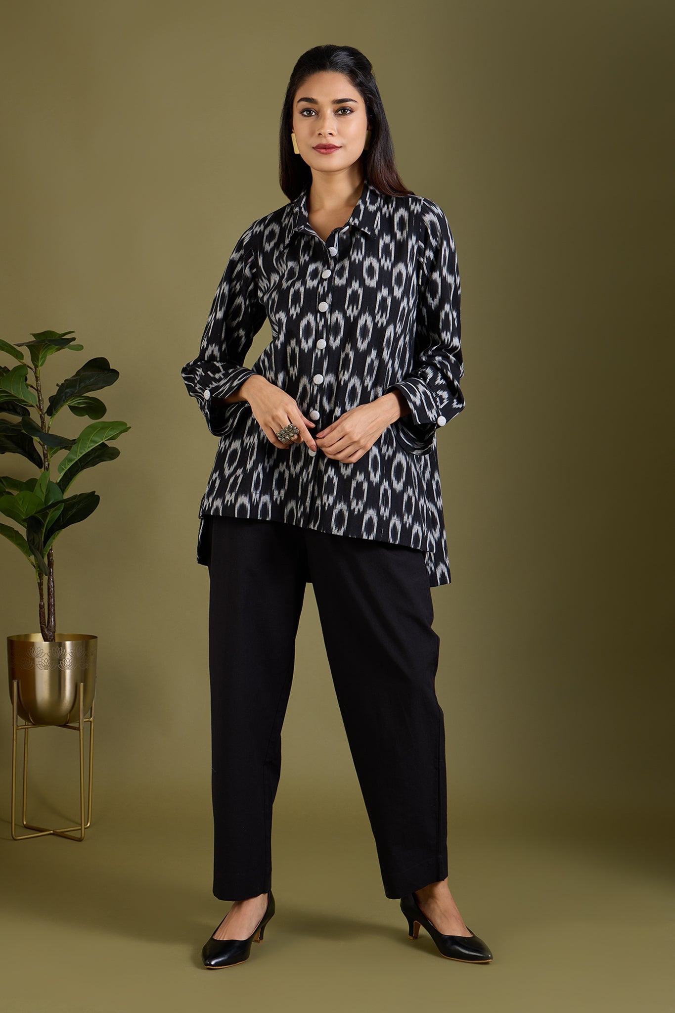 Maati Craft Smoke & Charcoal High Low Hem Cotton Shirt