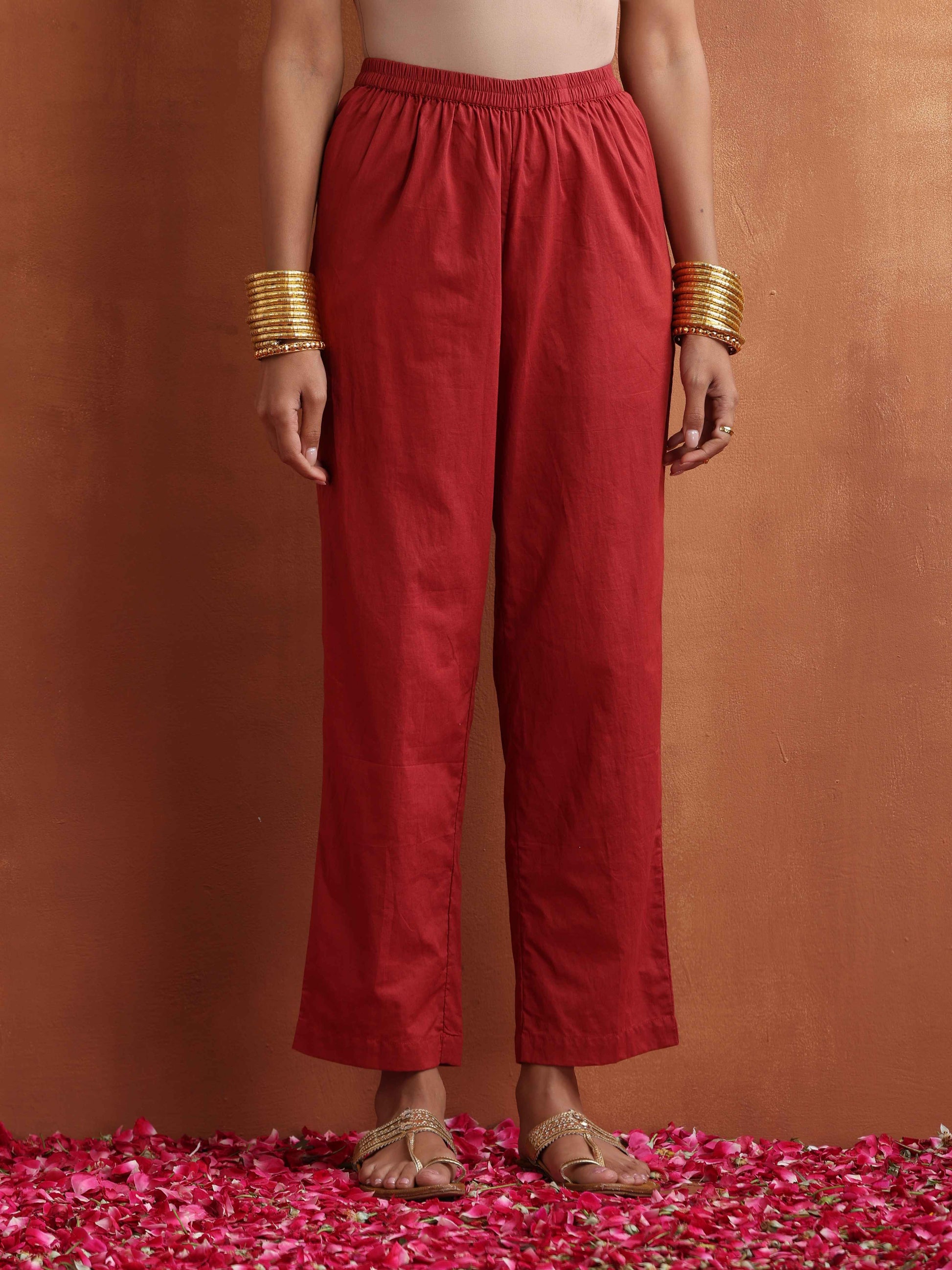 - Elevate your style with this maroon floral print flared anarkali kurta paired with red pant