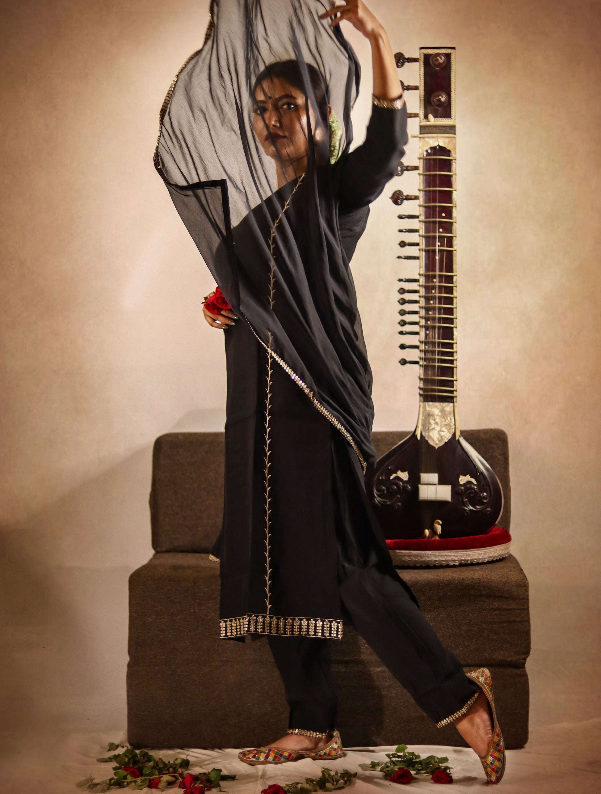 - Elevate your style and step into effortless elegance with this black embroidery kurta, paired with black pant and black dupatta. Designed for modern grace, perfect for festive ease and gatherings.
