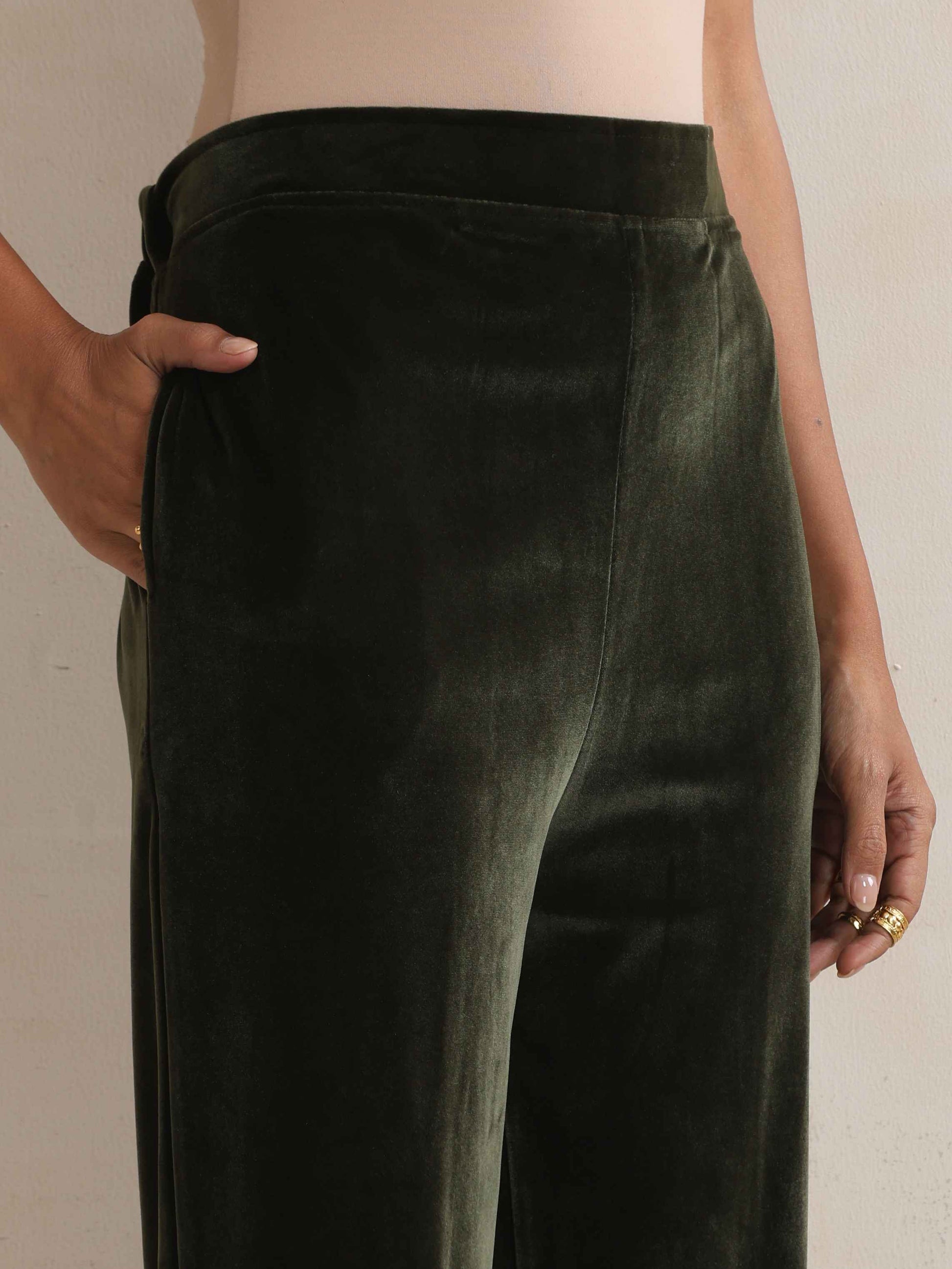 - Elevate your style with this green velvet floral embroidered kurta pant dupatta set, it's an ideal blend of elegance and comfort.