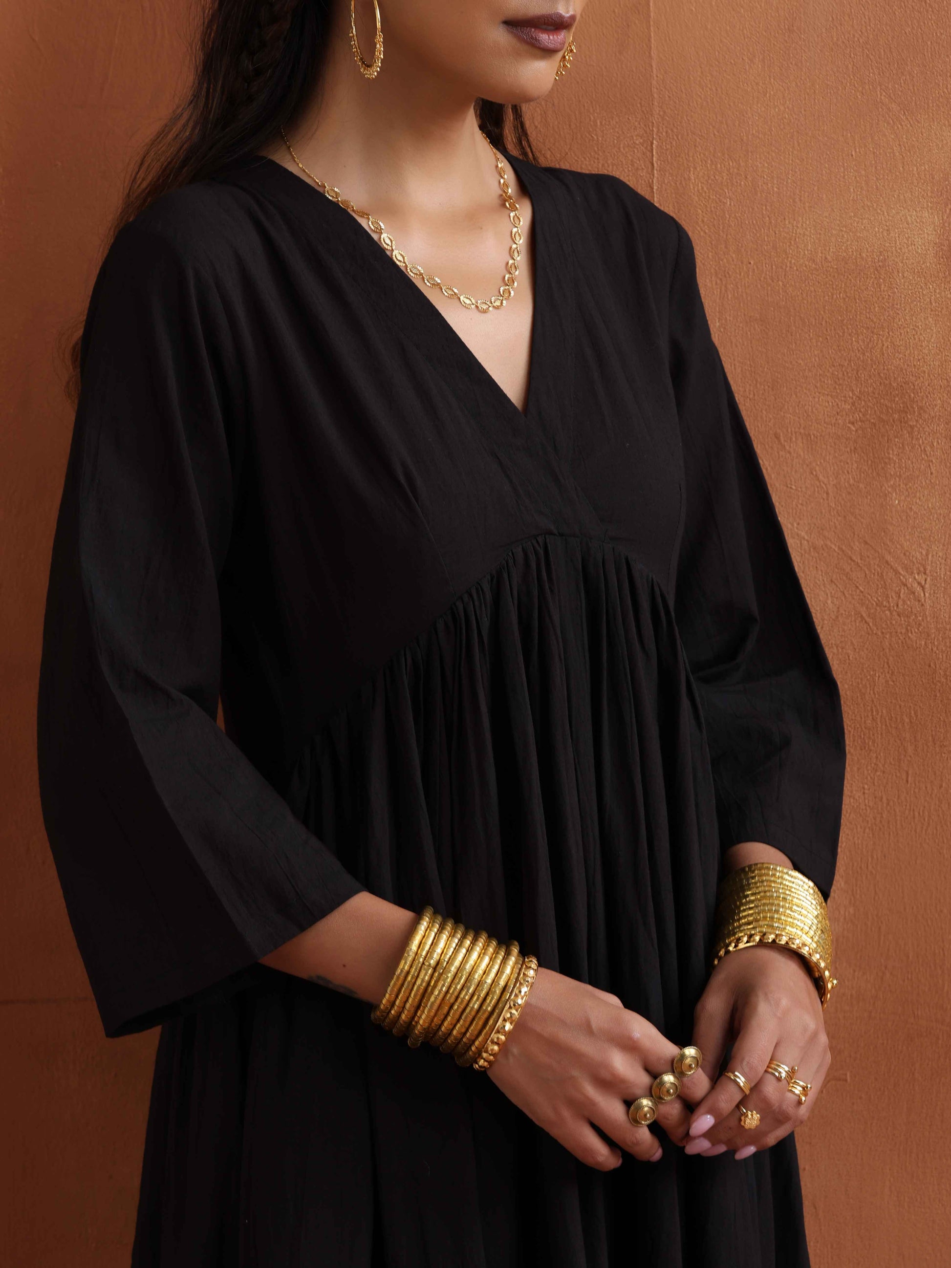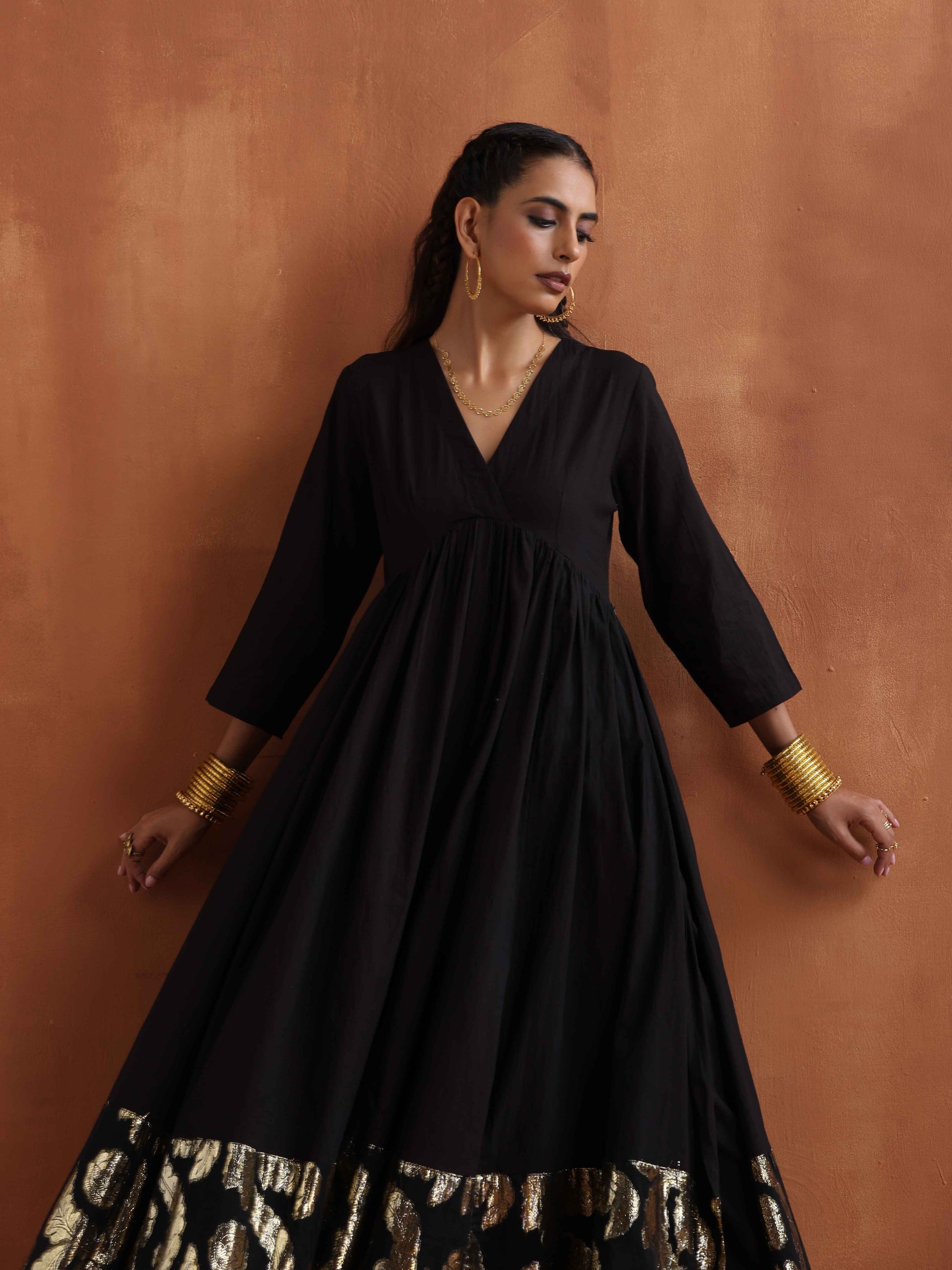 trueBrowns Black Metallic Flared Anarkali Kurta Set