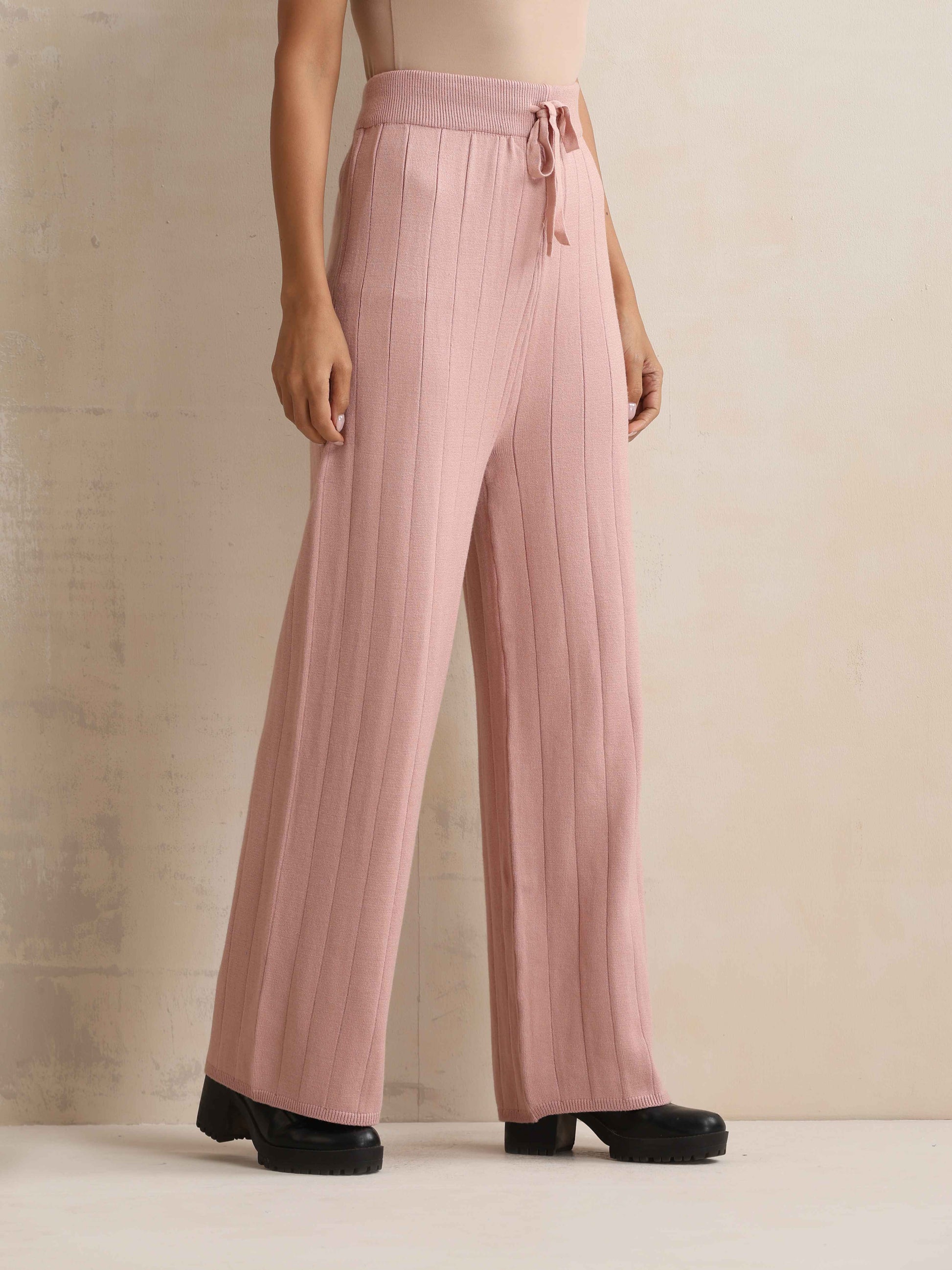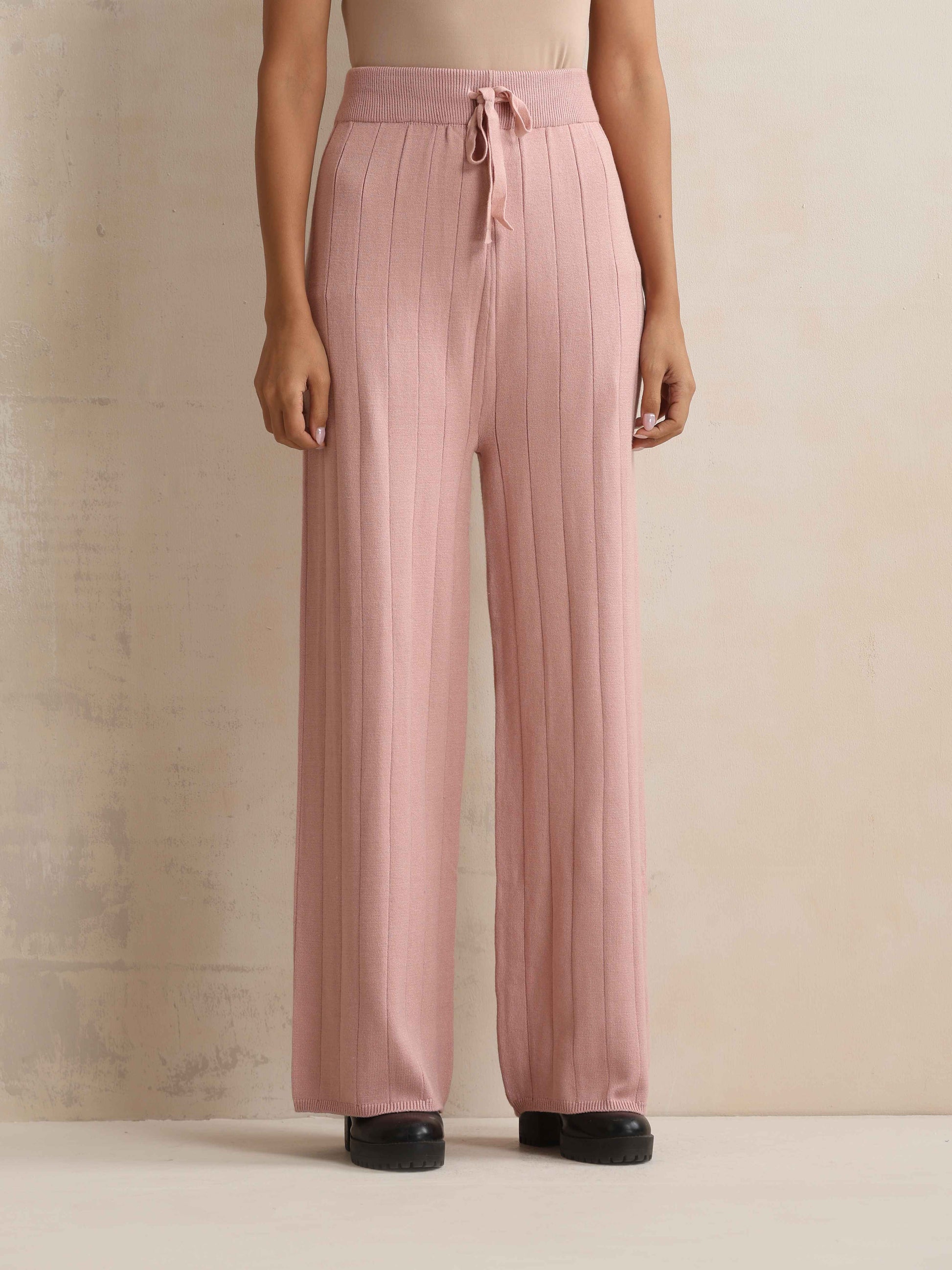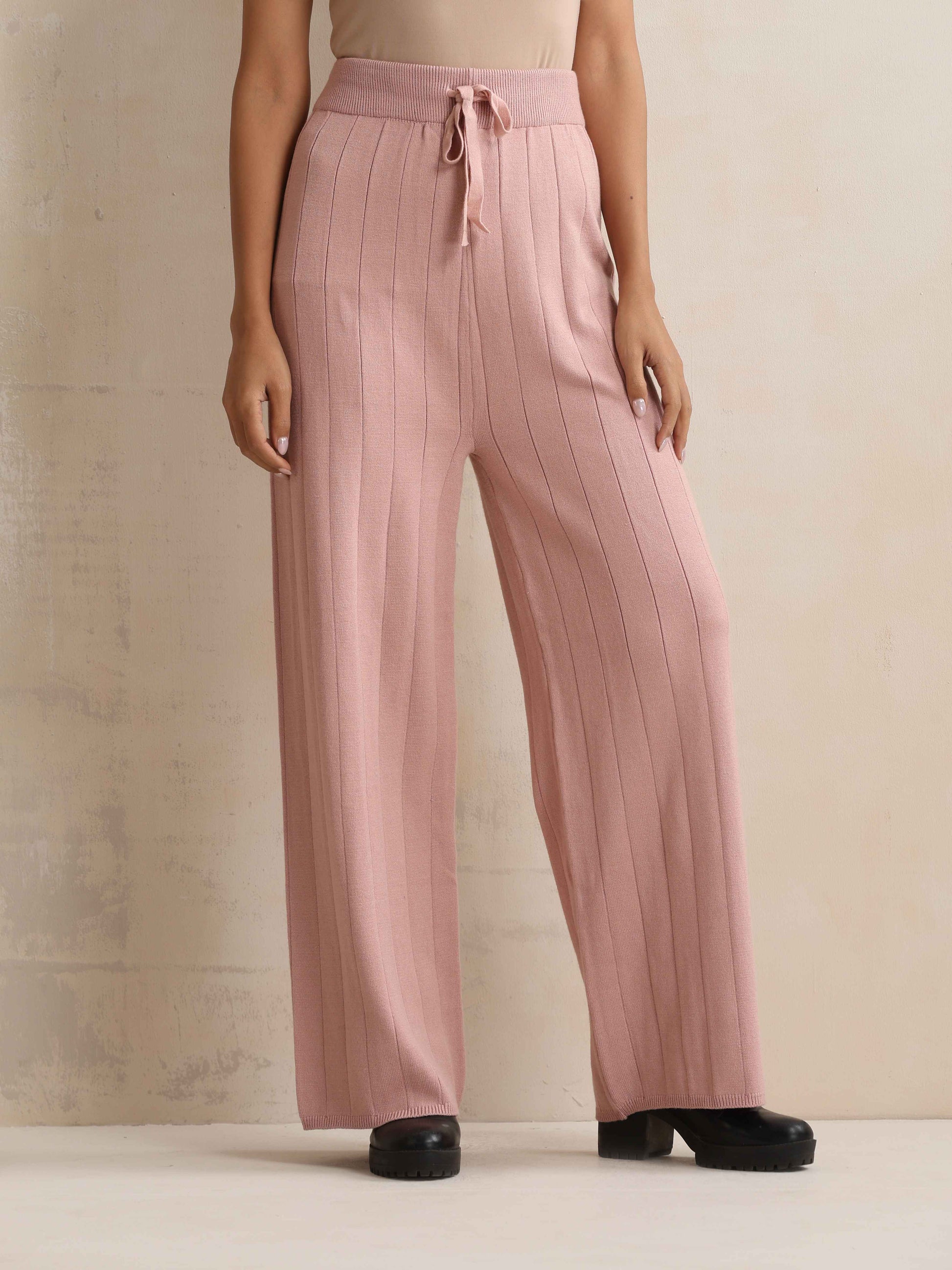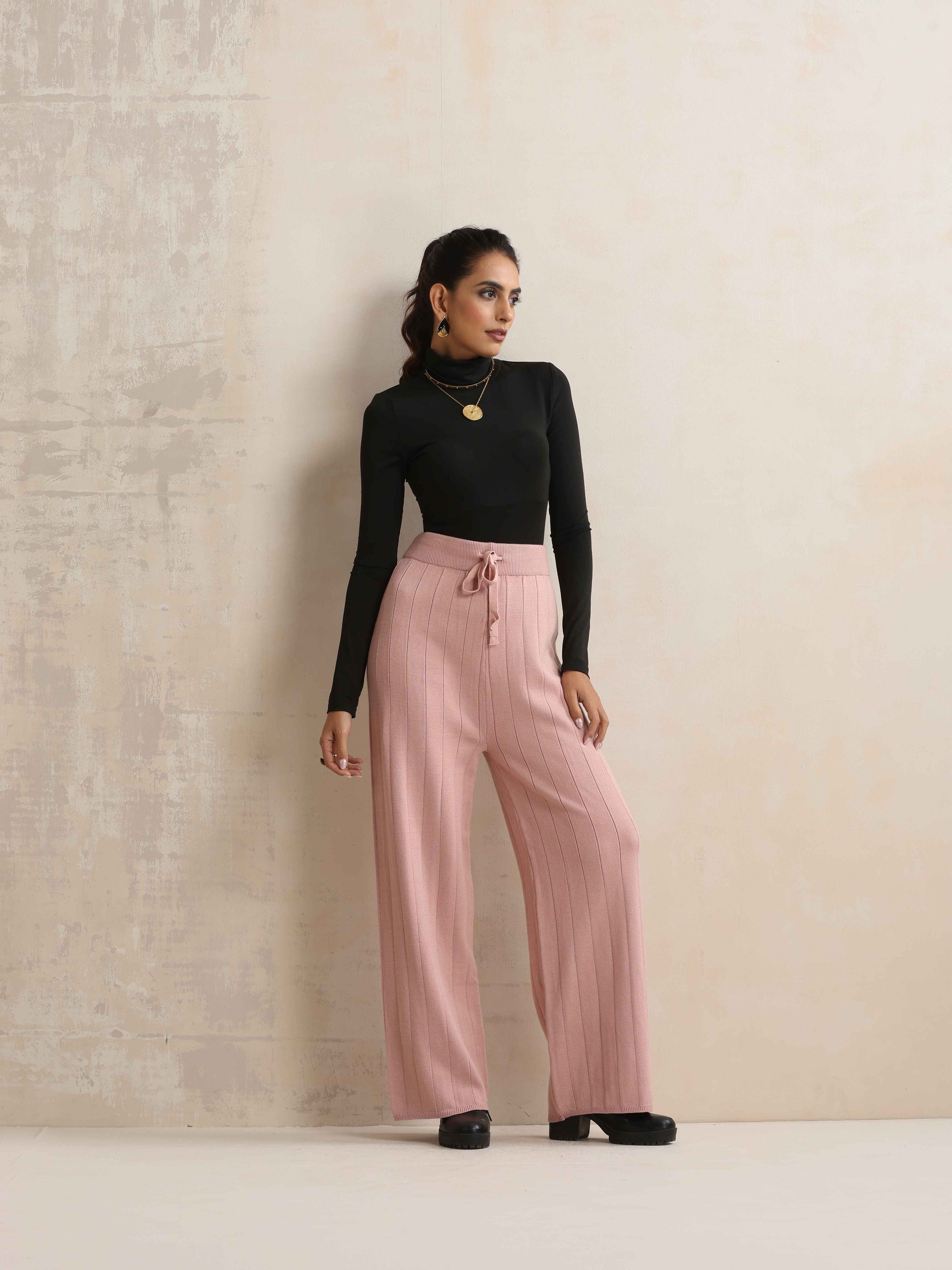 - Elevate your style with this pink woollen flared pants, it's an ideal blend of elegance and comfort.