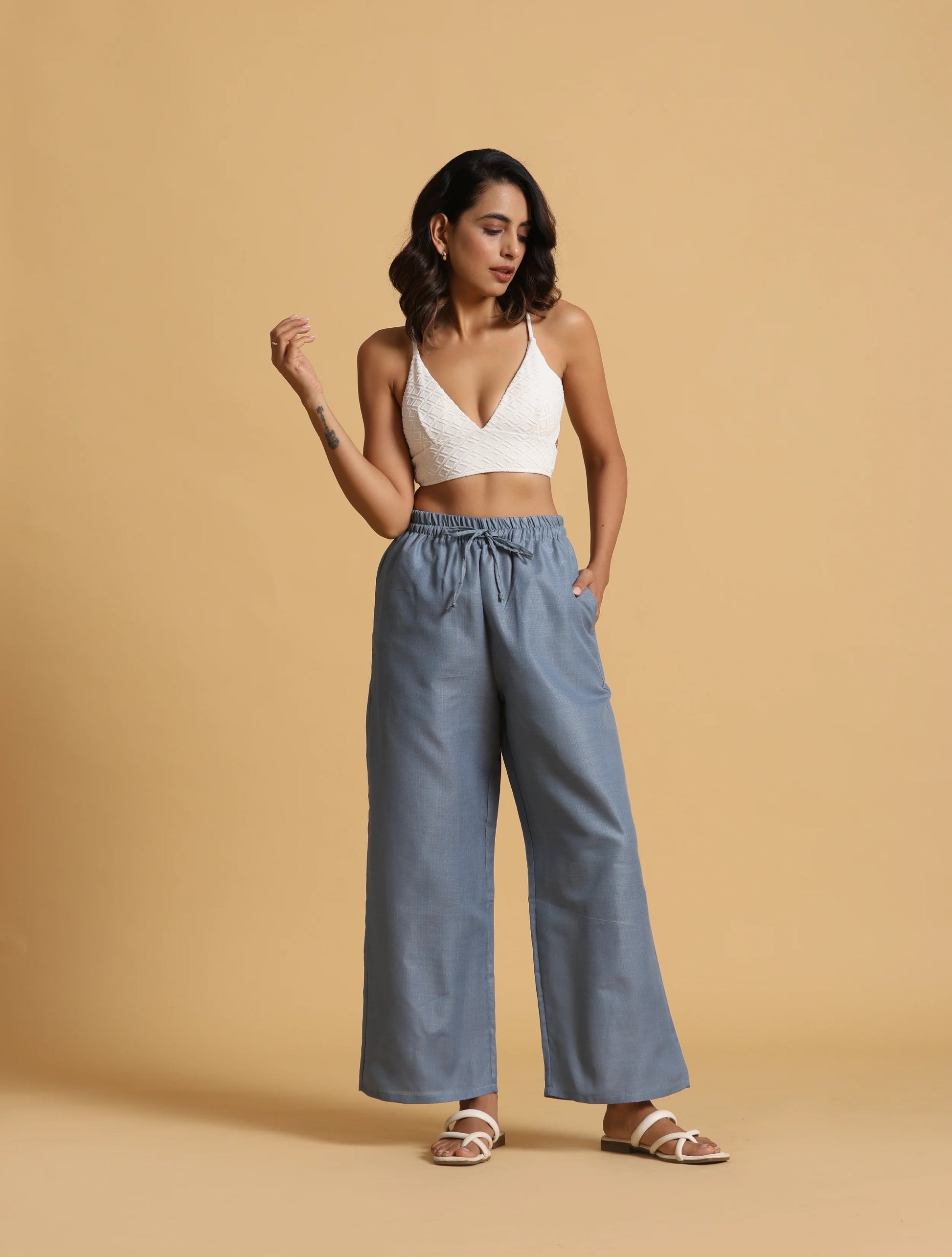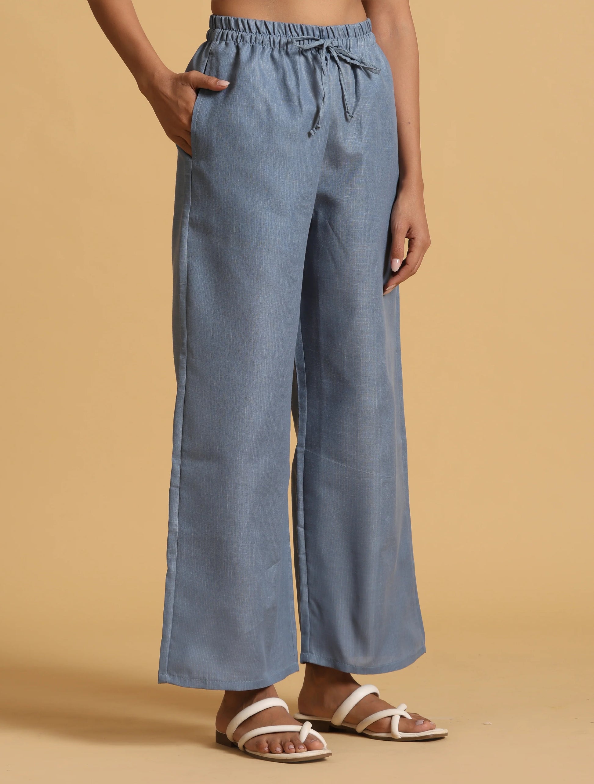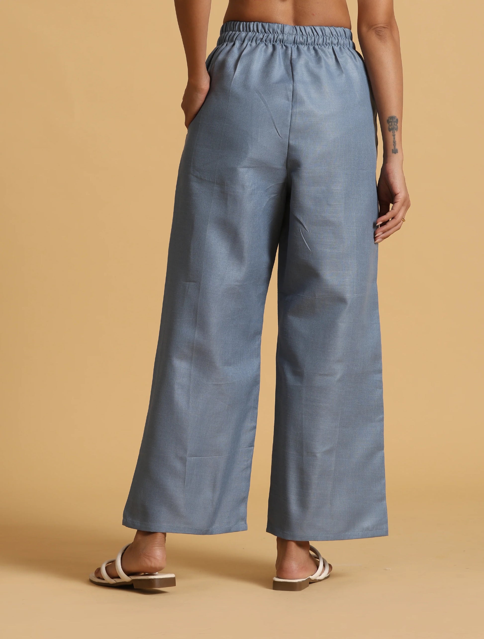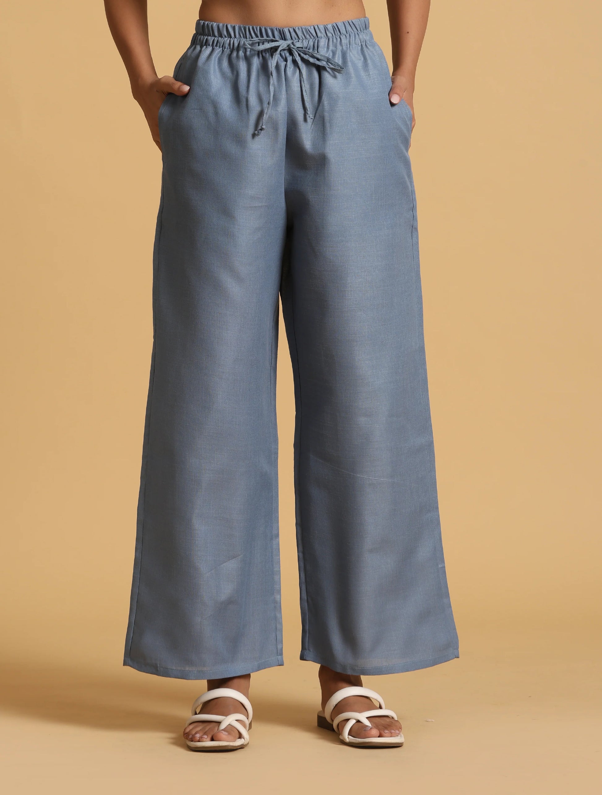 - Elevate your style with this blue solid bottom. Style it with your own Kurta/Top to complete the look.