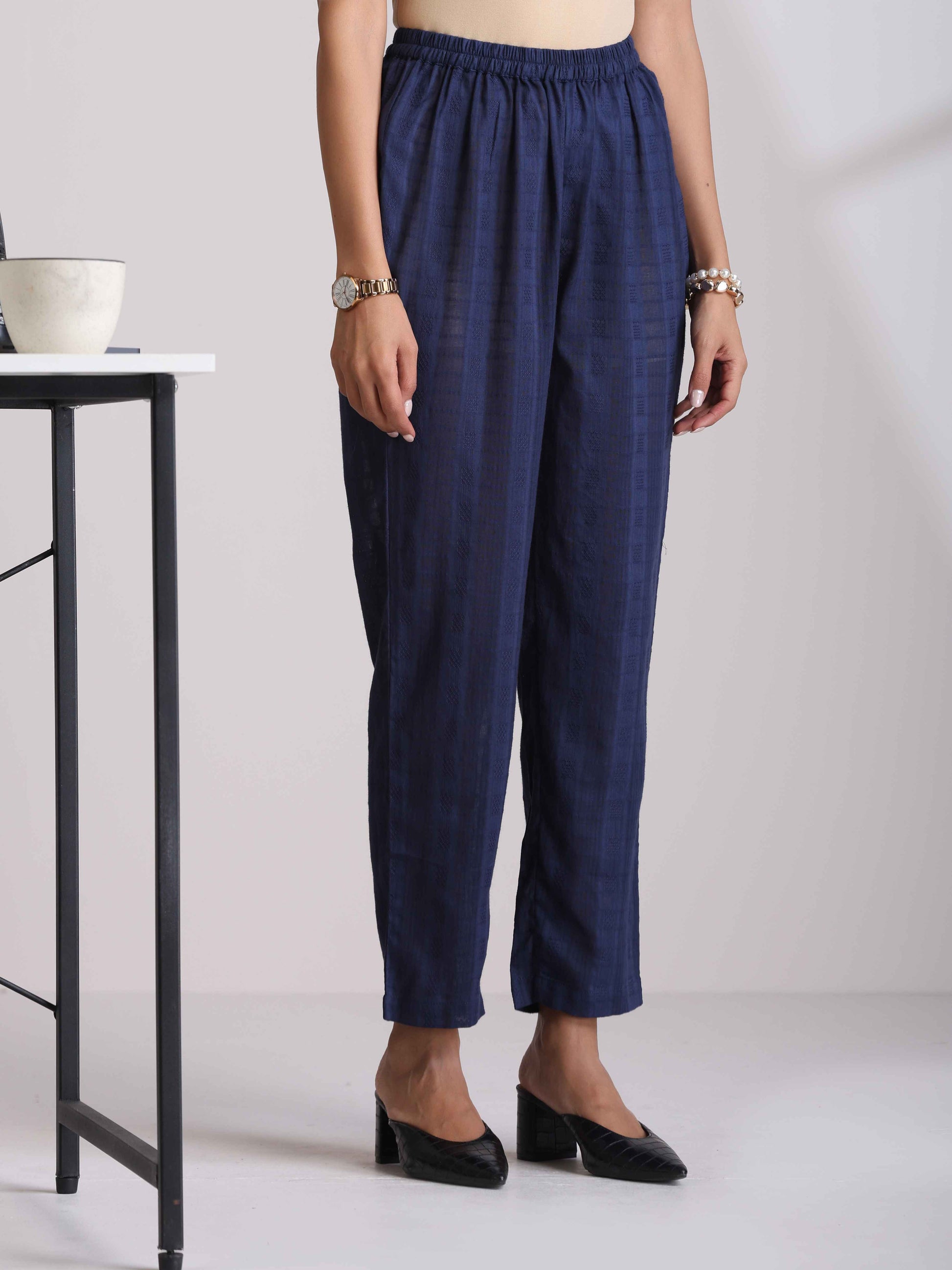 trueBrowns Blue Cotton Dobby Kurta Pant Set