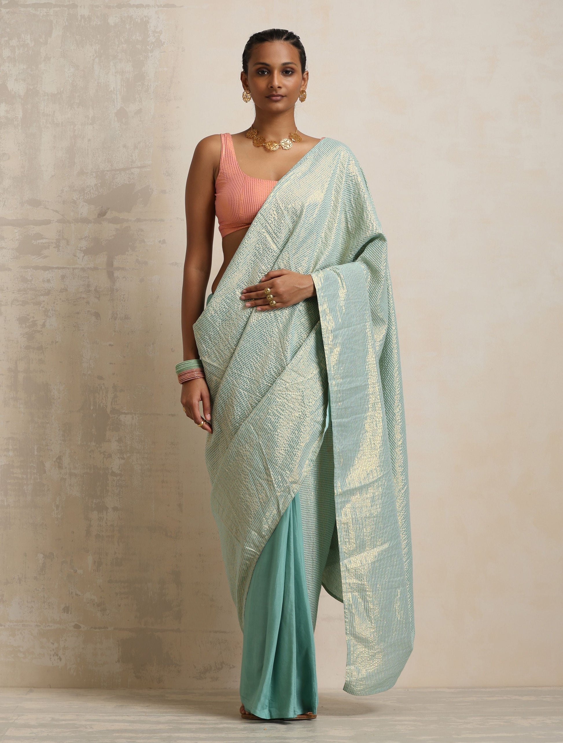 trueBrowns Blue Gold Lurex Ready To Wear Saree