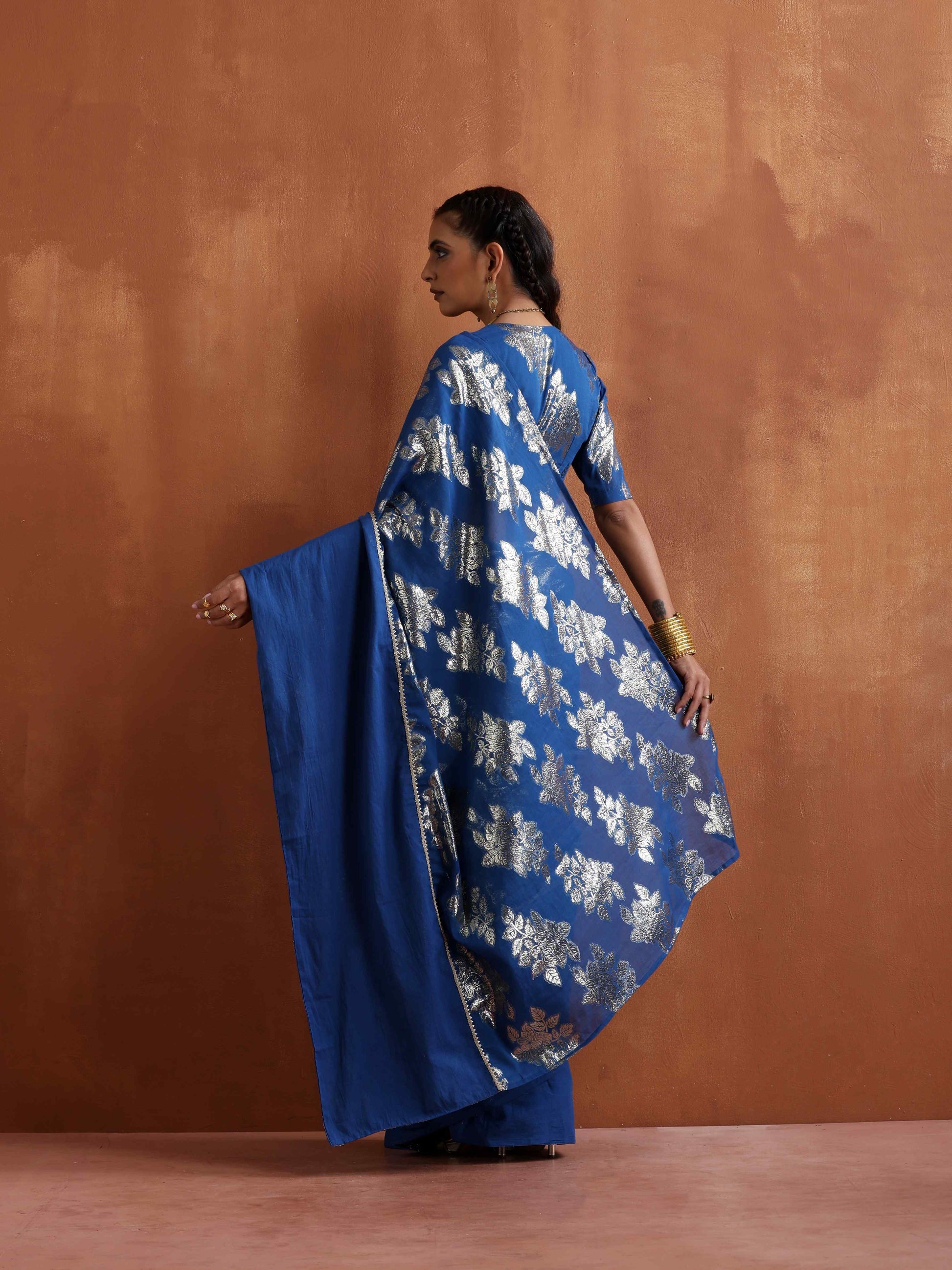 - Elevate your style with this blue metallic ready to wear saree, it's an ideal blend of elegance and comfort.