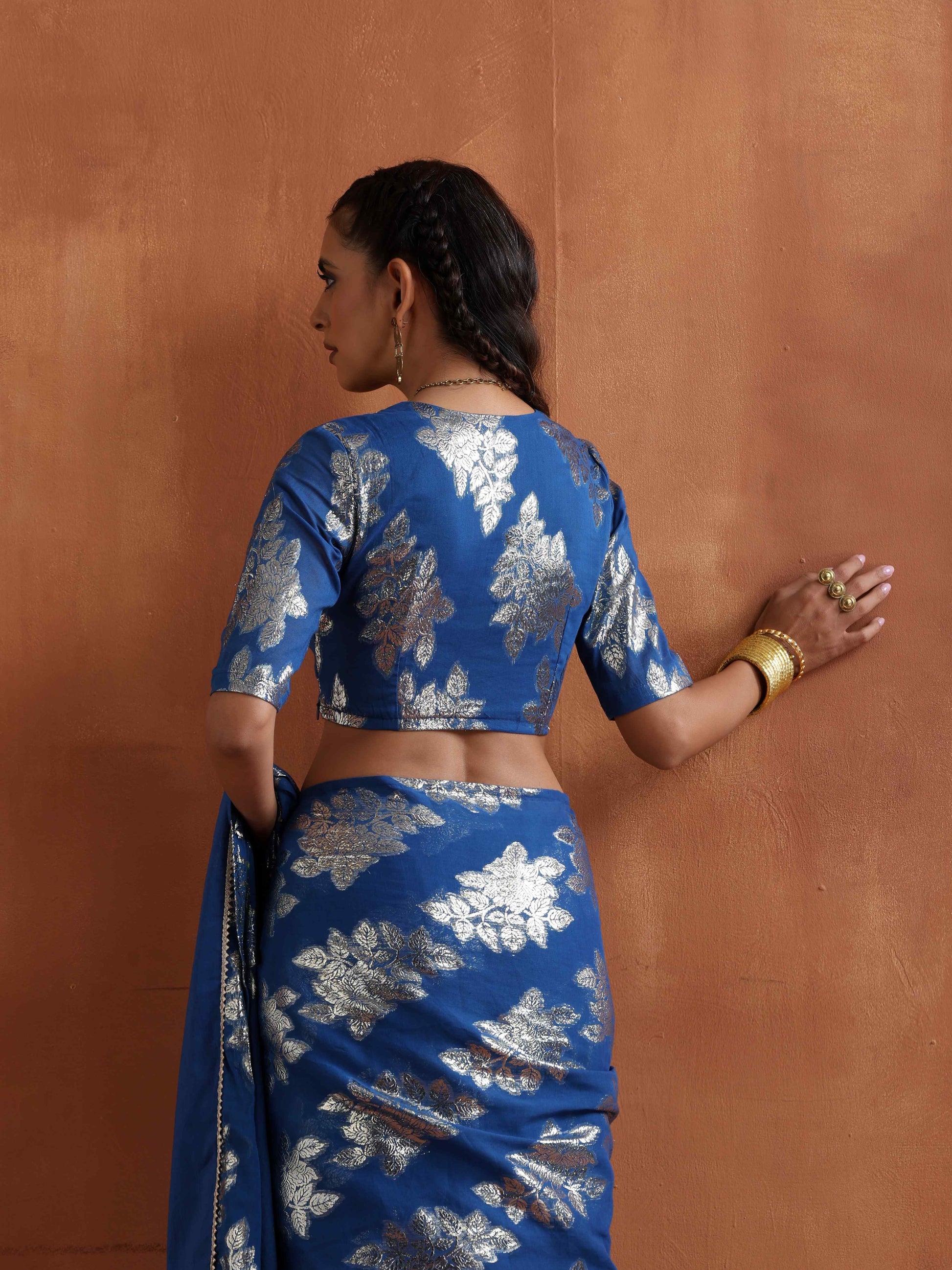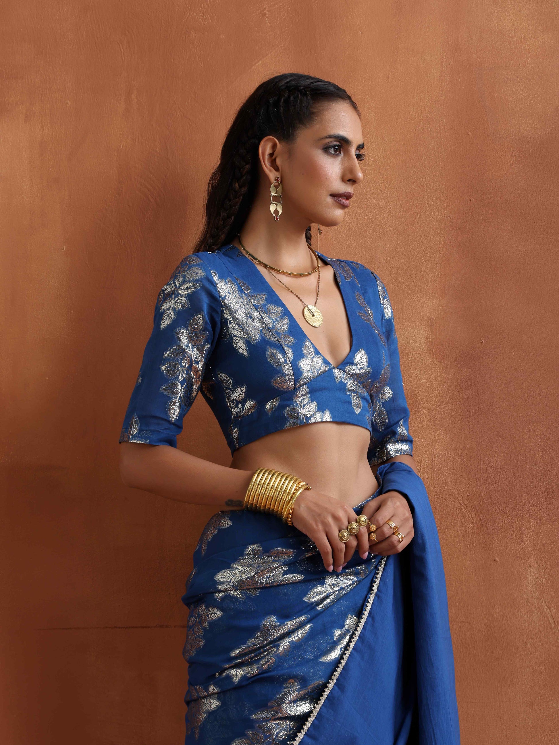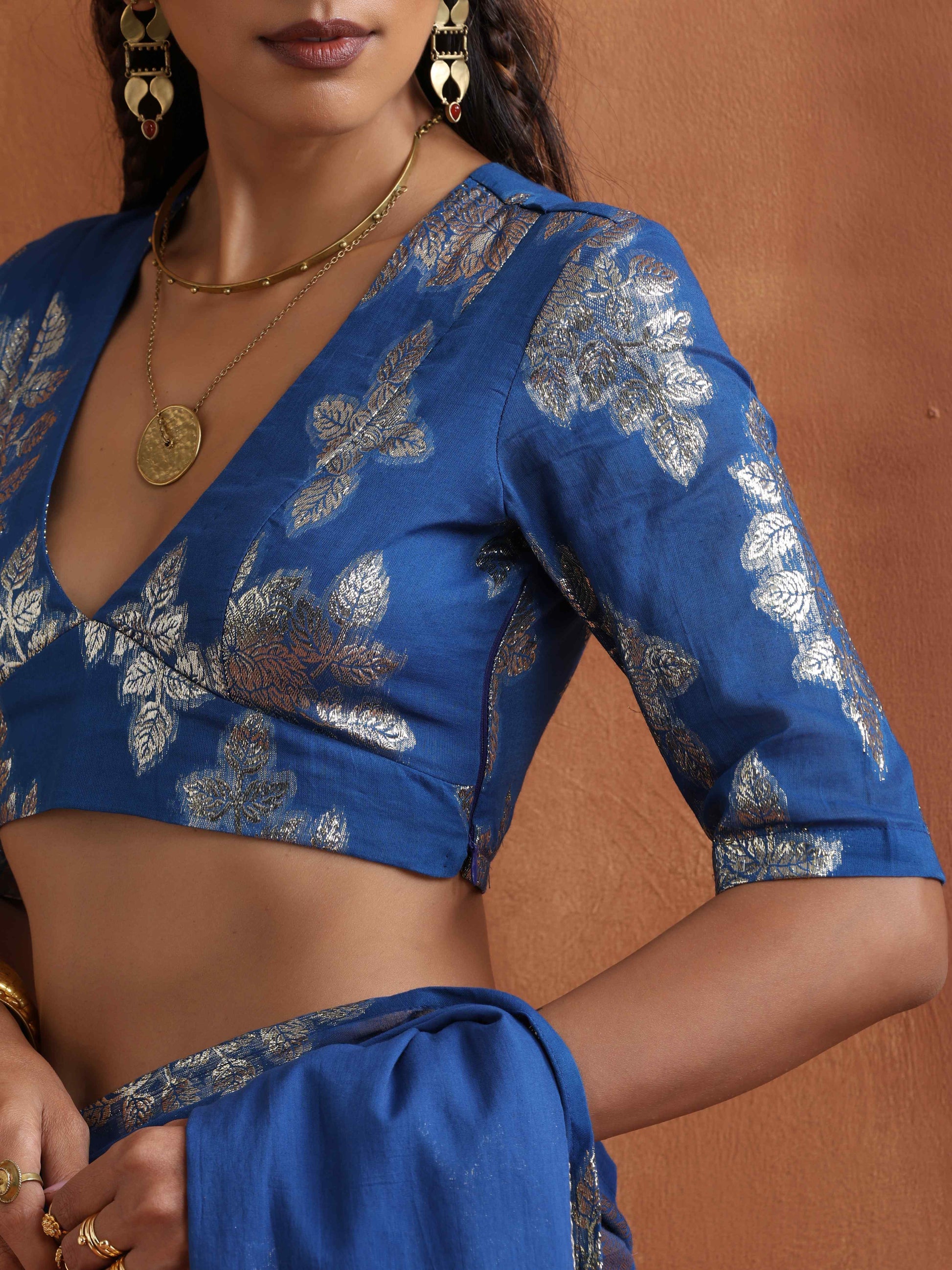 - Elevate your style with this blue metallic blouse, it's an ideal blend of elegance and comfort.