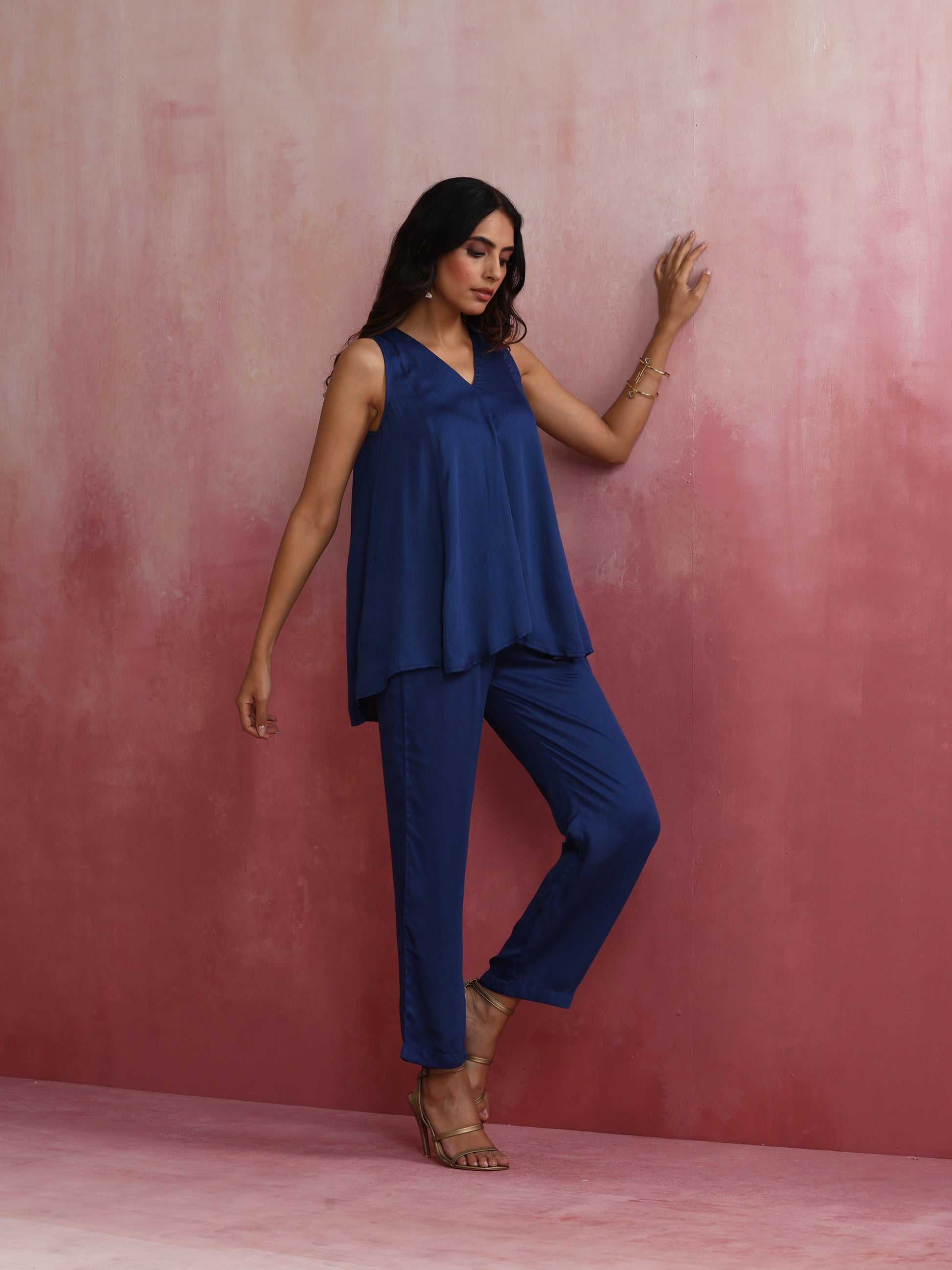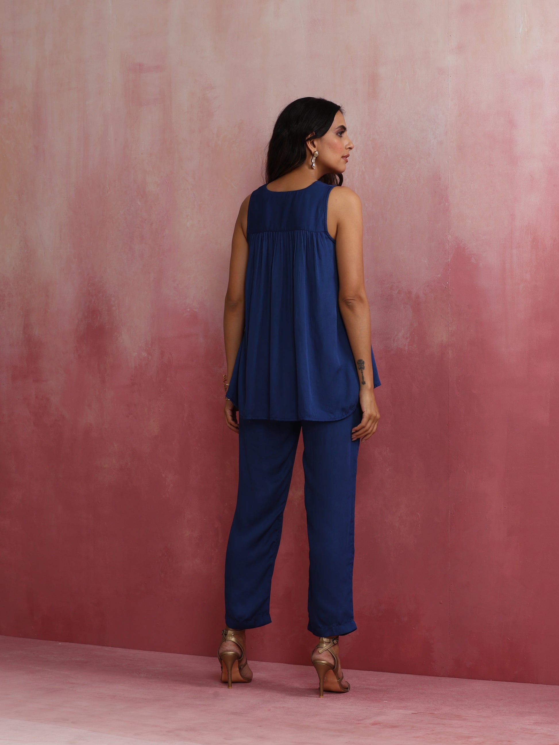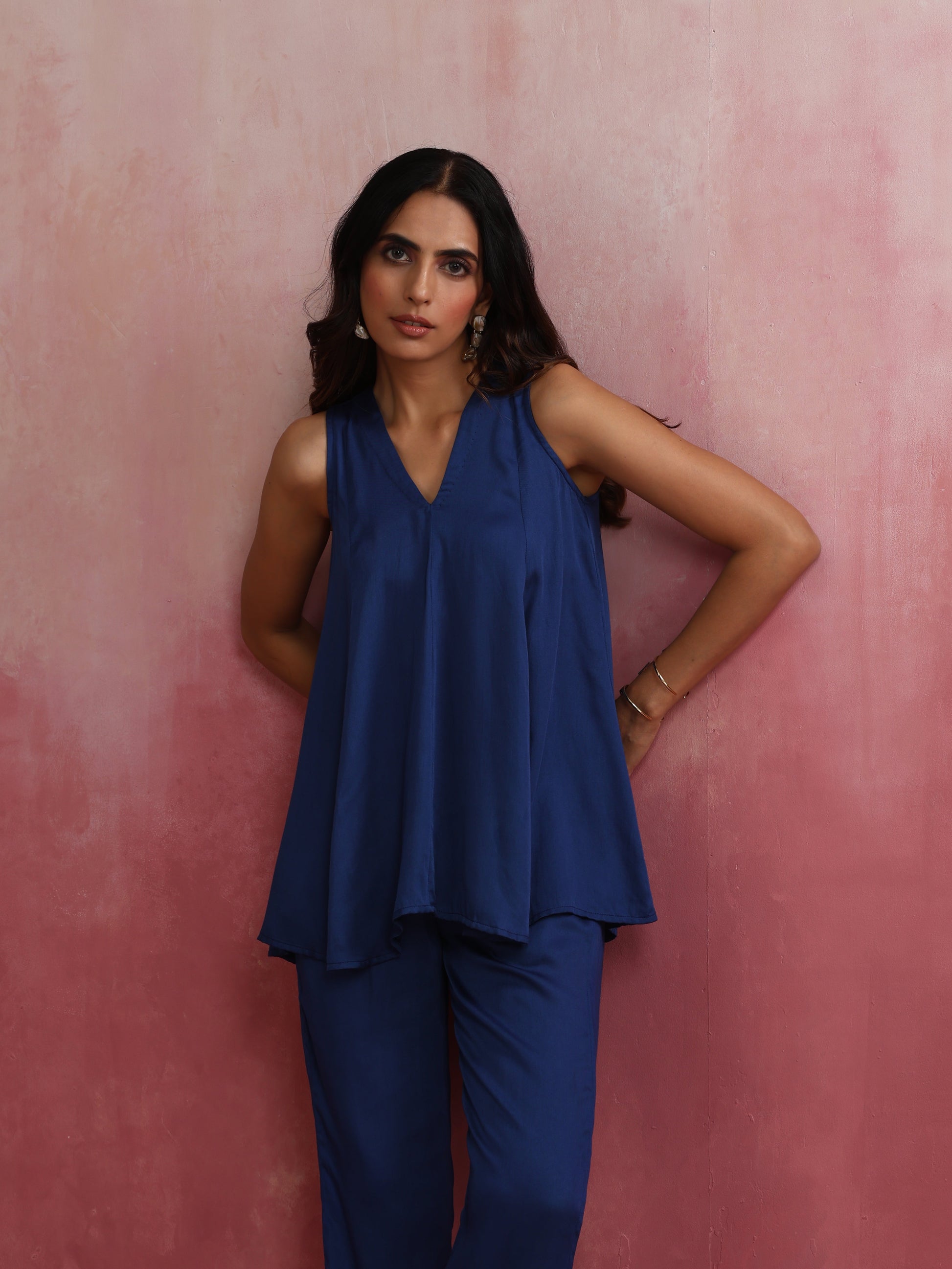 trueBrowns Blue Modal Flared Kurta Co-ord Set