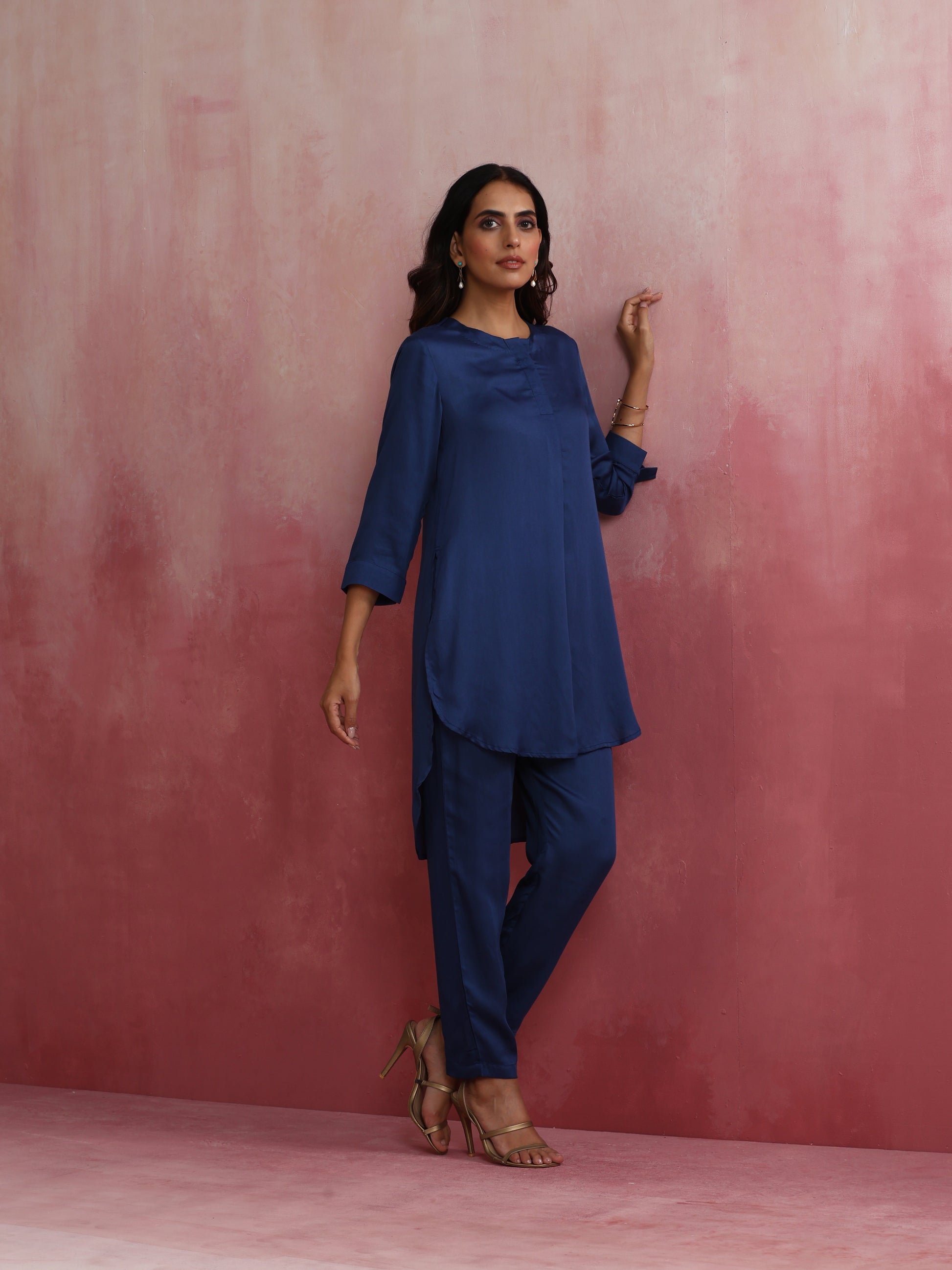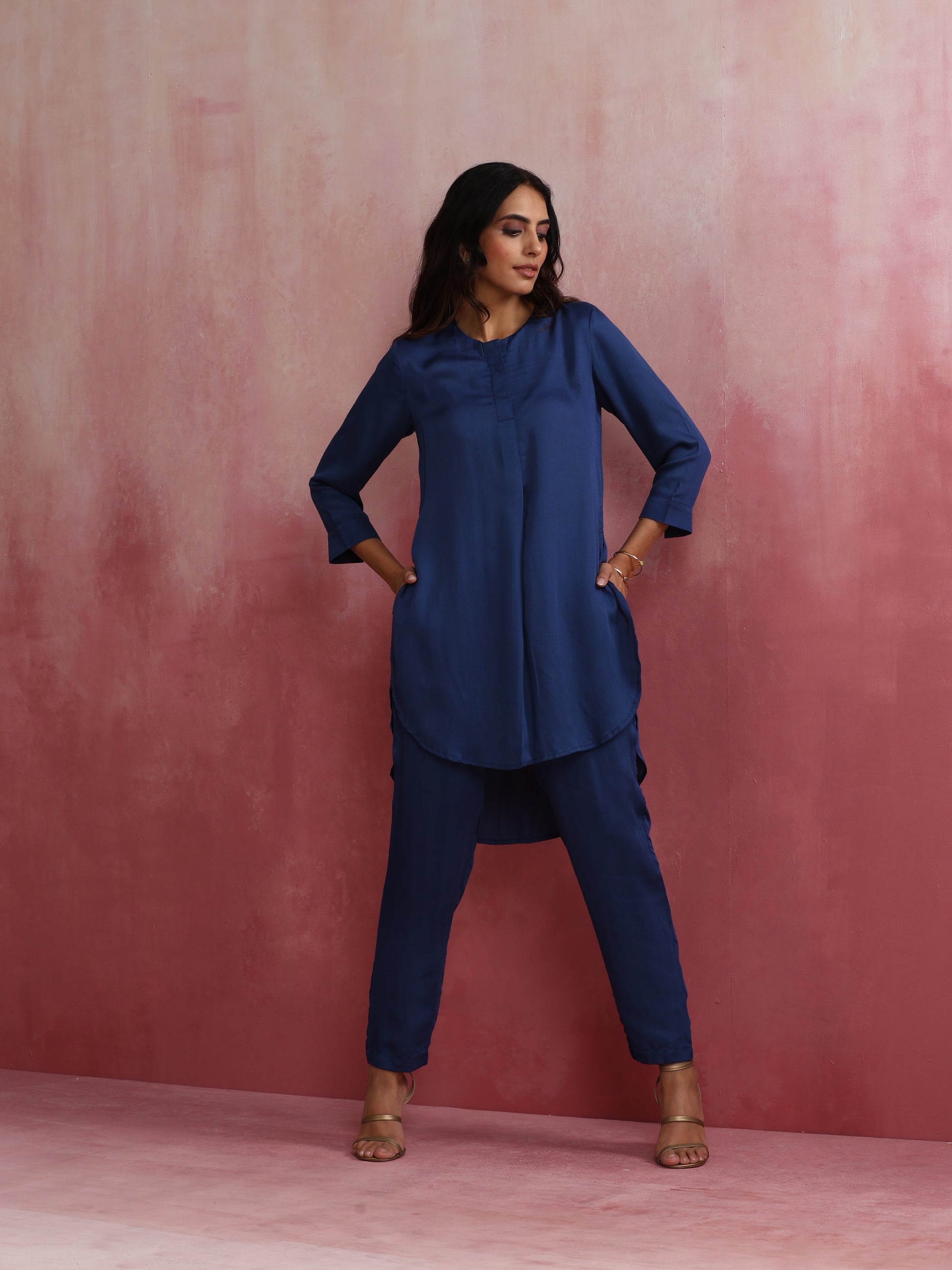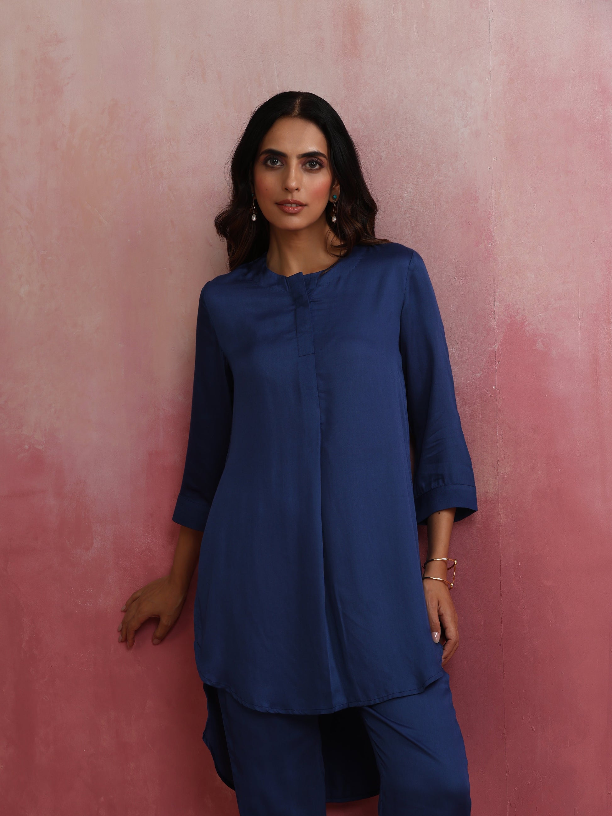 trueBrowns Blue Modal High Low Kurta Co-ord Set