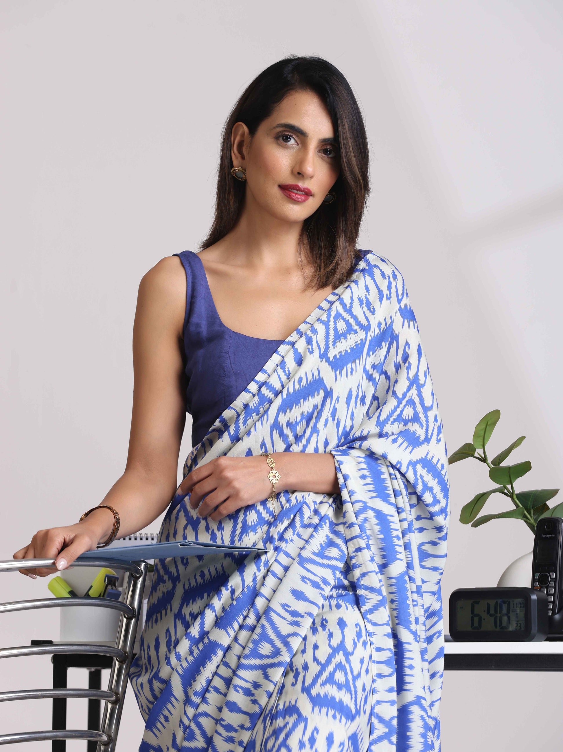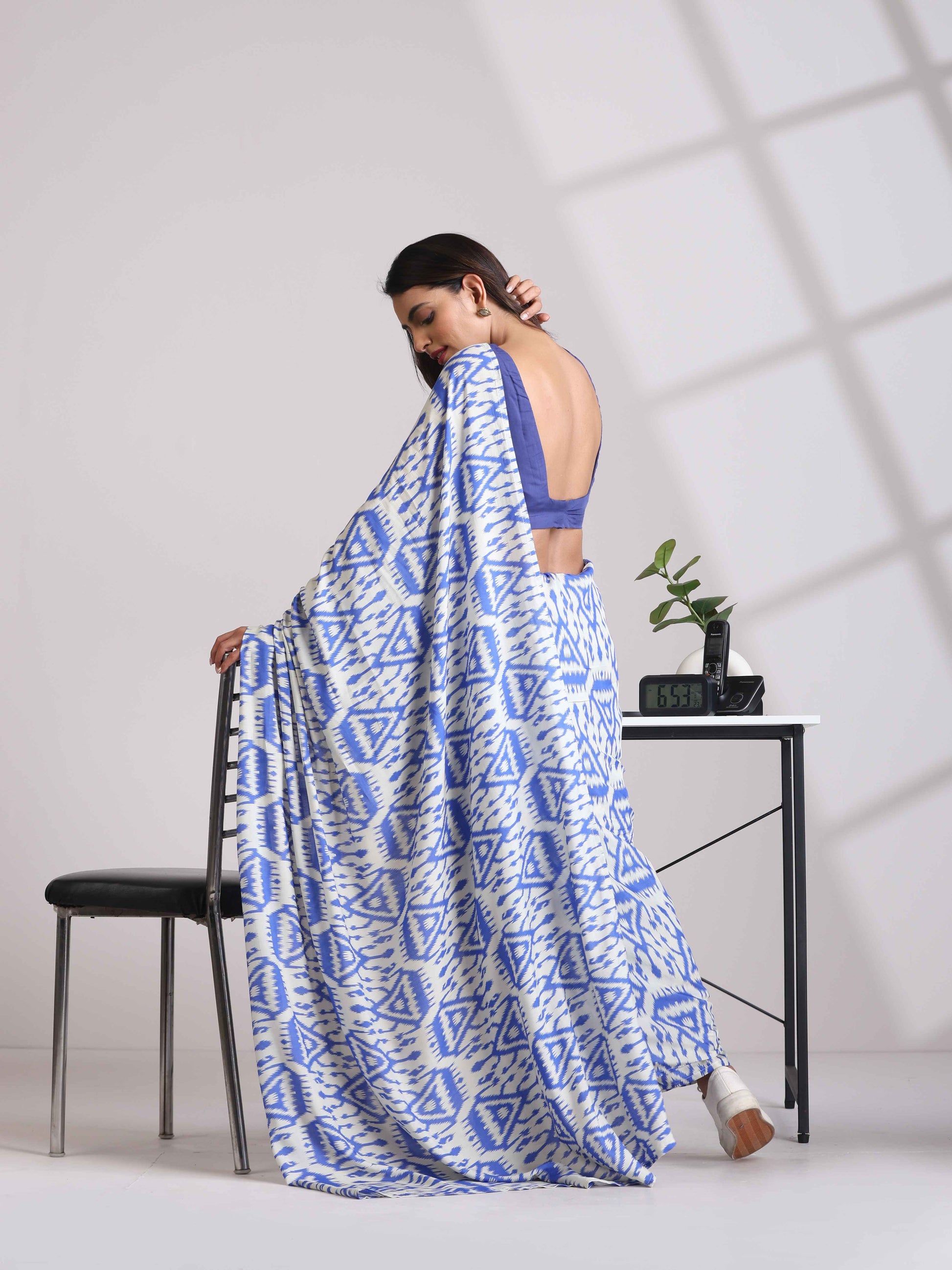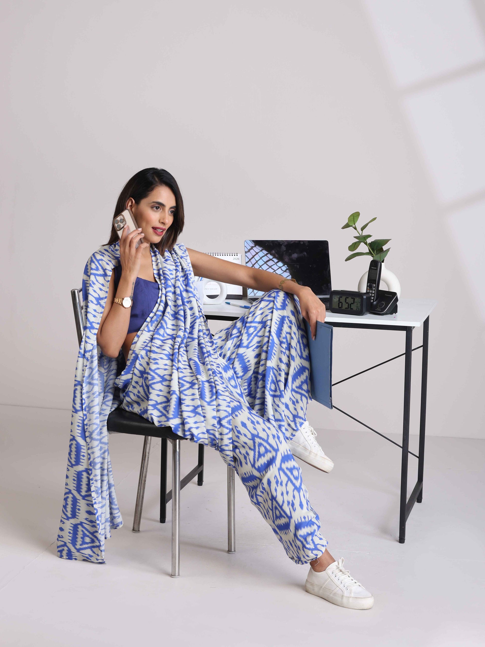 - Muslin Ikat Triangle Printed pre-stitched saree.