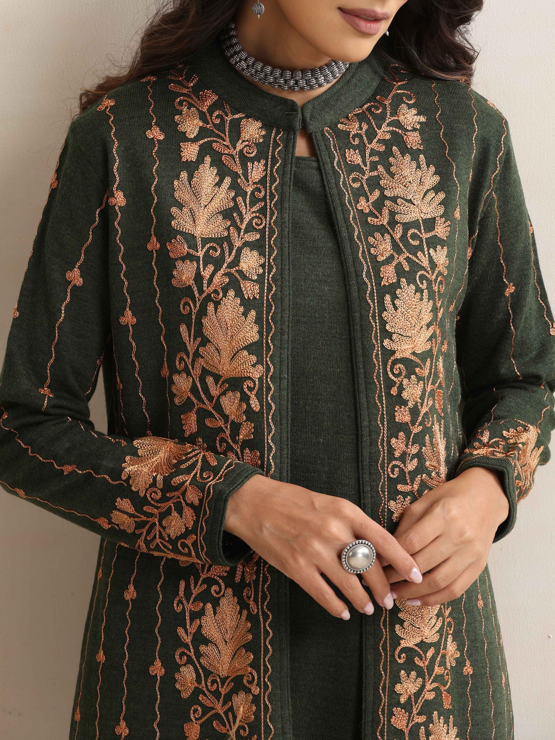 - Elevate your style with this green woollen jacket set, it's an ideal blend of elegance and comfort.