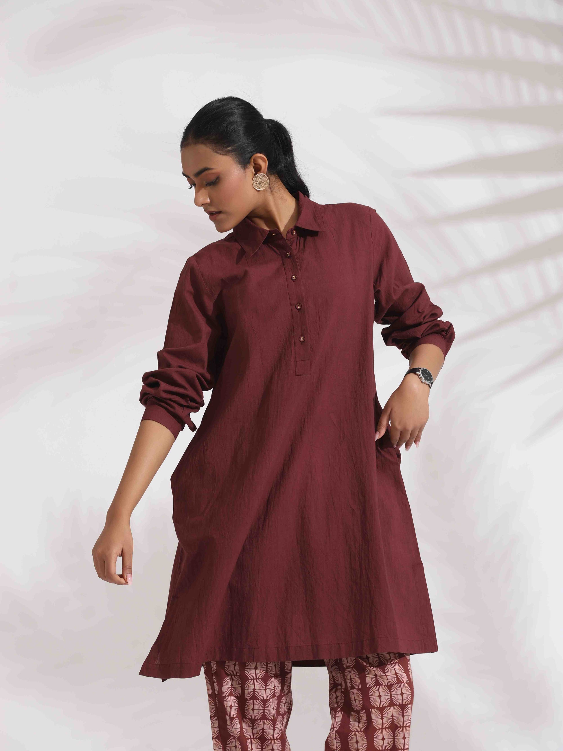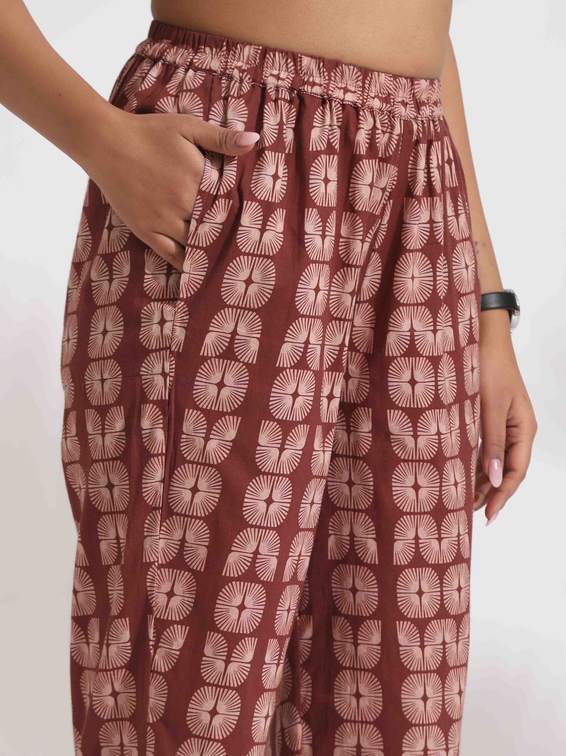 - Elevate your style and Indulge in the perfect blend of understated elegance and effortless comfort with this stunning brown cotton solid kurta co-ord, paired with beautifully printed brown cotton pants. Designed for the modern woman, this ensemble exudes sophistication, making it the perfect choice for both casual and semi-formal occasions.