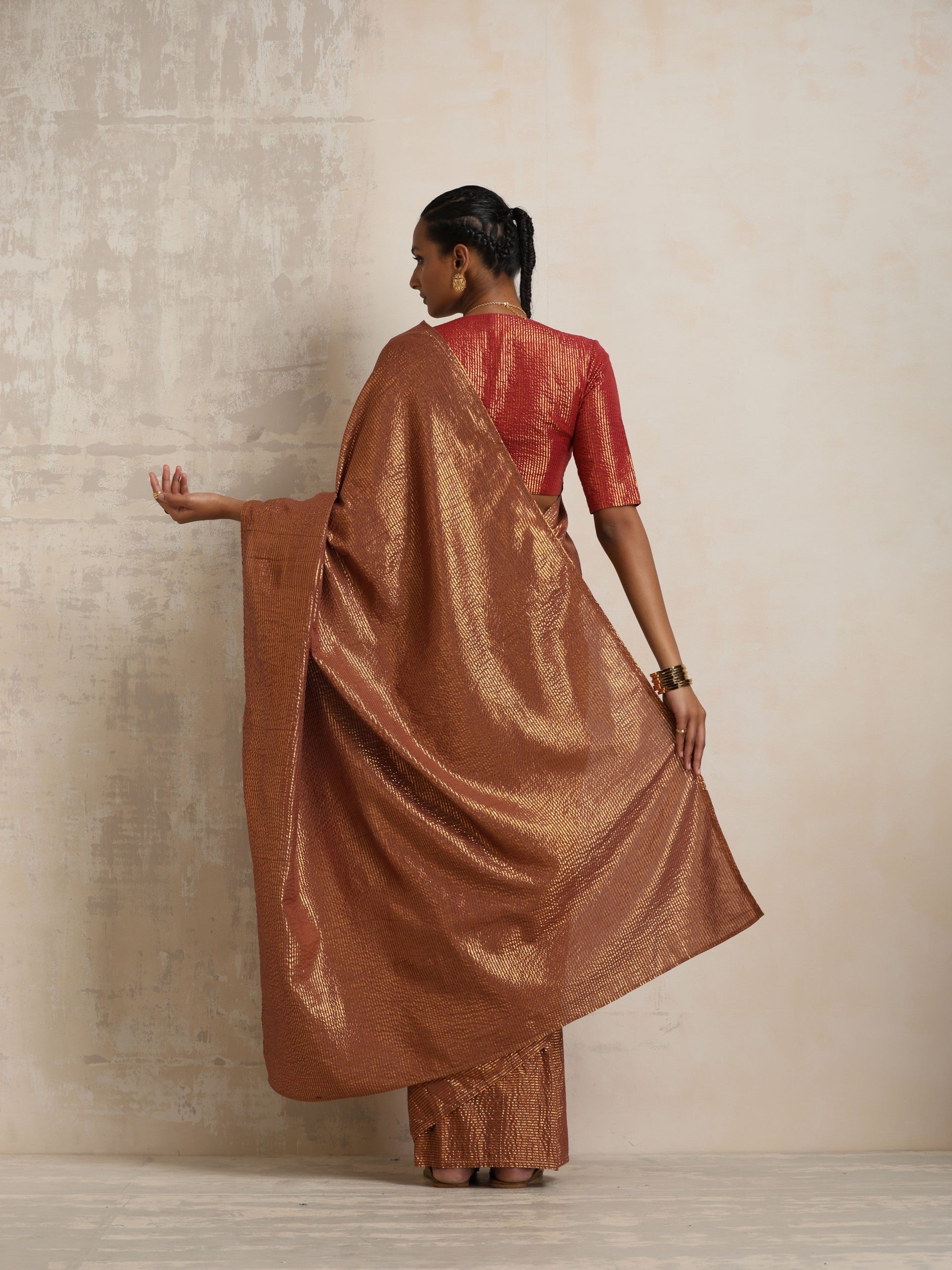 trueBrowns Brown Gold Lurex Ready To Wear Saree