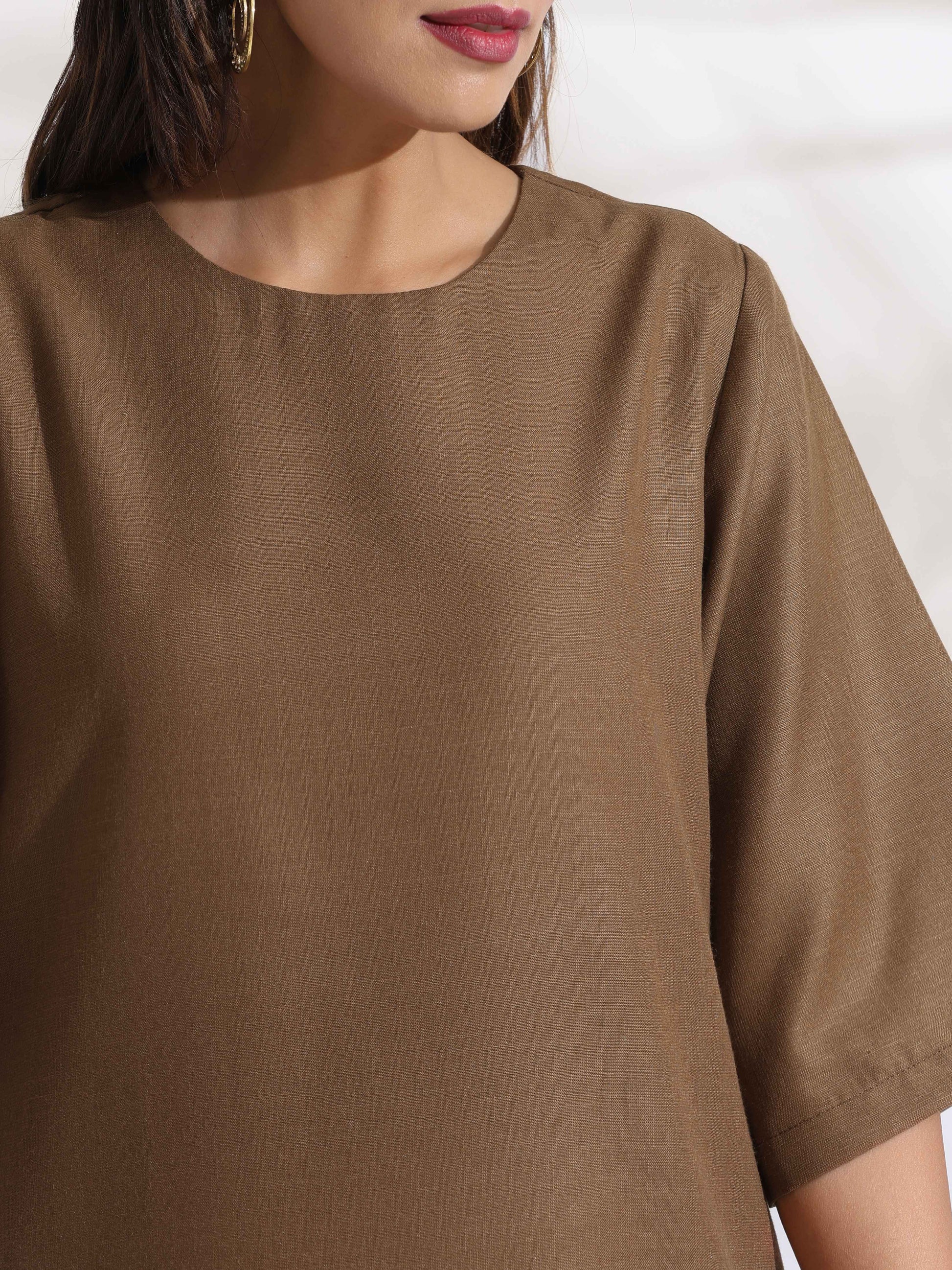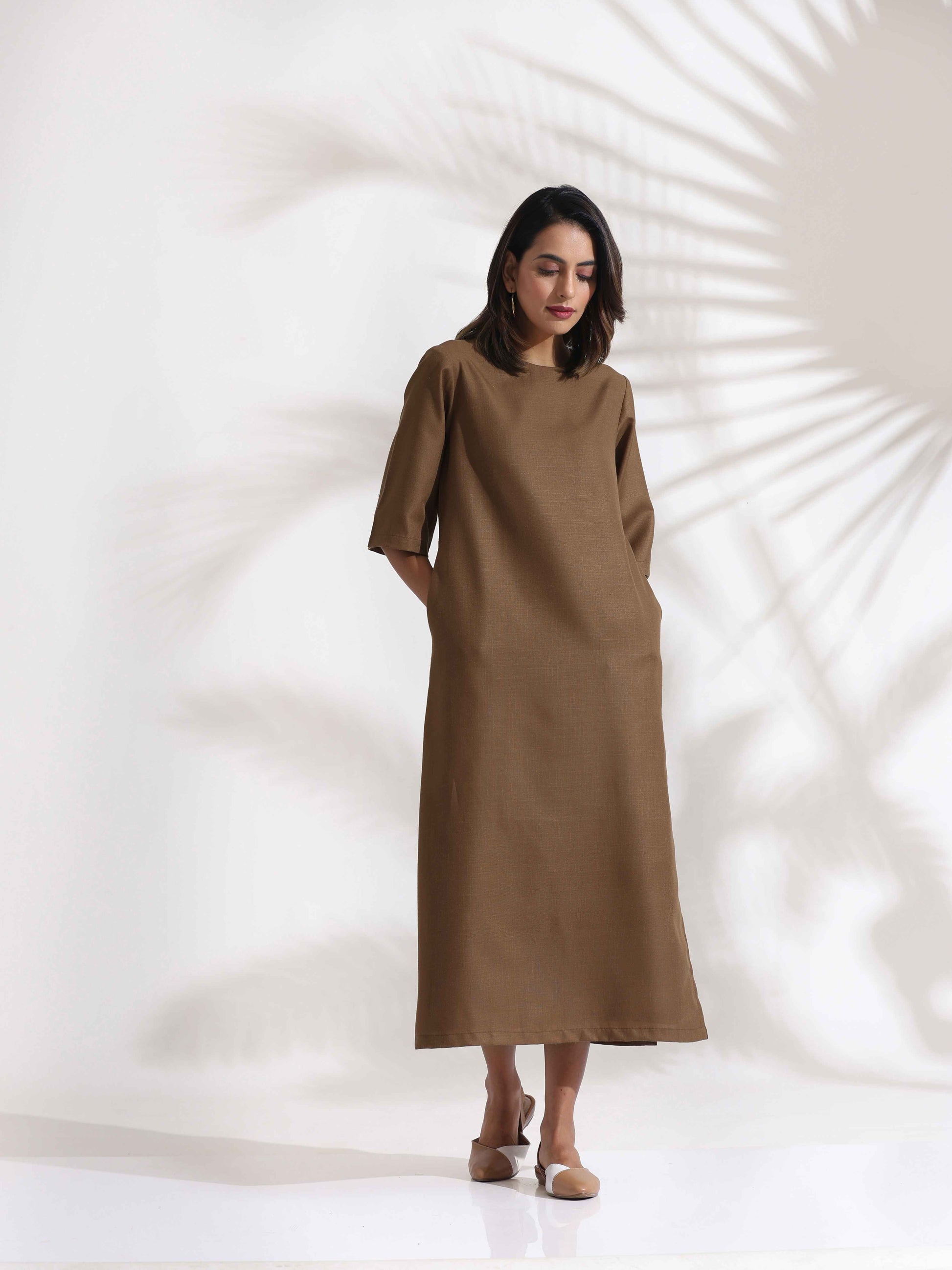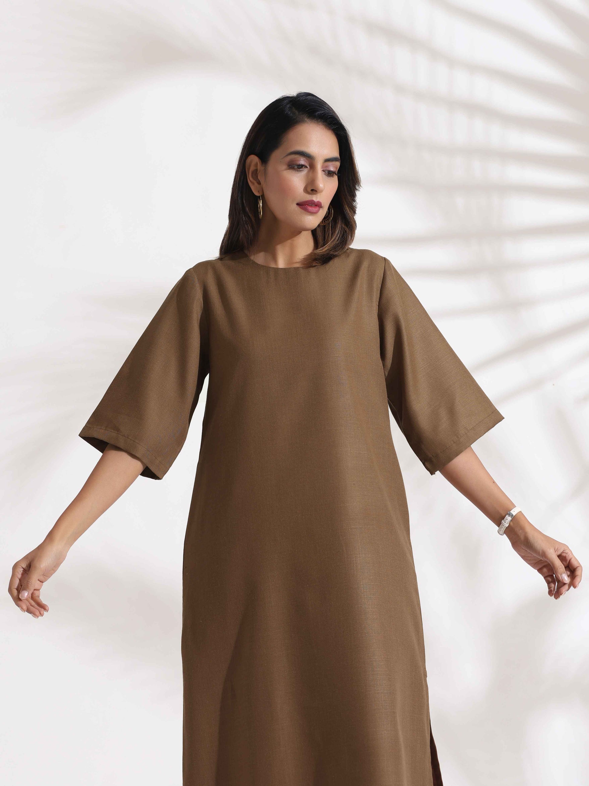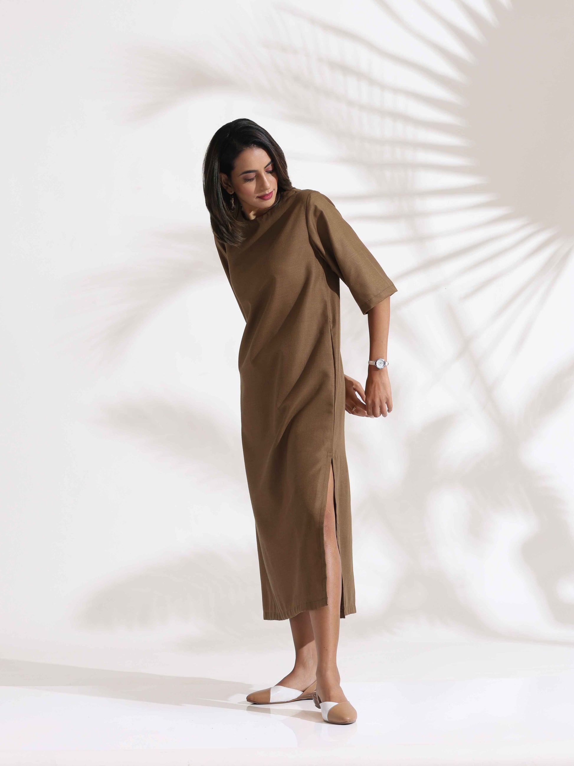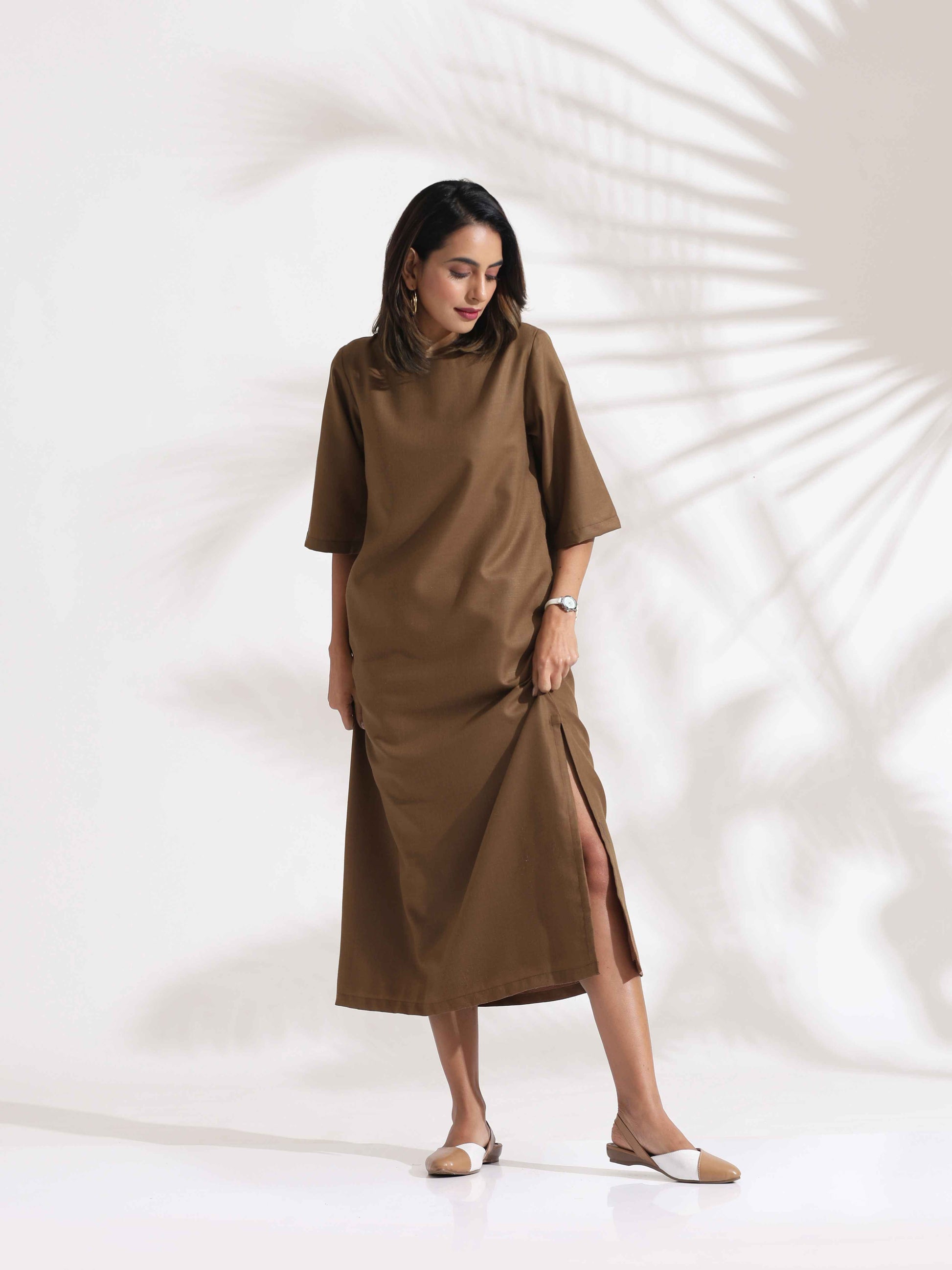 trueBrowns Brown Slub Dress