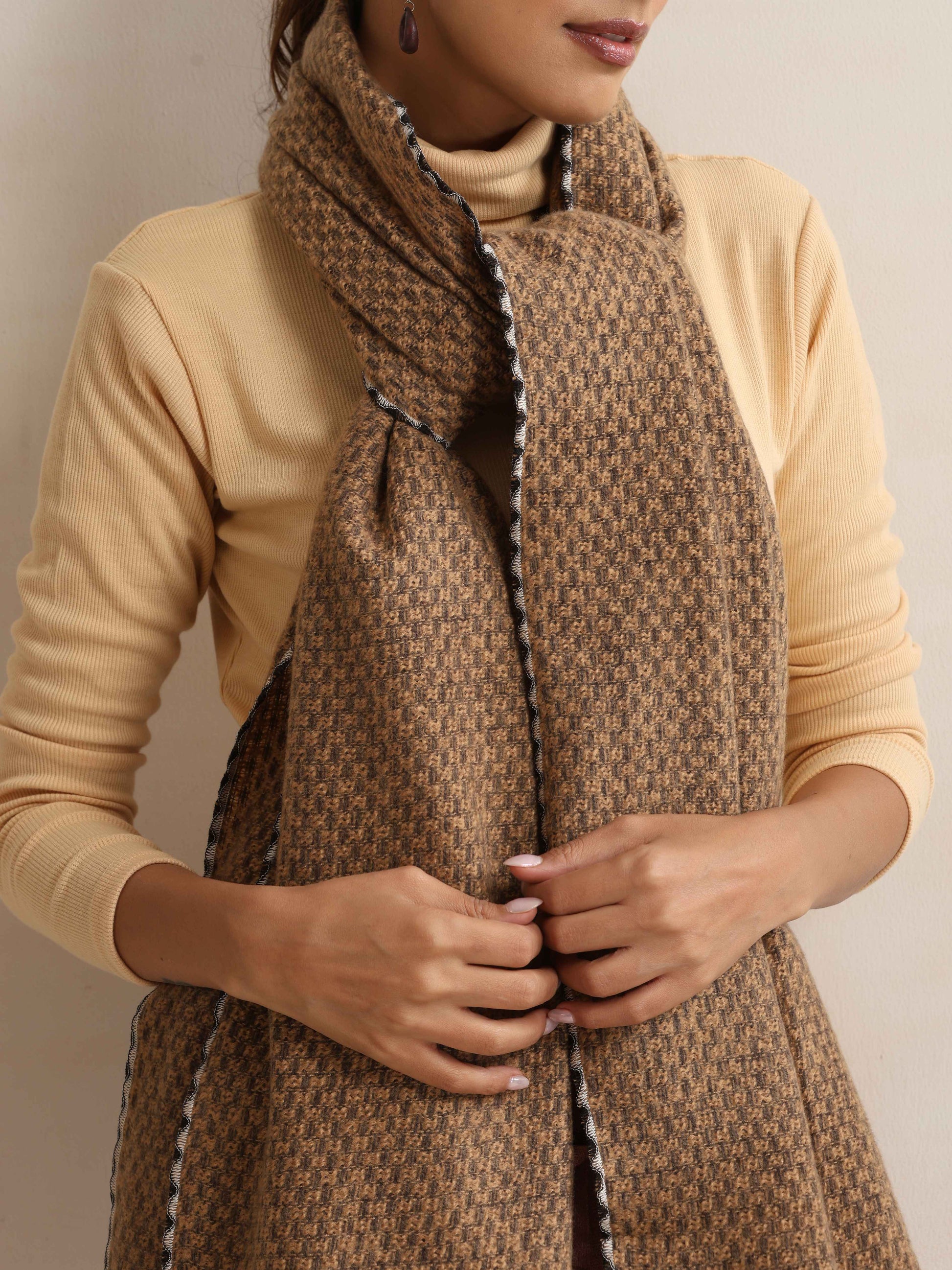 - Elevate your style with this brown check stole, it's an ideal blend of elegance and comfort.