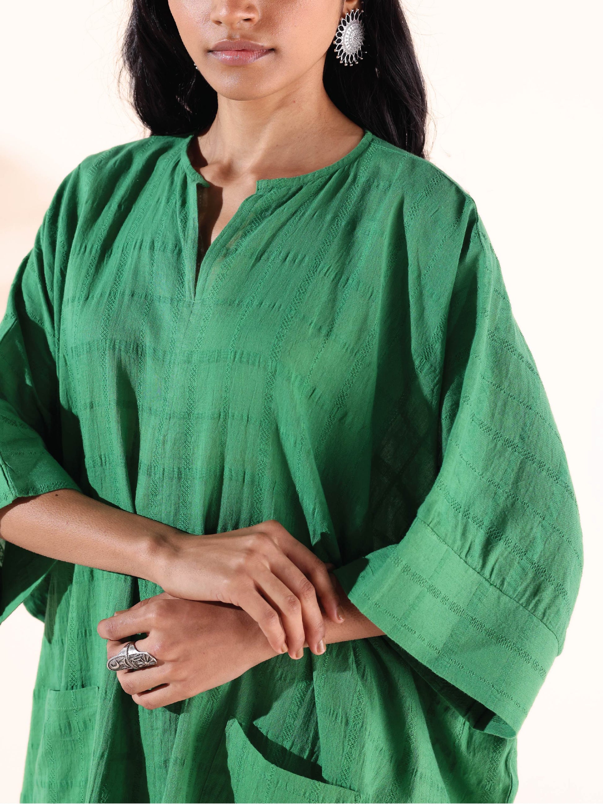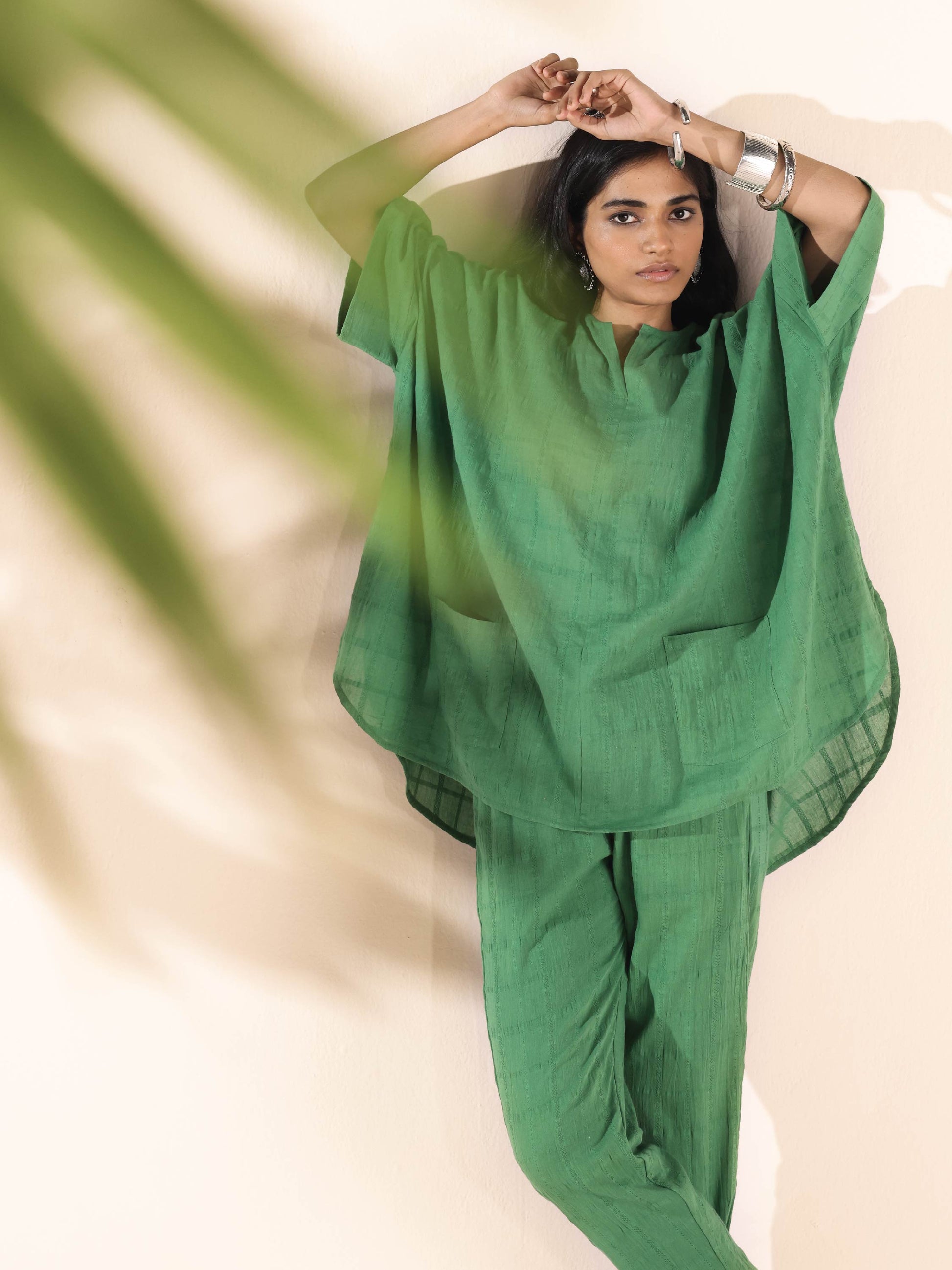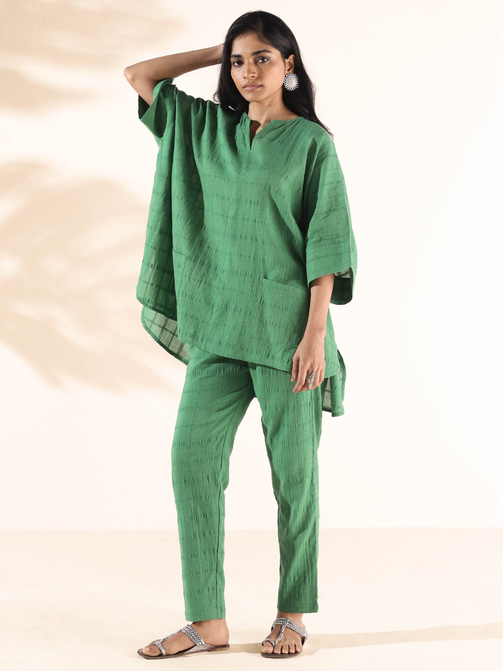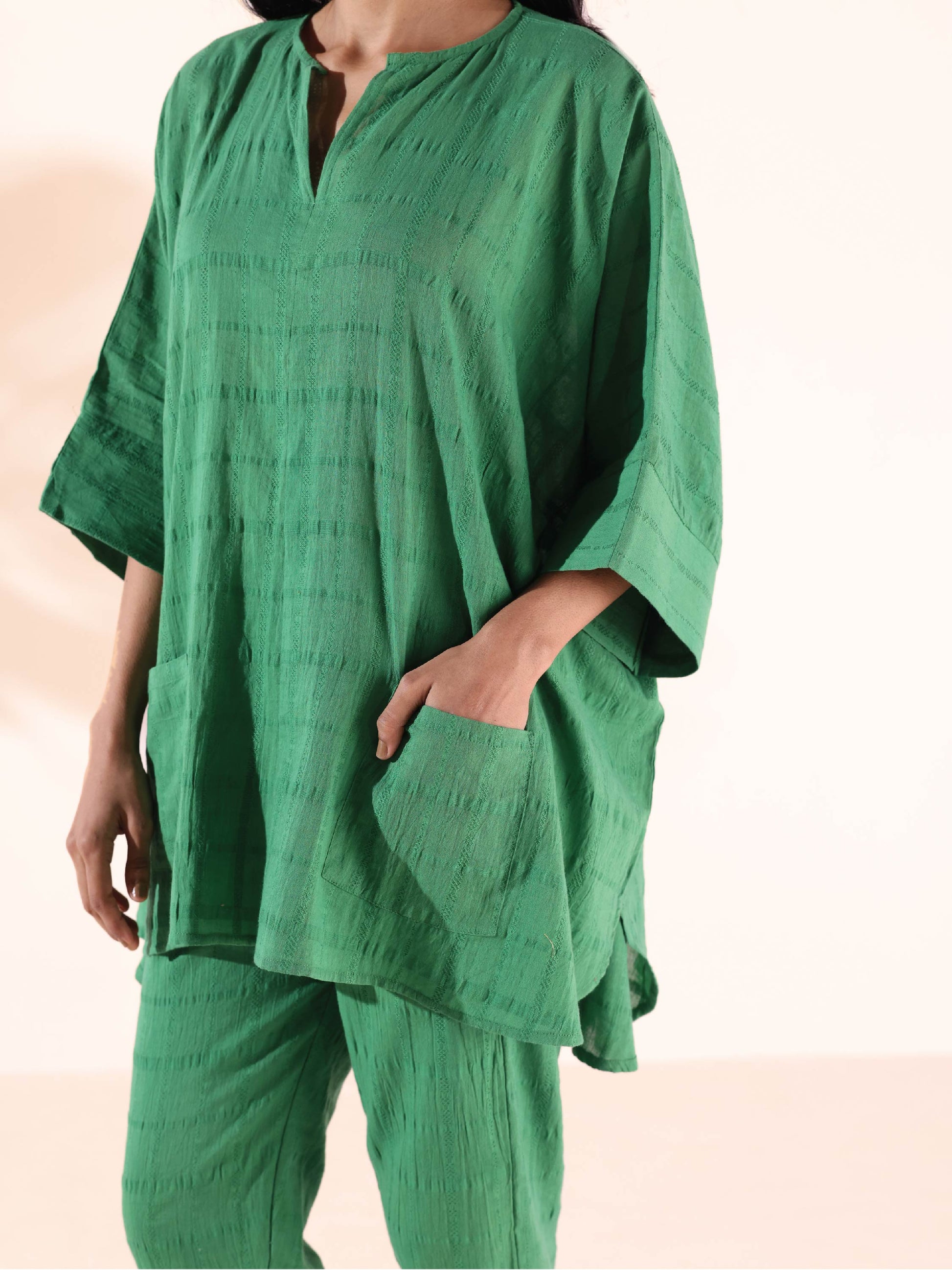 trueBrowns Green Cotton Dobby Oversized Co-ord Set