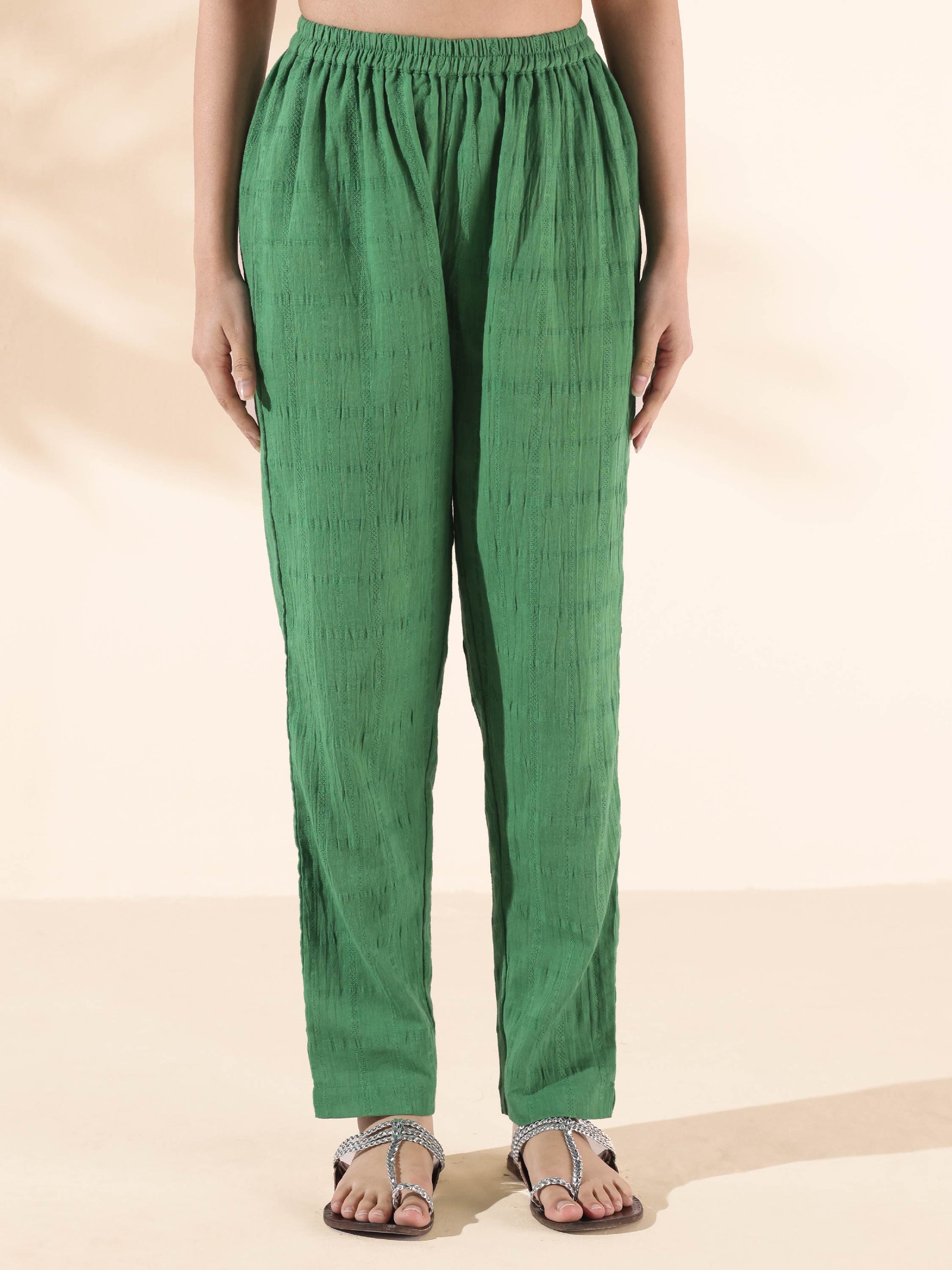 - Cotton Dobby Co-ord Set with Round neck slit and front pockets in relaxed fit. Paired with elasticated waist pant.
