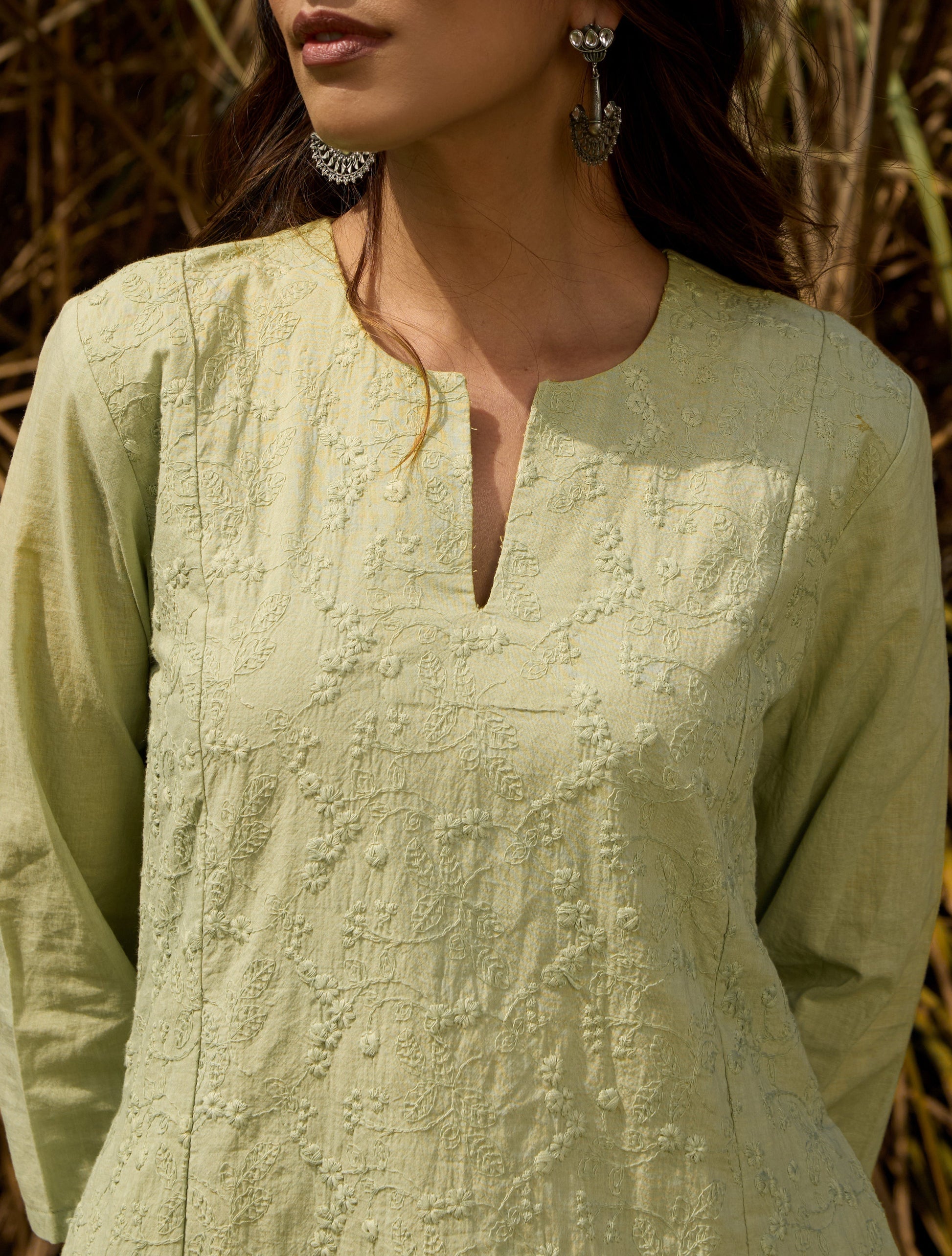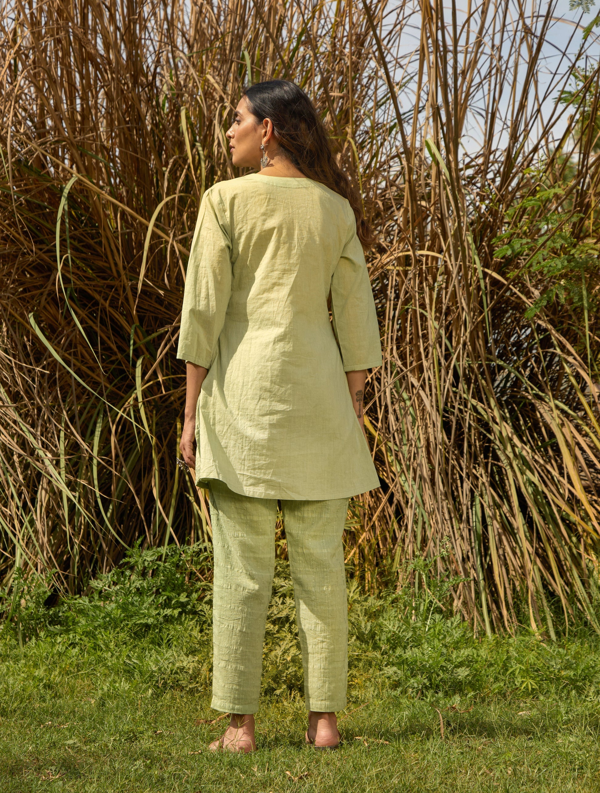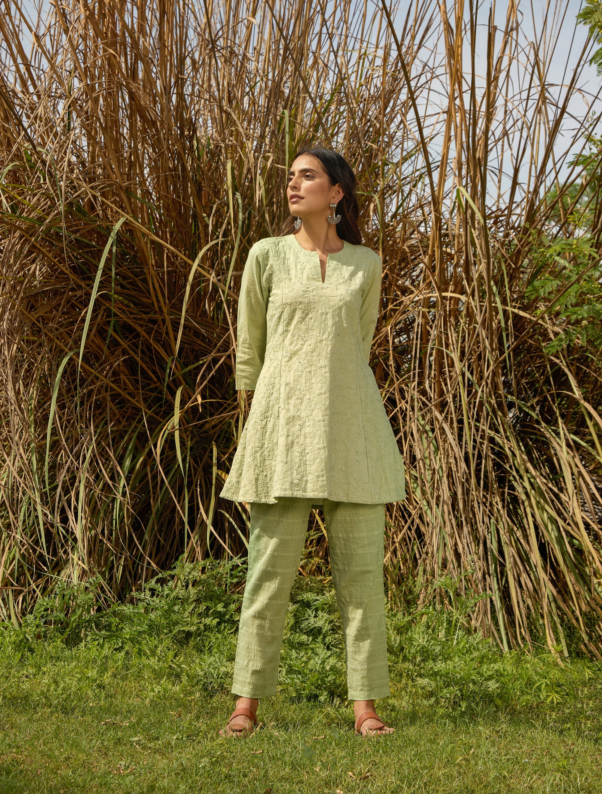 trueBrowns Green Cotton Embroidered Co-ord Set