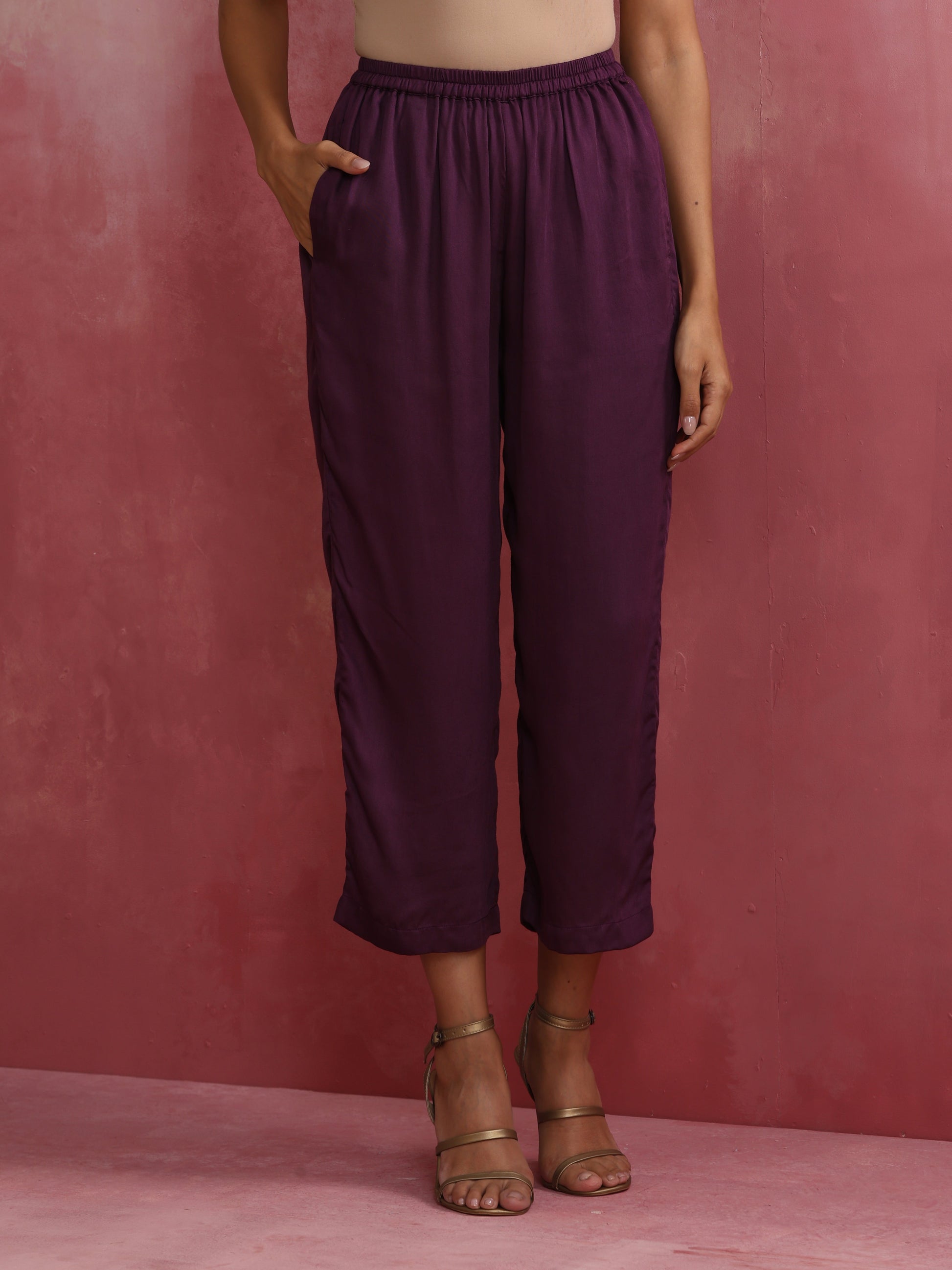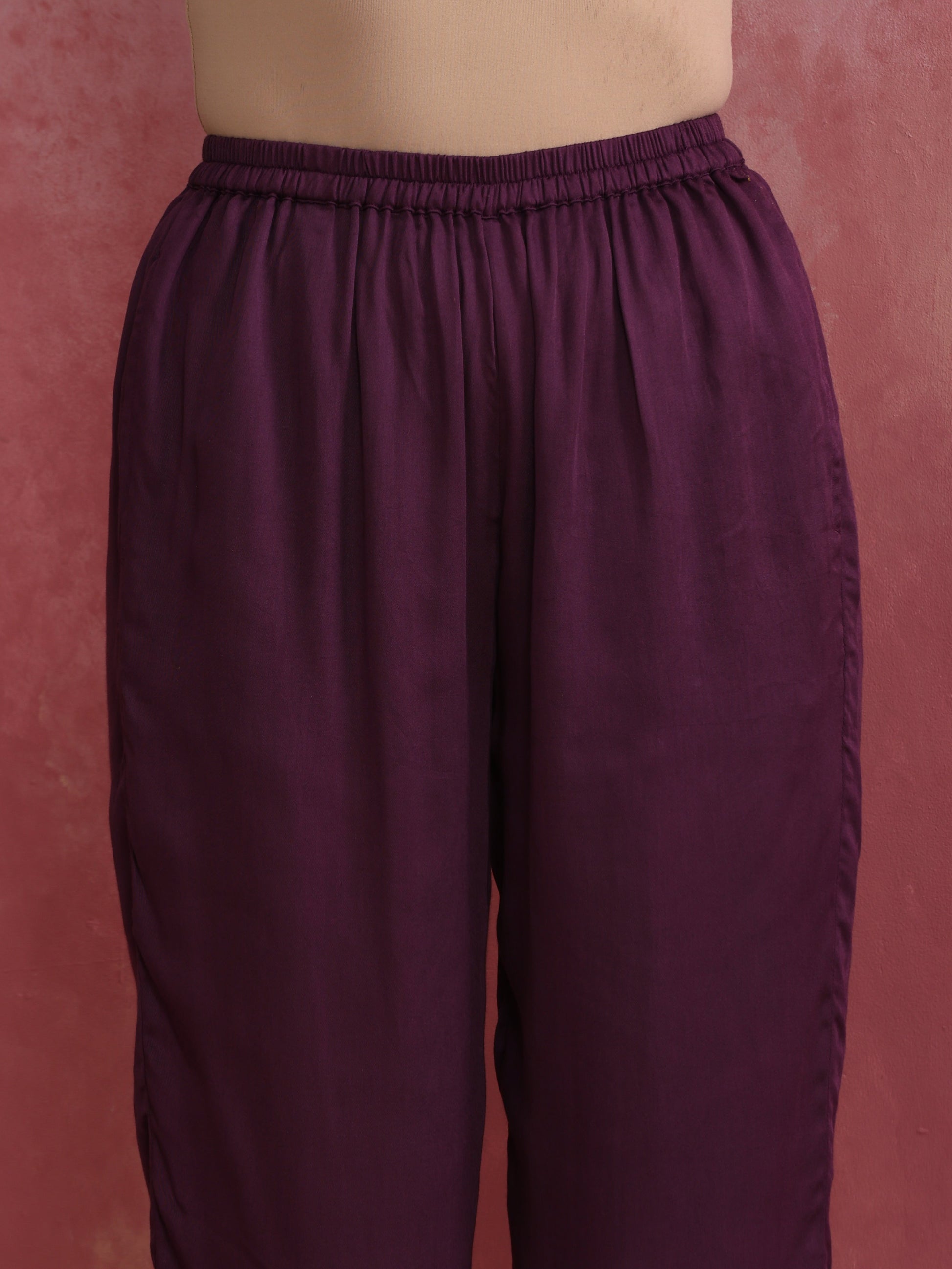 - Paired perfectly with modal purple elasticated waist pants.