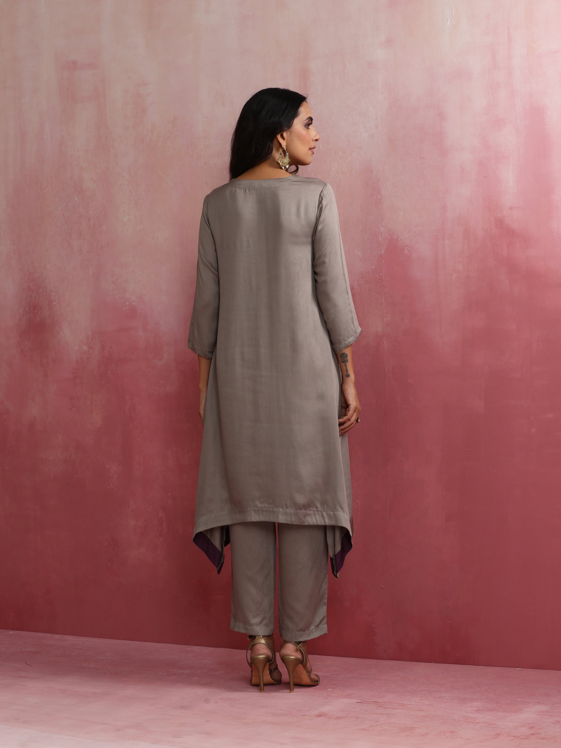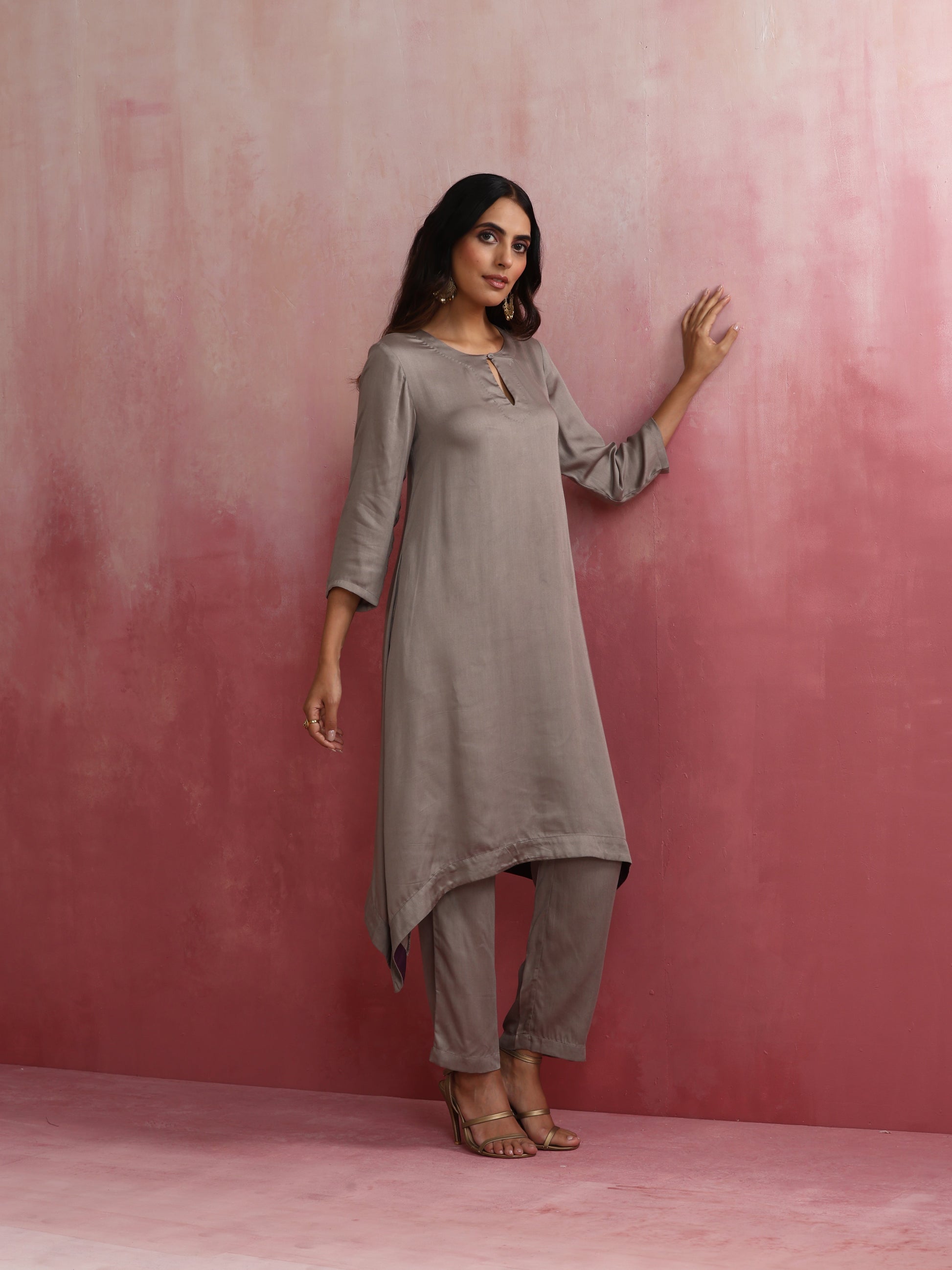 trueBrowns Grey High low Kurta Set
